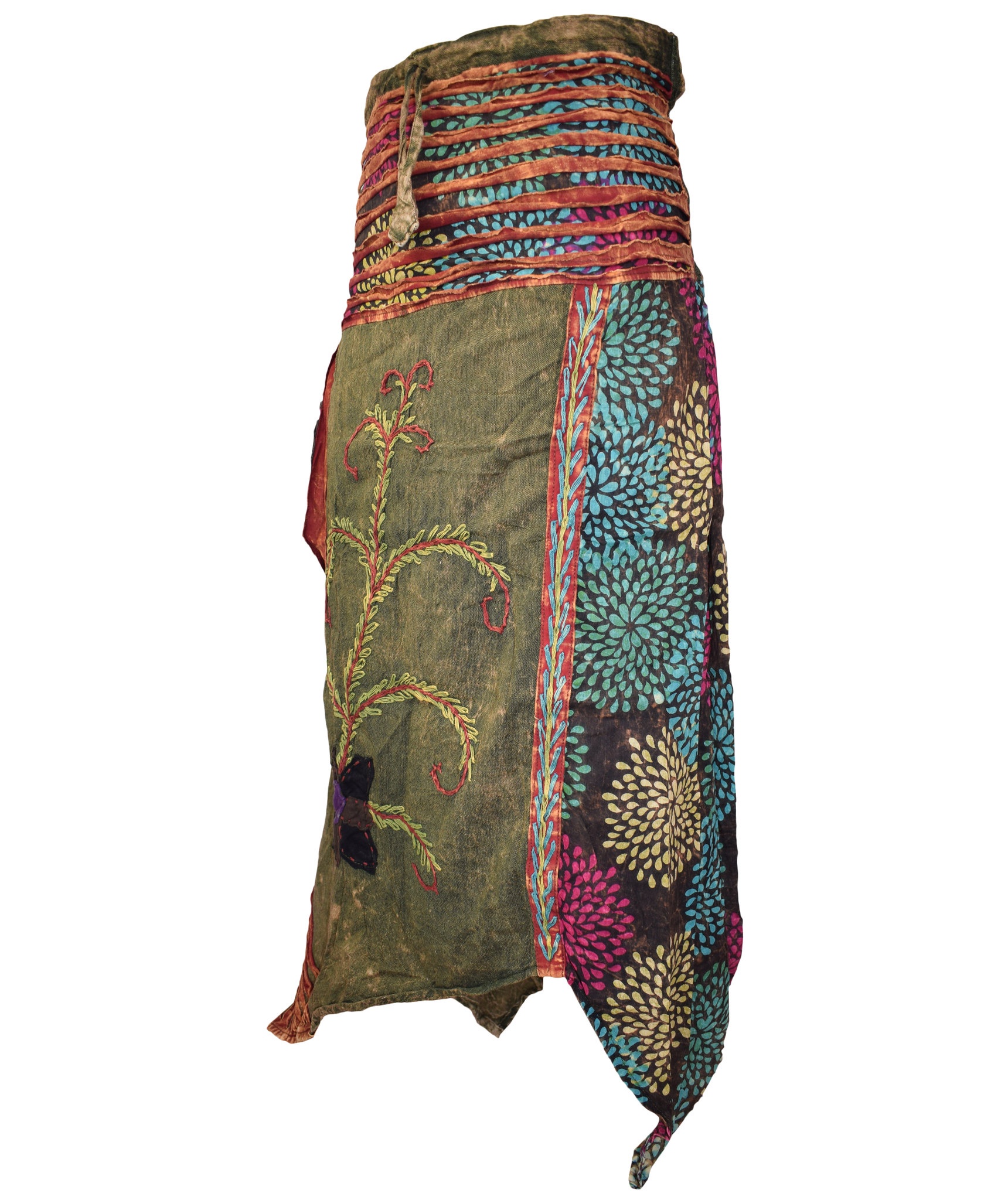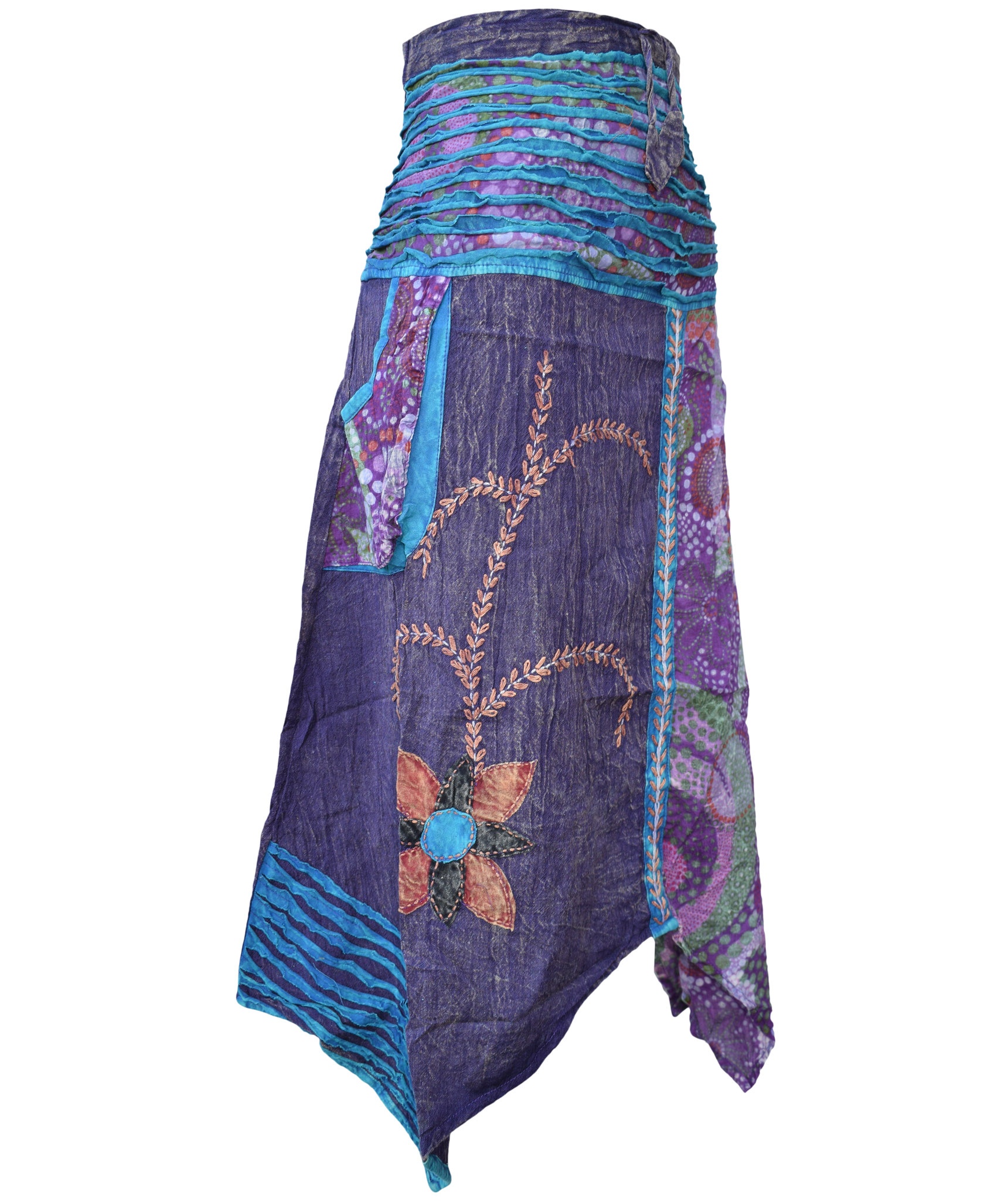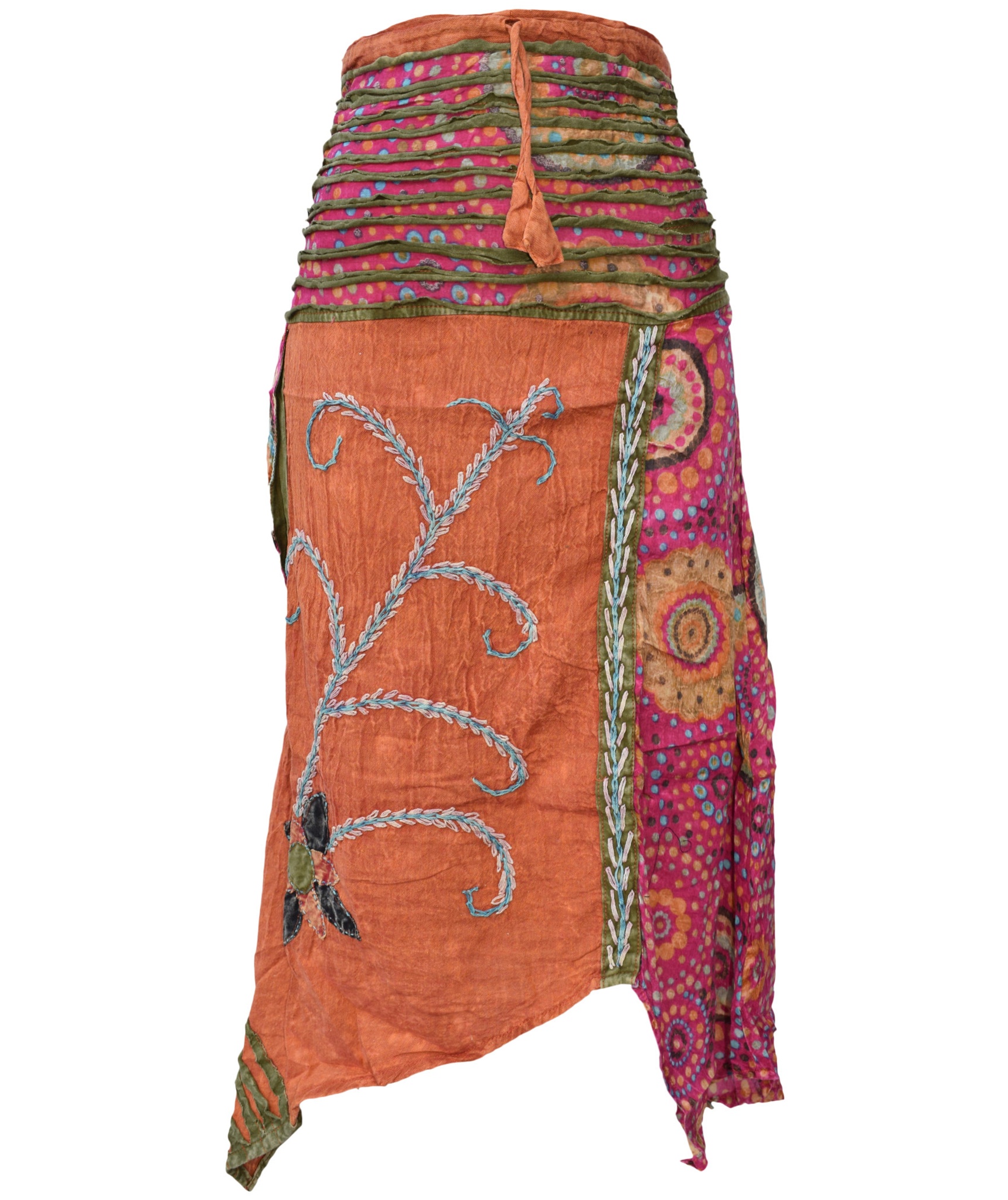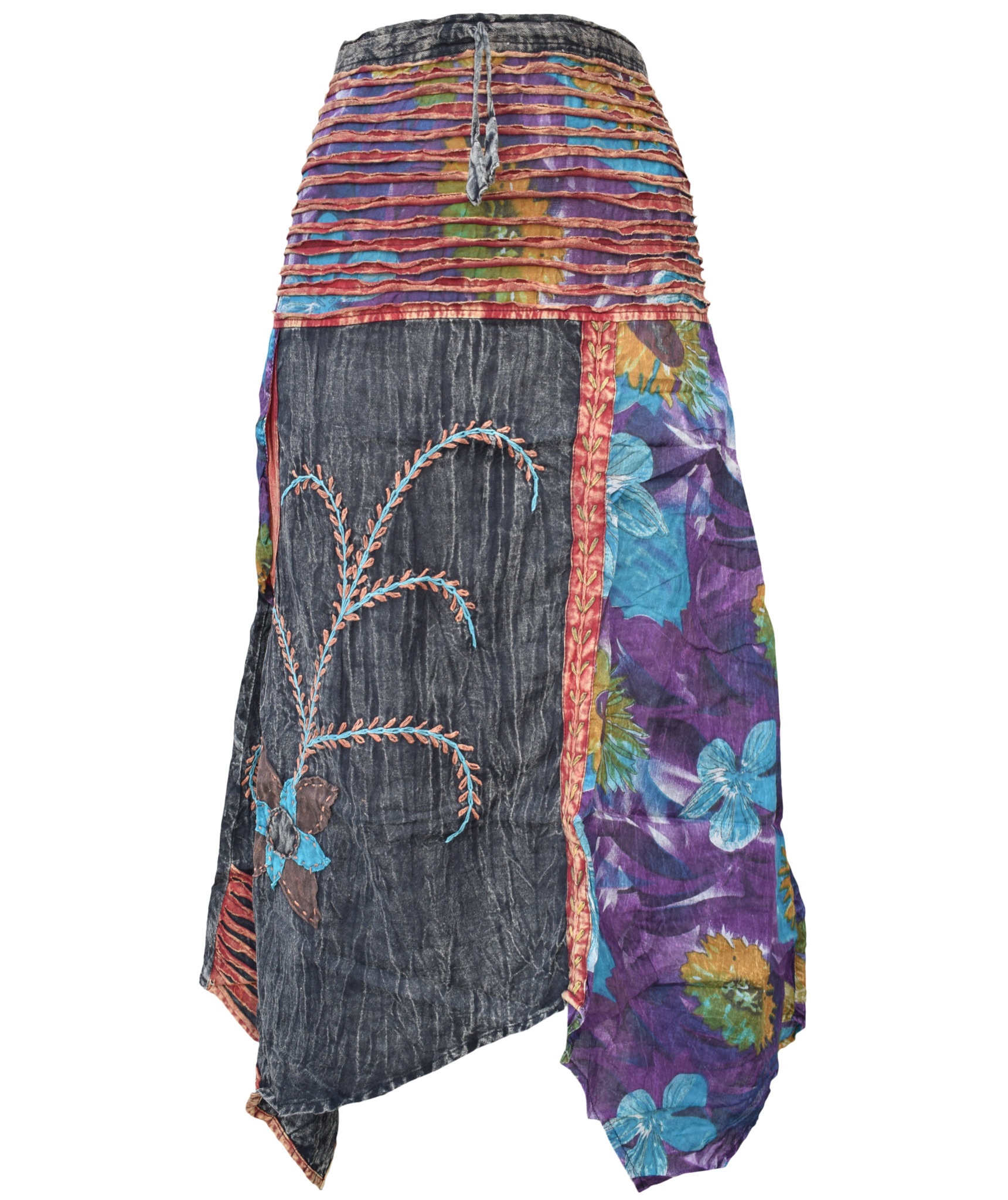 Lightweight summery cotton skirts are very comfortable to wear. They come in nine different colors providing you with multiple choice. They have got half elasticated waist with drawstring that fits to your body very well. The waist is layered with two layers of material and these layers add beauty to the skirts. There are plain and printed fabric used. There is a flower embroidery on the plain fabric that makes the skirt look real cool. Special attention is provided to every detail so the resultant product speaks of absolute finery. So this summer go colorful and stylish with these long skirts.