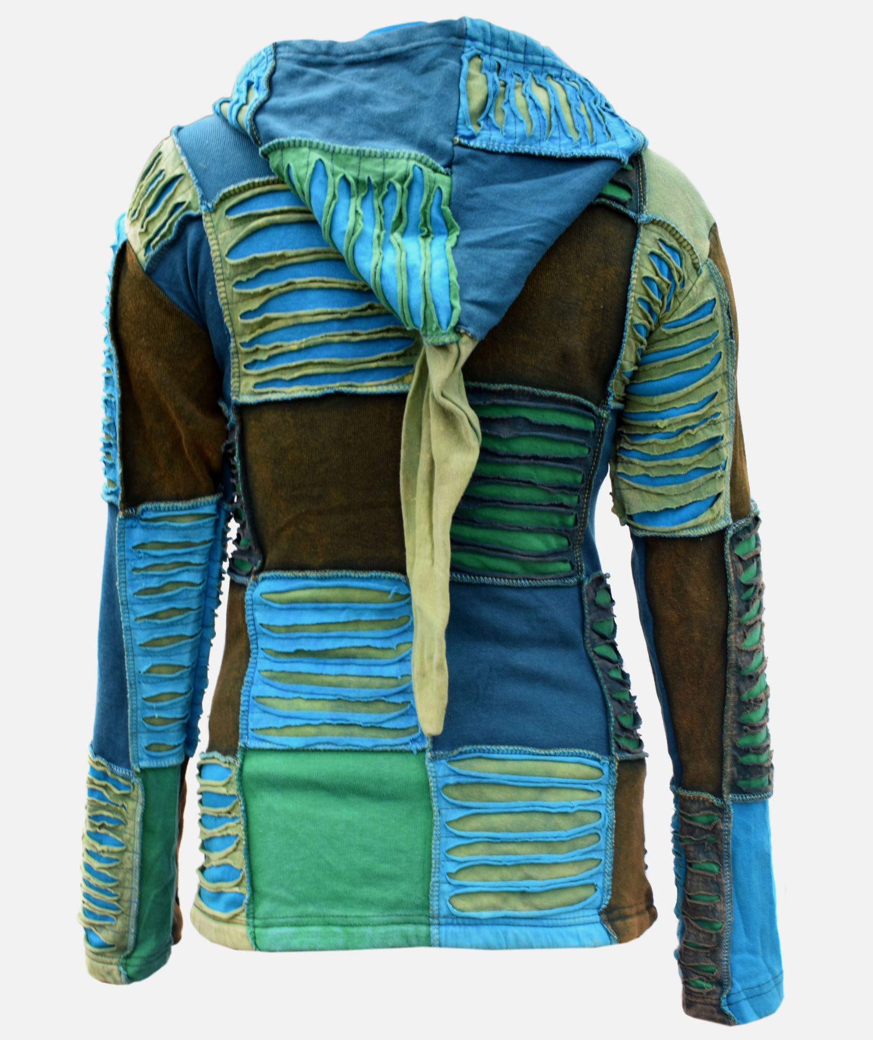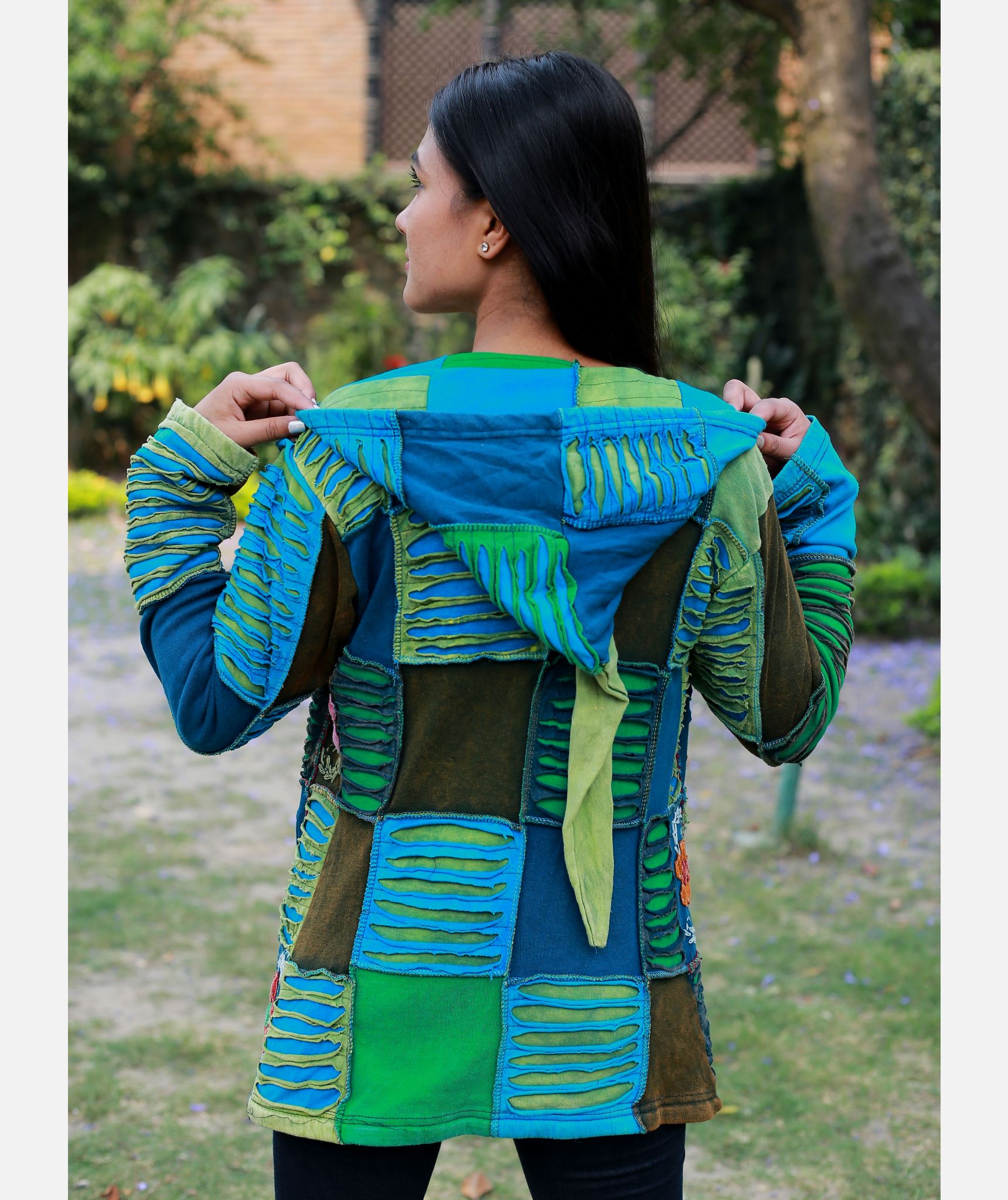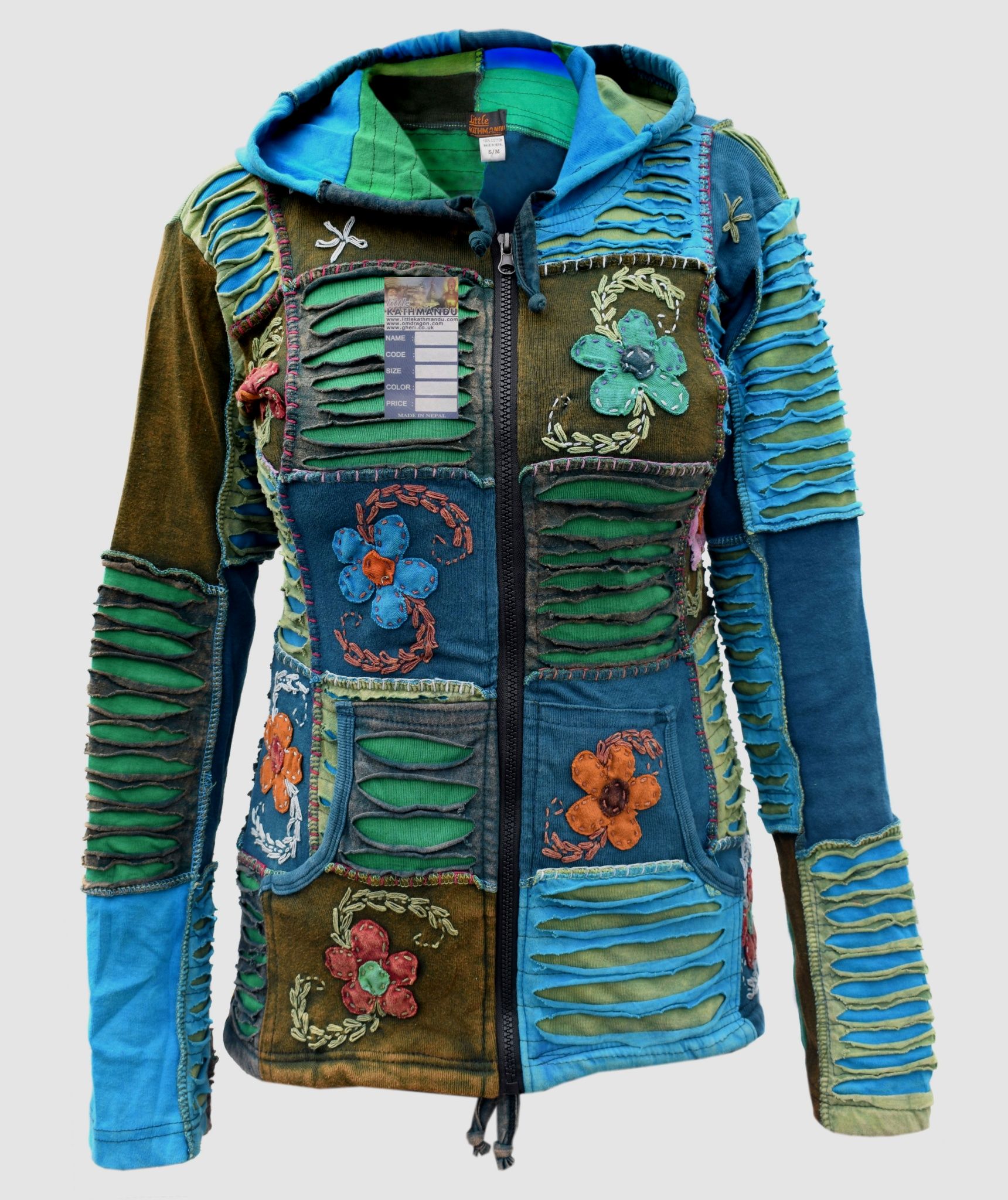 Full length front zip fastening. Two deep front pockets. Drawstring is provided to the hem and hoodie for size adjustment. They have long elf pointed hood. They are hand made and every details are provided with special care.