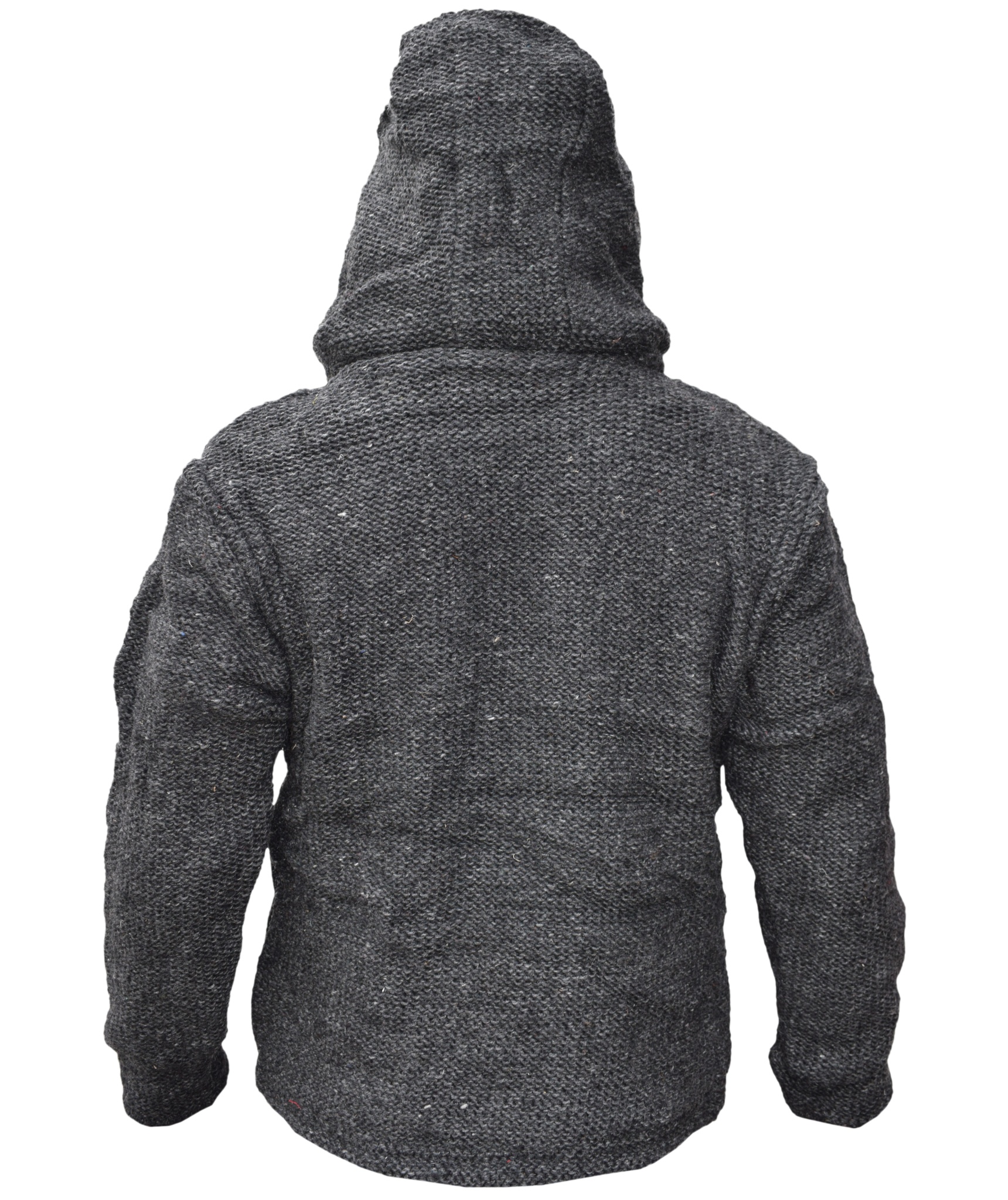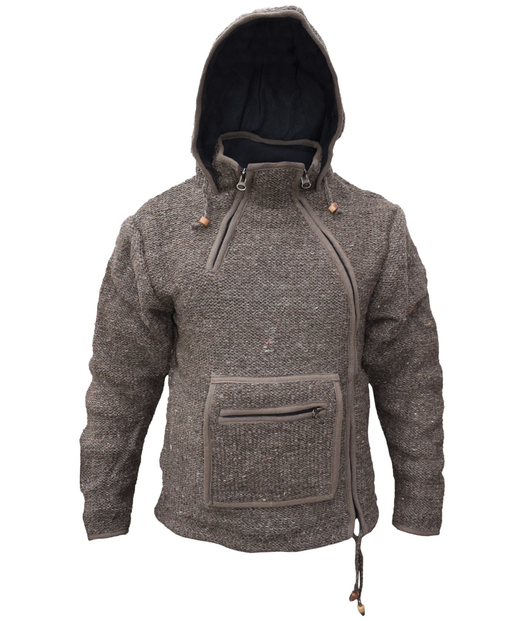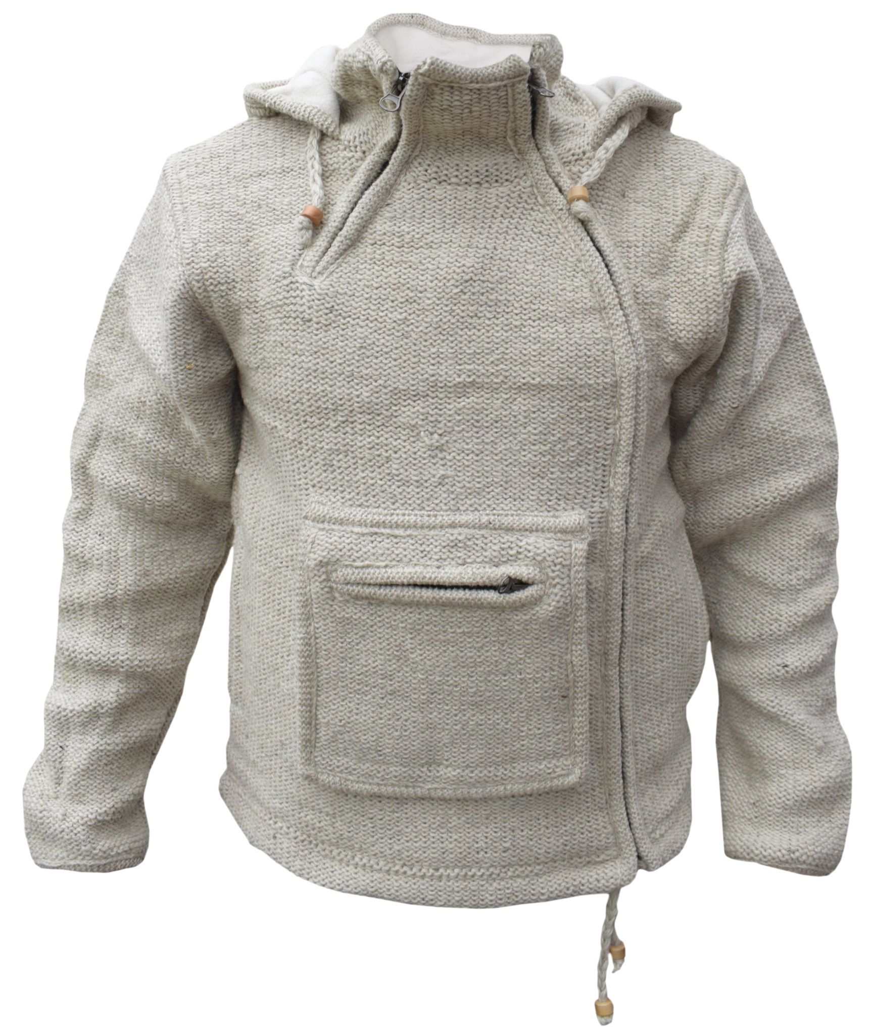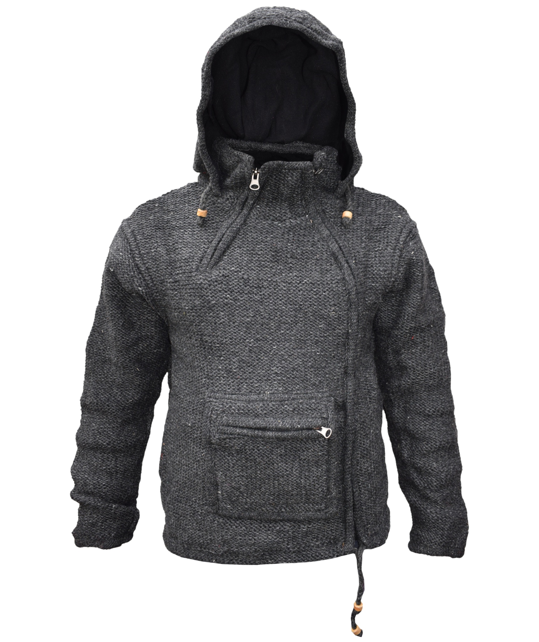 These woolen jackets can be your best solution for this winter. They have top quality wool and fleece lined that keep you real warm and is very comfy to wear. They have got full length side zip on one side and half on the other that makes it stylish. Kangaroo pouch at front. Drawstring on the hem and hoodie with wooden beads. They are hand knitted and every details are provided with special care.