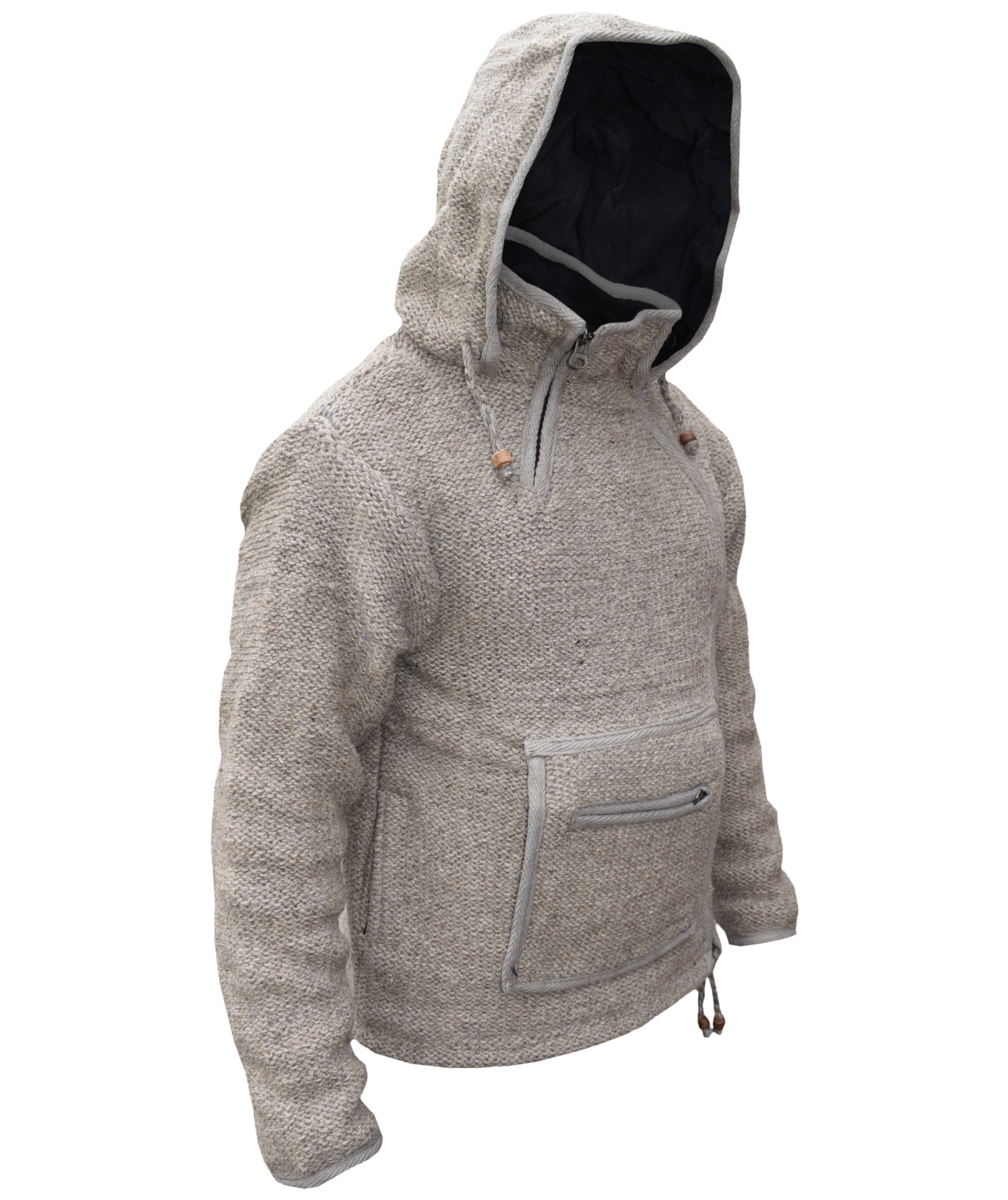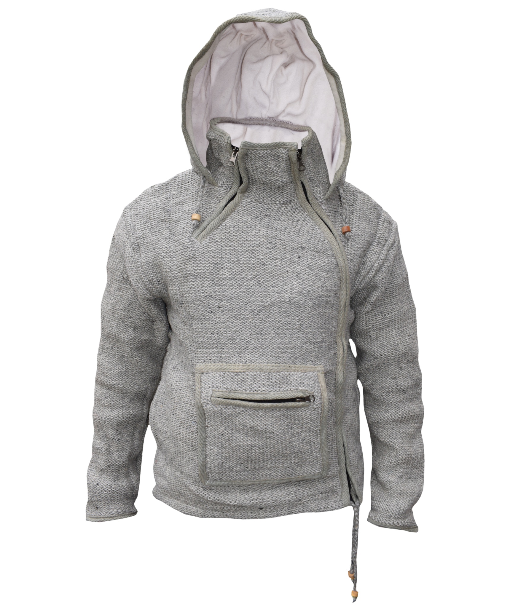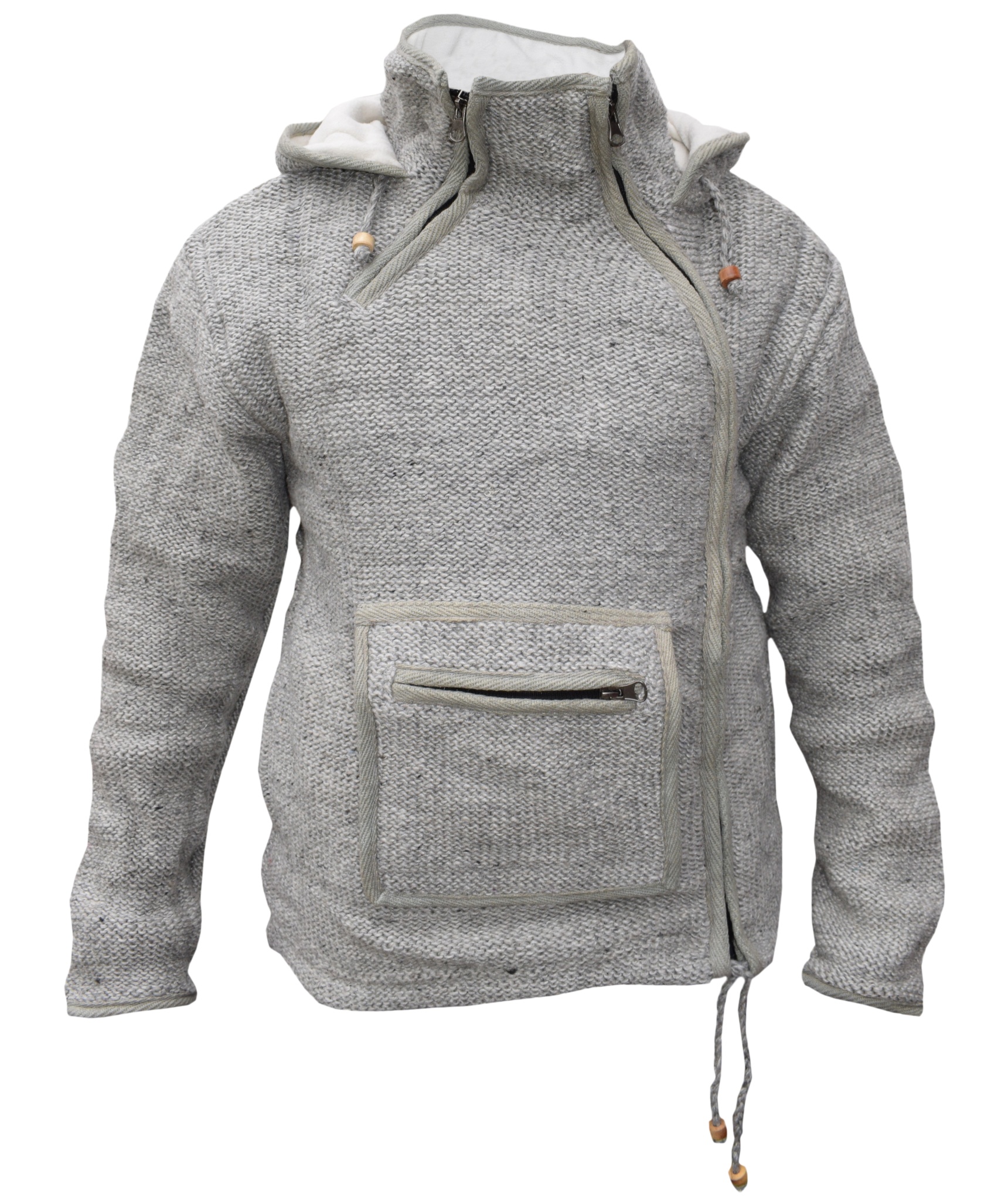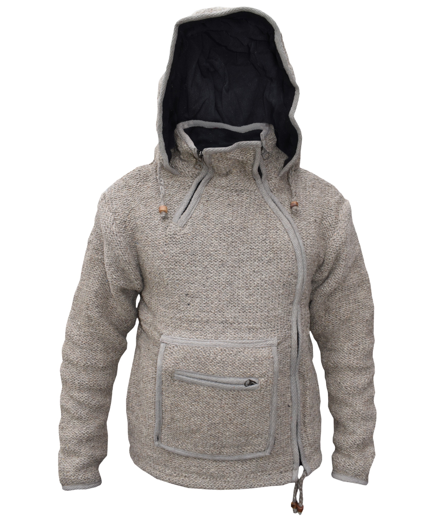 These woolen jackets can be your best solution for this winter. They have top quality wool and fleece lined that keep you real warm and is very comfy to wear. They have got full length side zip on one side and half on the other that makes it stylish. Kangaroo pouch at front. Drawstring on the hem and hoodie with wooden beads. They are hand knitted and every details are provided with special care.