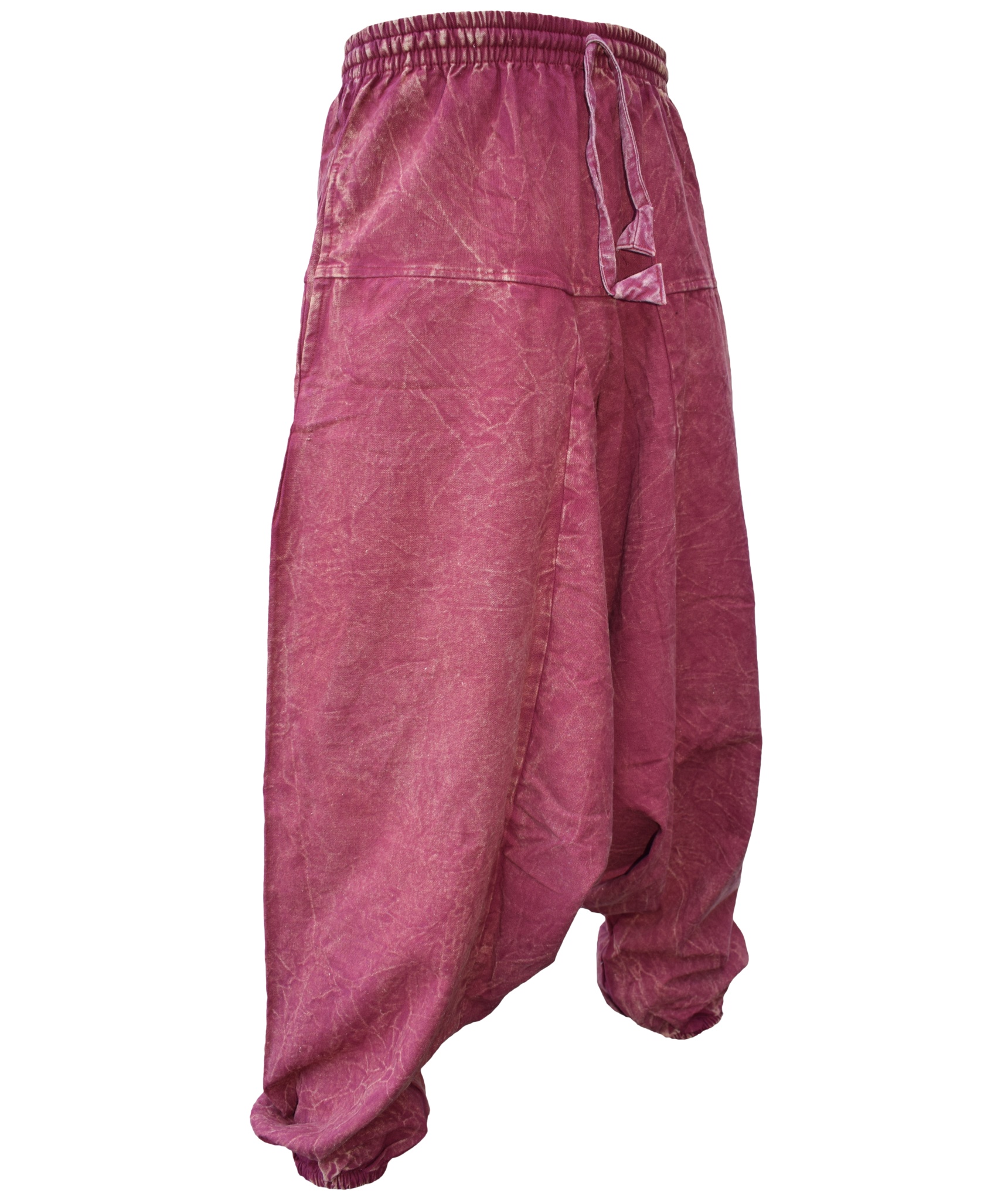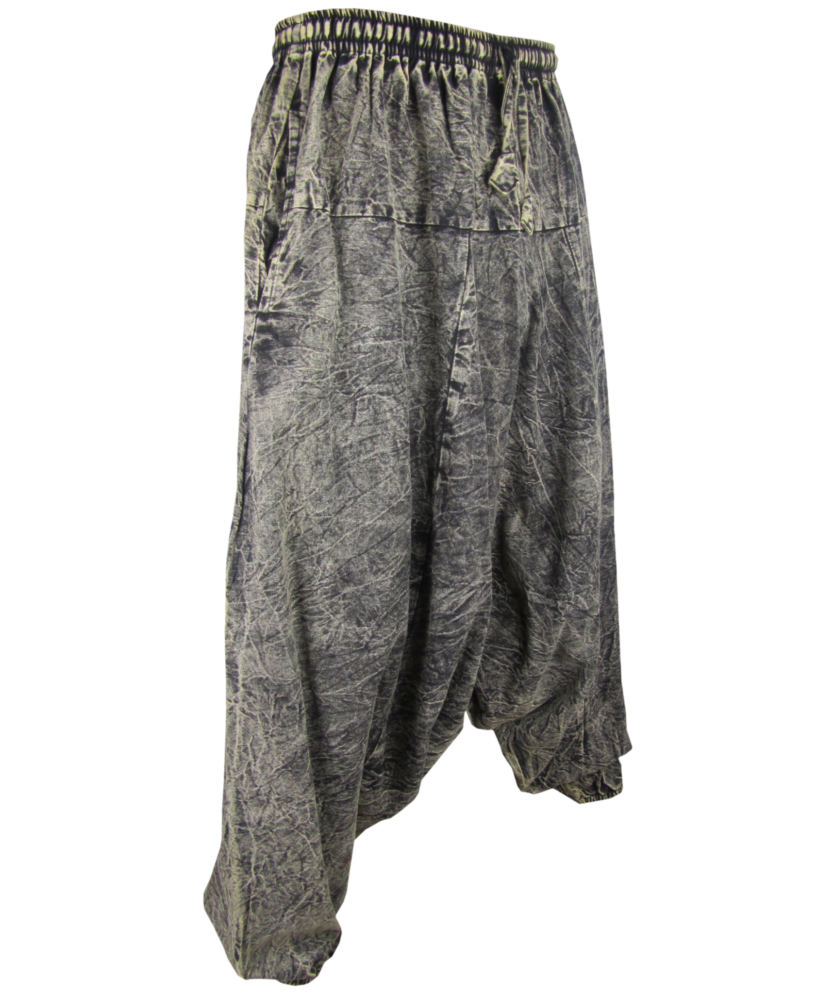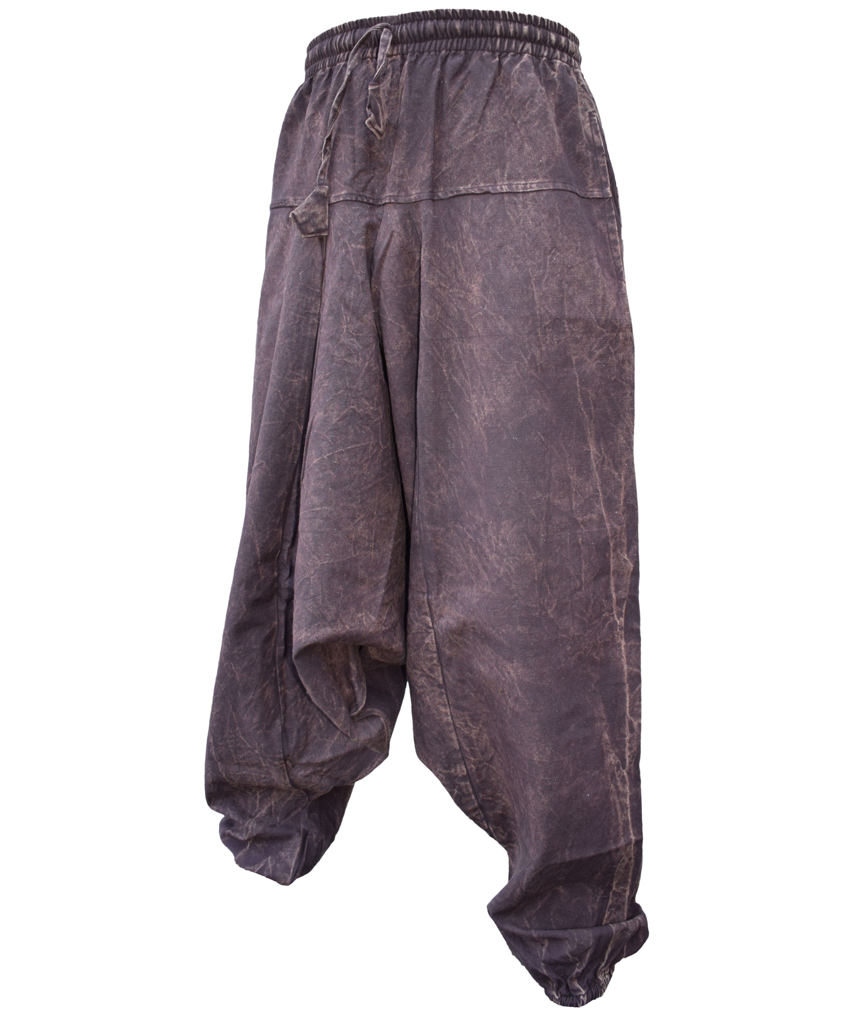 Although these trousers are categorized under men's clothing, they are equally popular among ladies as well. With only a single elastic waist unlike ladies which have 9-14 panel of elastic, these trousers are wide legged, low crotch and super comfy. The waist is elasticated so it fits people of different waist measurement. These trousers are made of 55% hemp and 45% cotton.