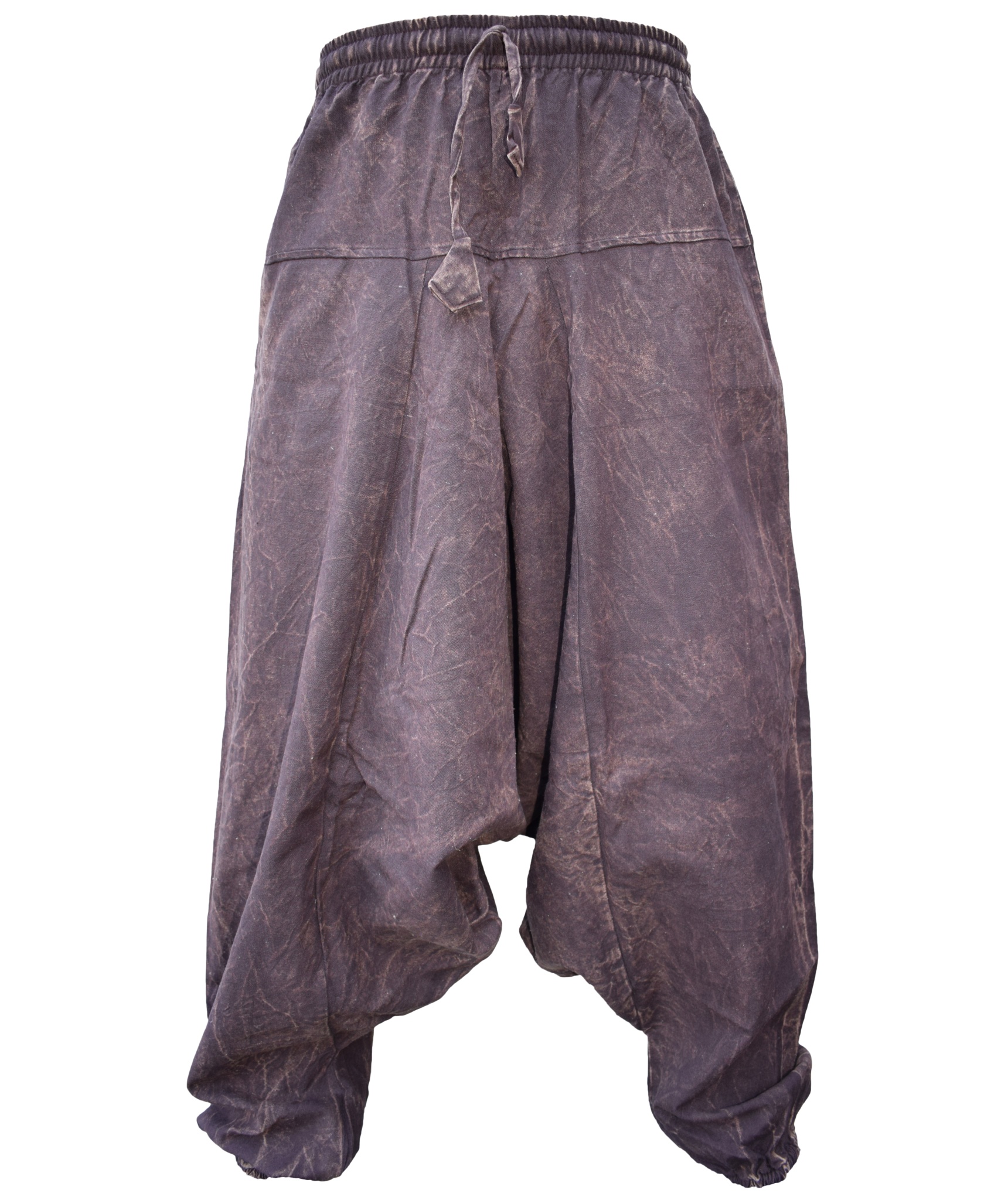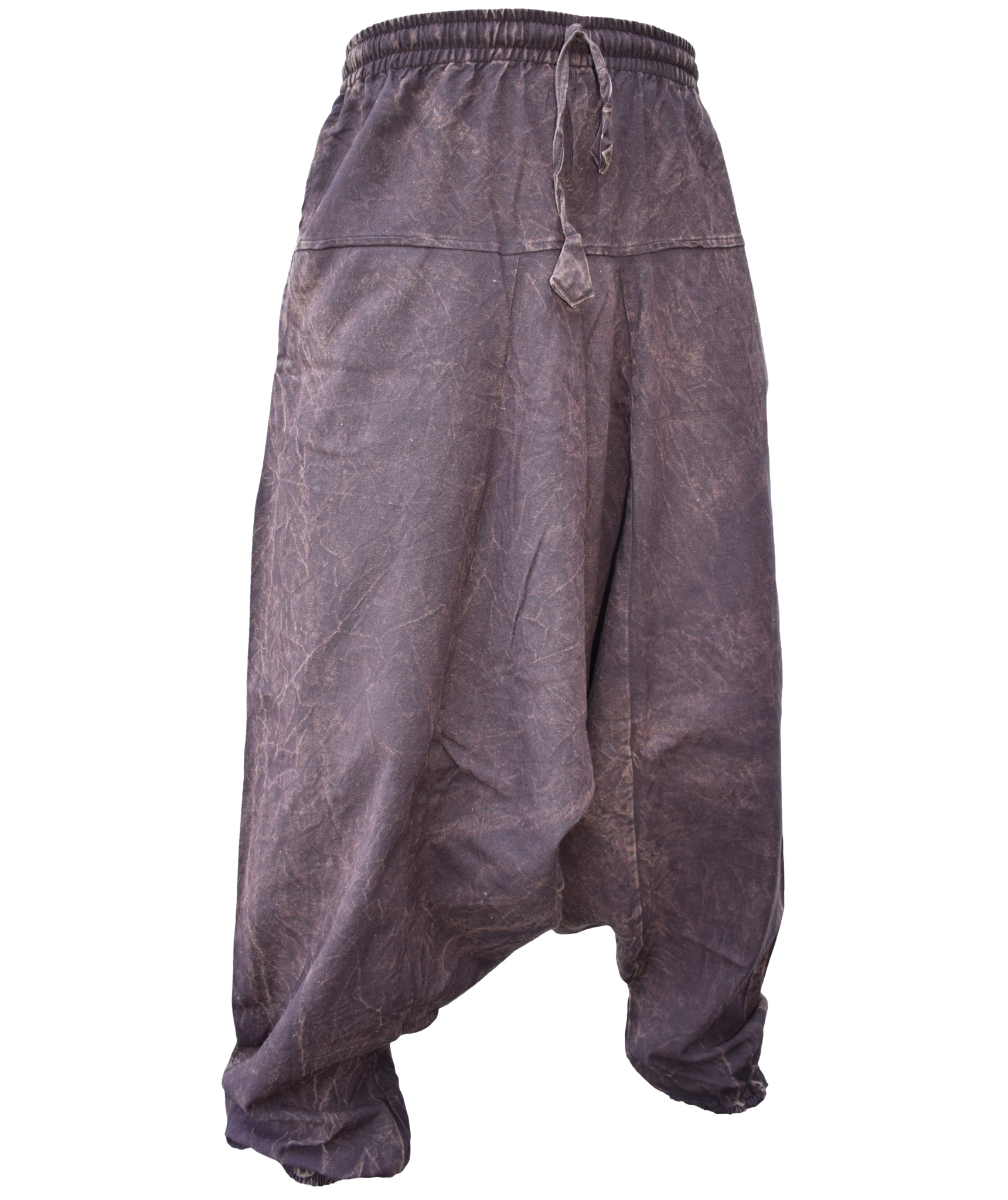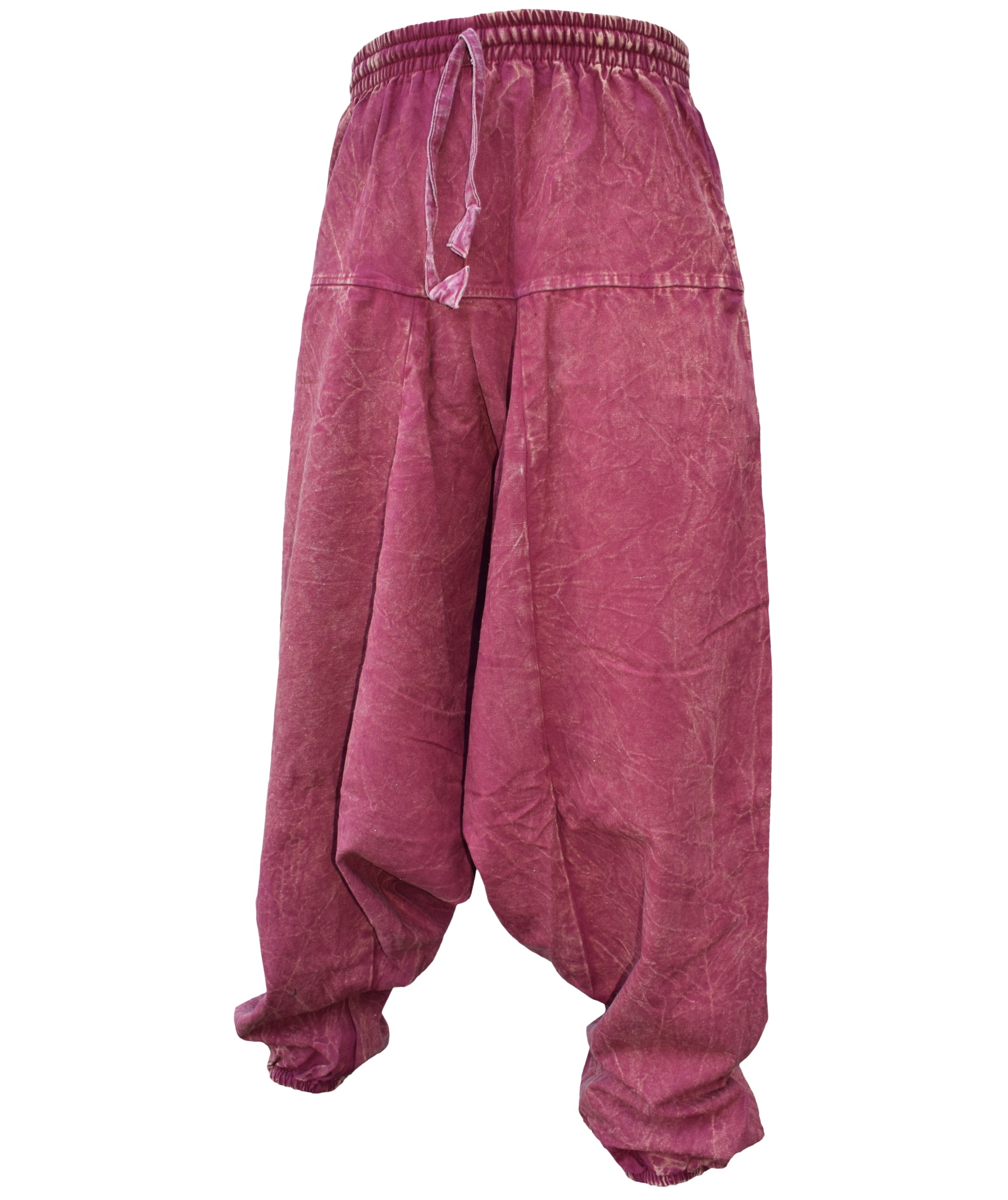 Although these trousers are categorized under men's clothing, they are equally popular among ladies as well. With only a single elastic waist unlike ladies which have 9-14 panel of elastic, these trousers are wide legged, low crotch and super comfy. The waist is elasticated so it fits people of different waist measurement. These trousers are made of 55% hemp and 45% cotton.