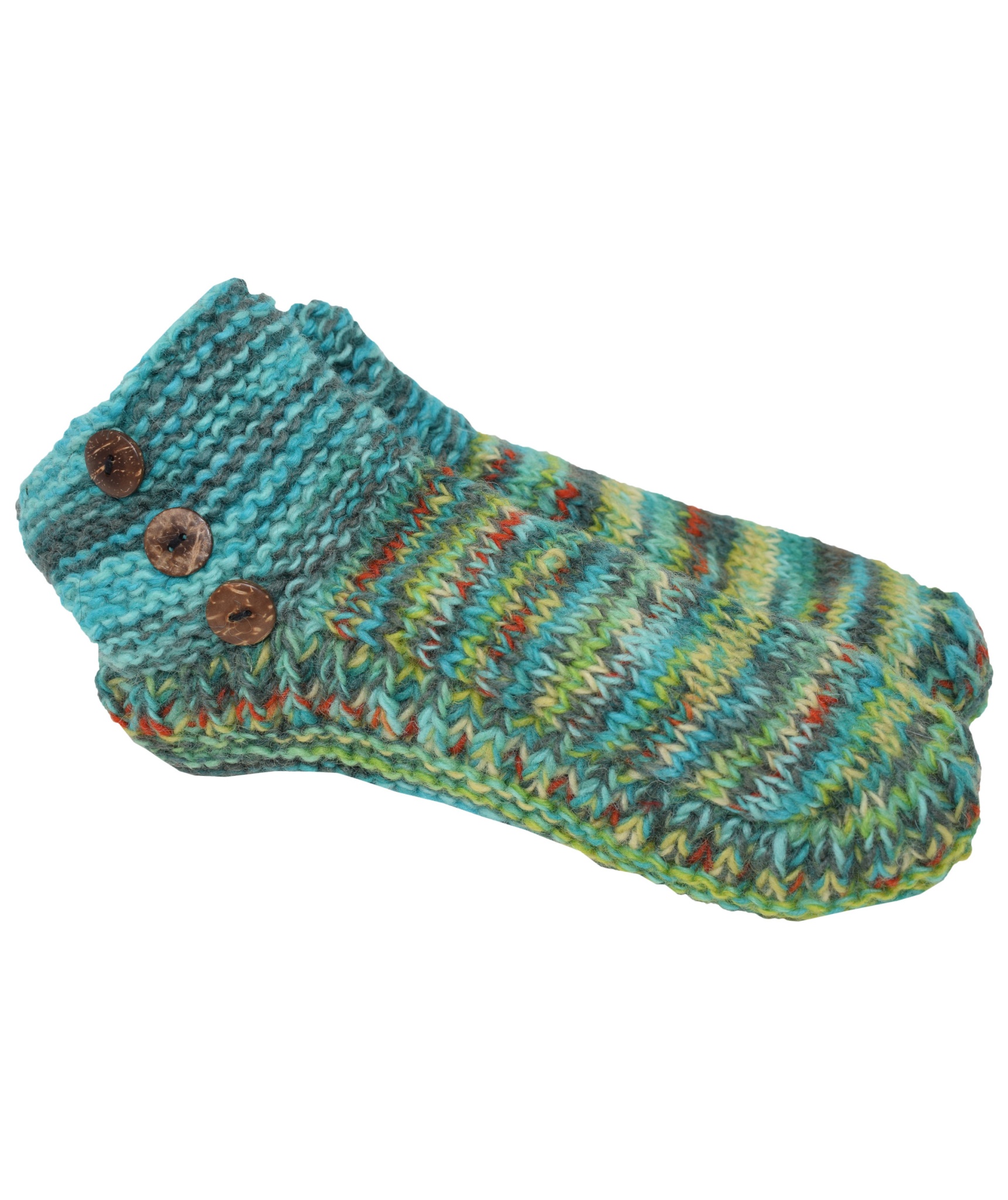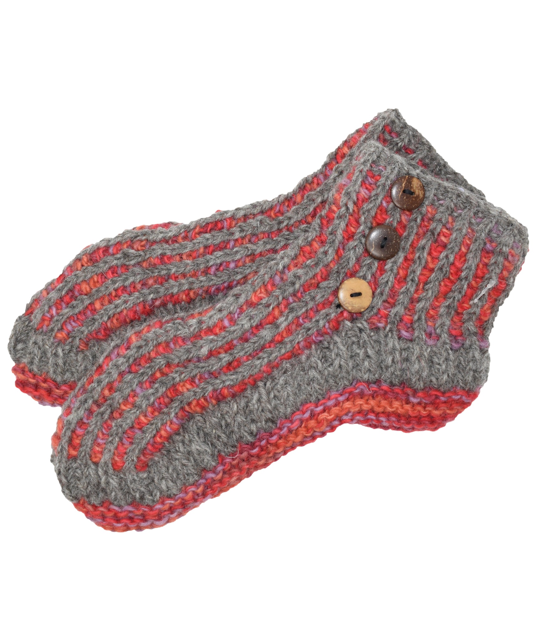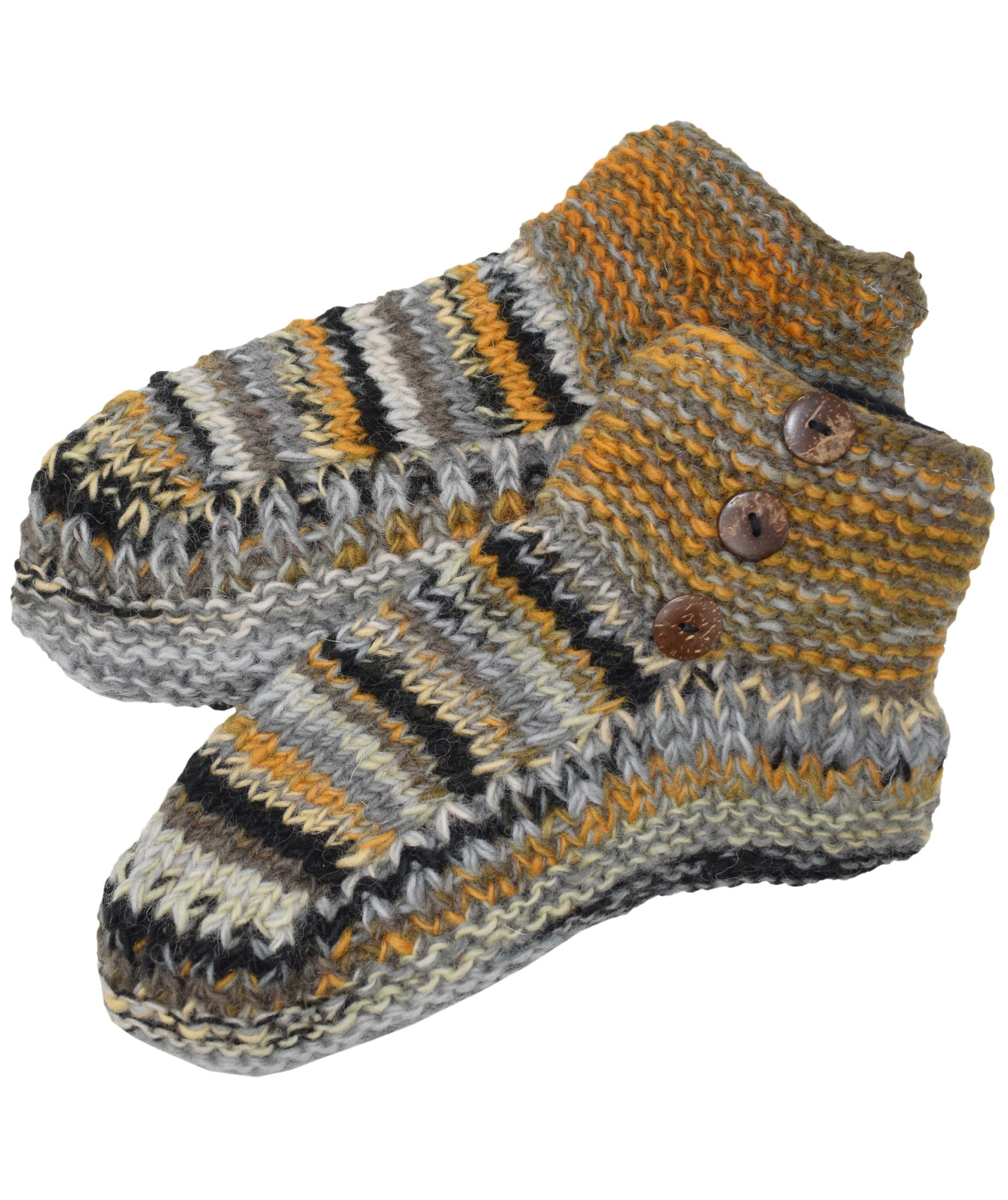 Keep your toes feeling toasty with this cozy hand knitted wool slipper socks . Ankle high design with added button detail for style. Fully fleece lined for extra comfort and give you extra warmth when the weather gets chilly.