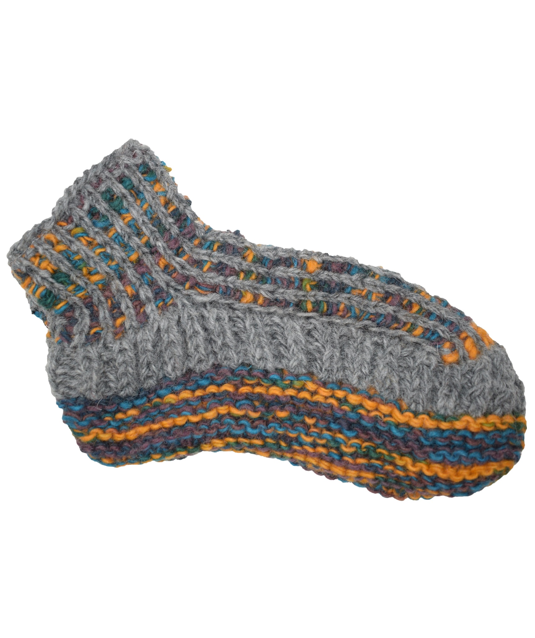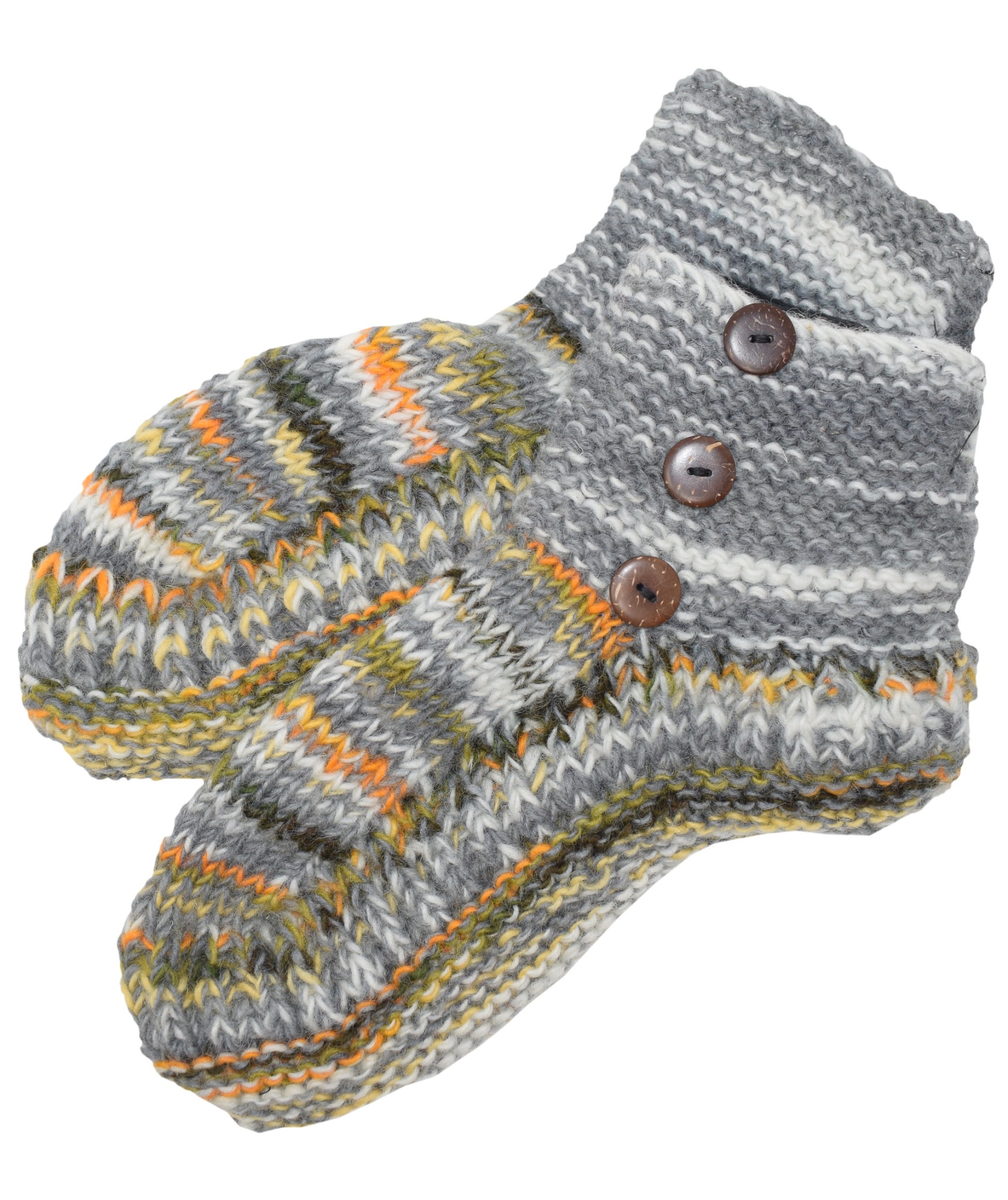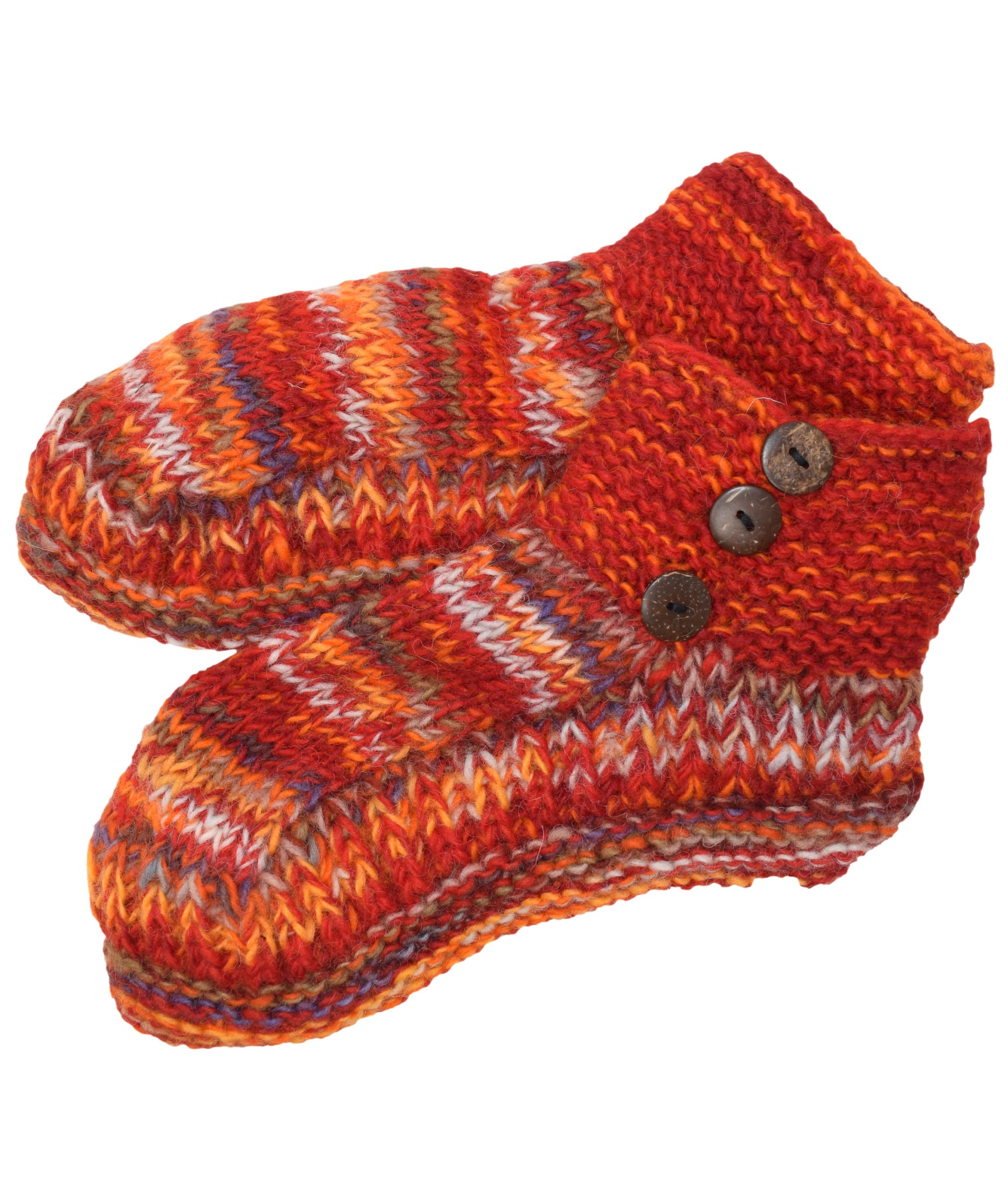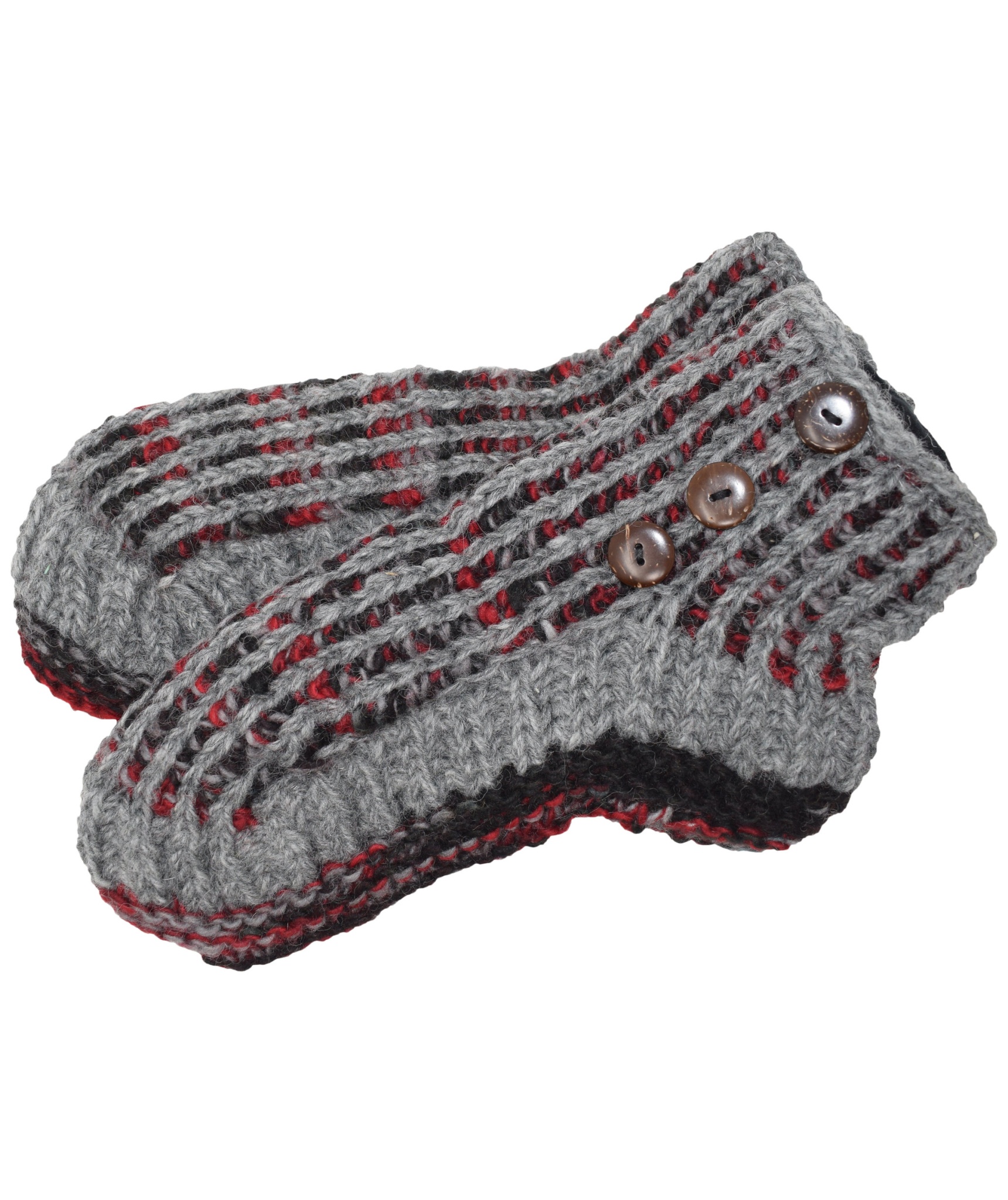 Keep your toes feeling toasty with this cozy hand knitted wool slipper socks . Ankle high design with added button detail for style. Fully fleece lined for extra comfort and give you extra warmth when the weather gets chilly.