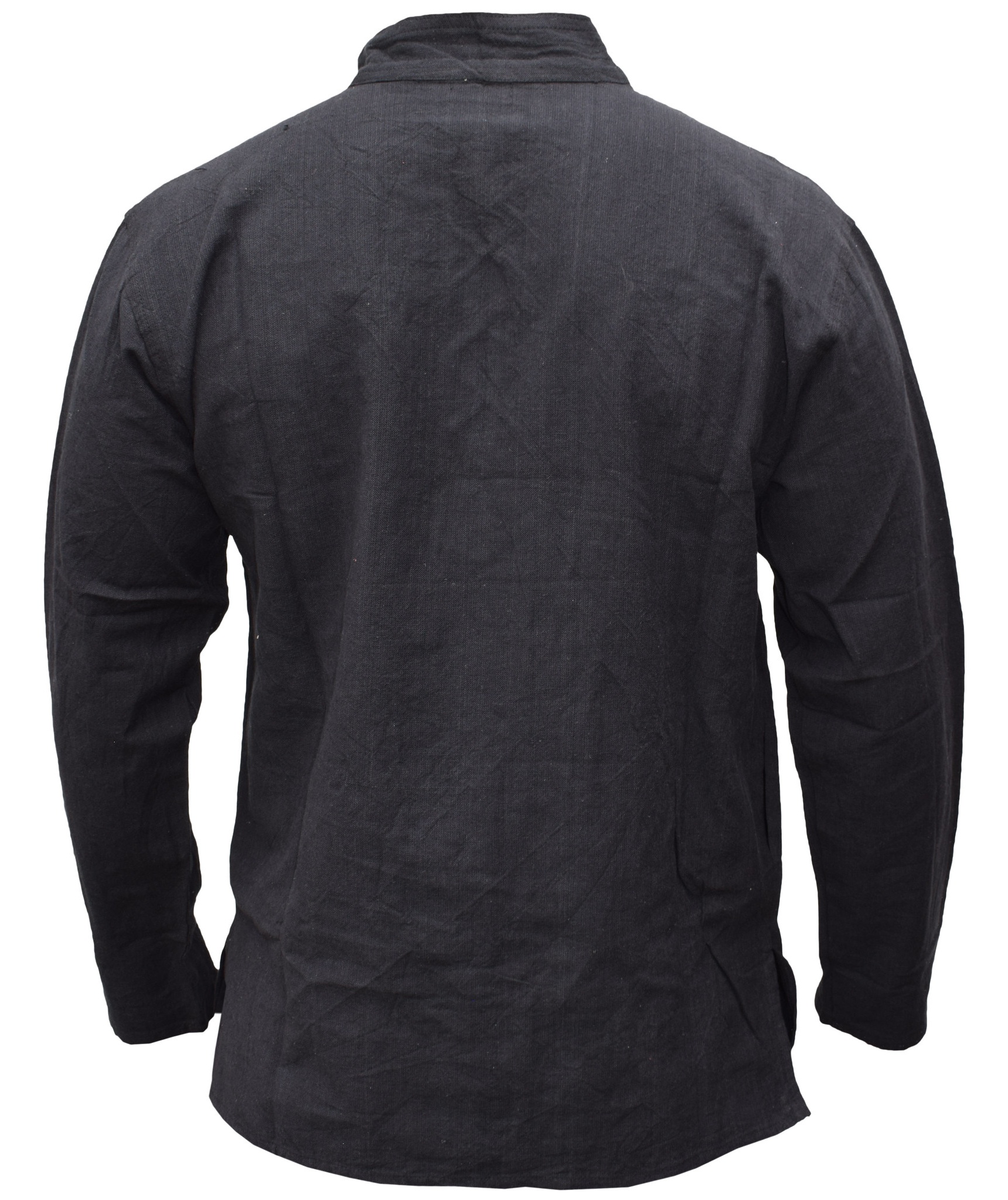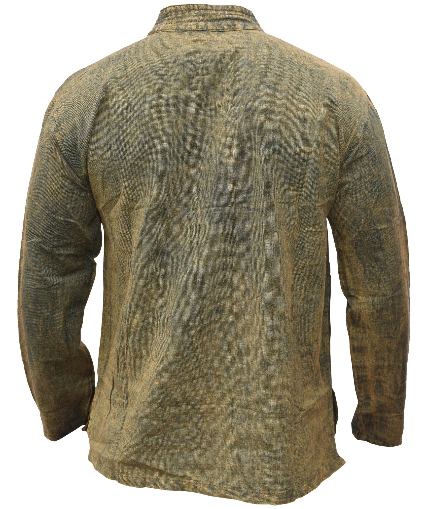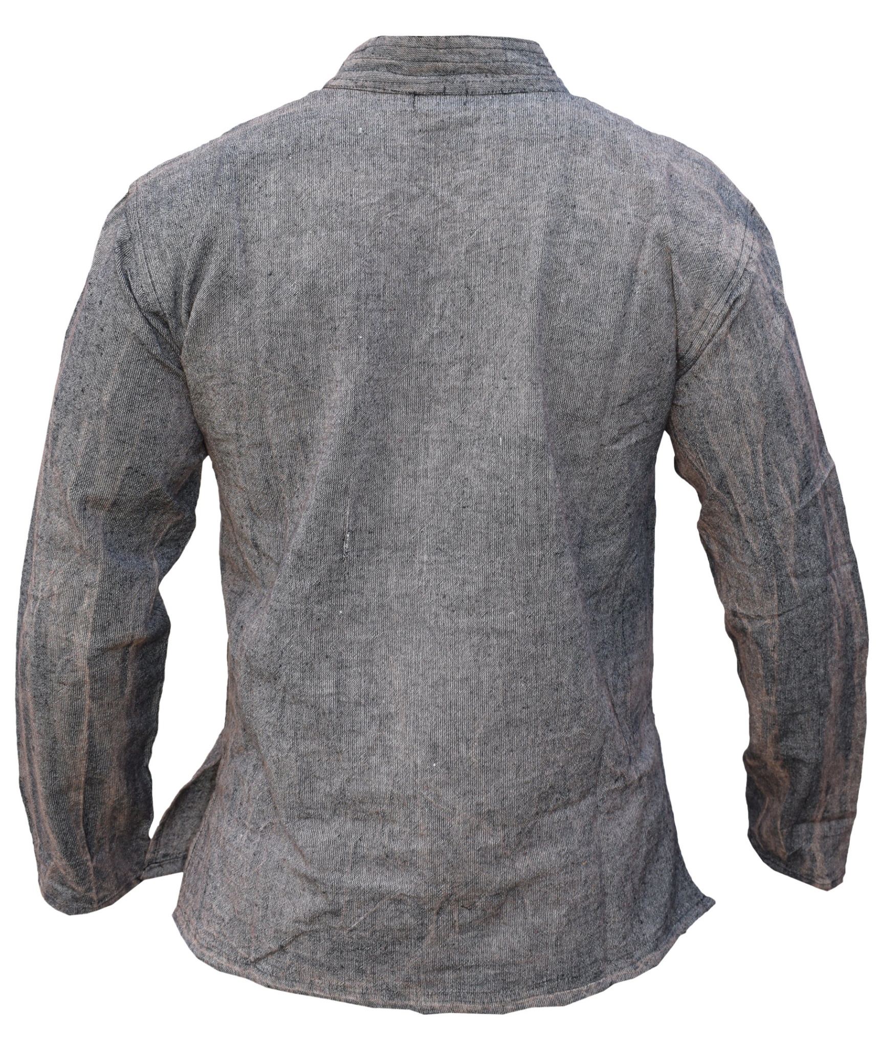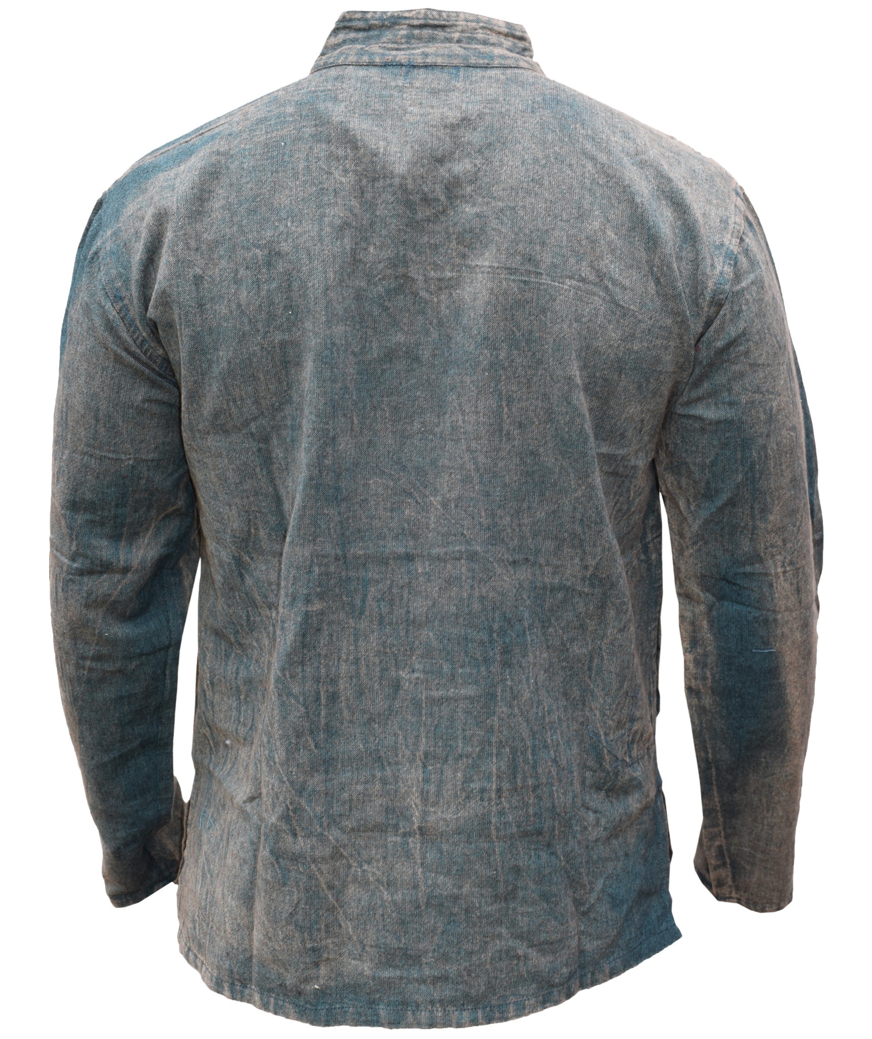 Handmade hemp cotton long sleeve shirt with grandad collar. Available in stone washed and non washed versions.