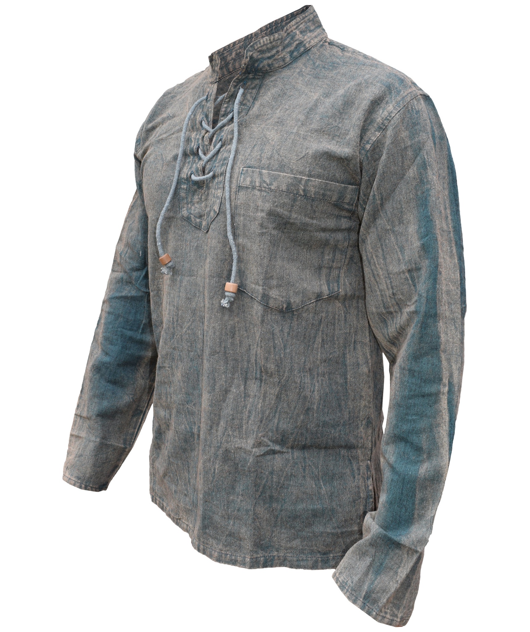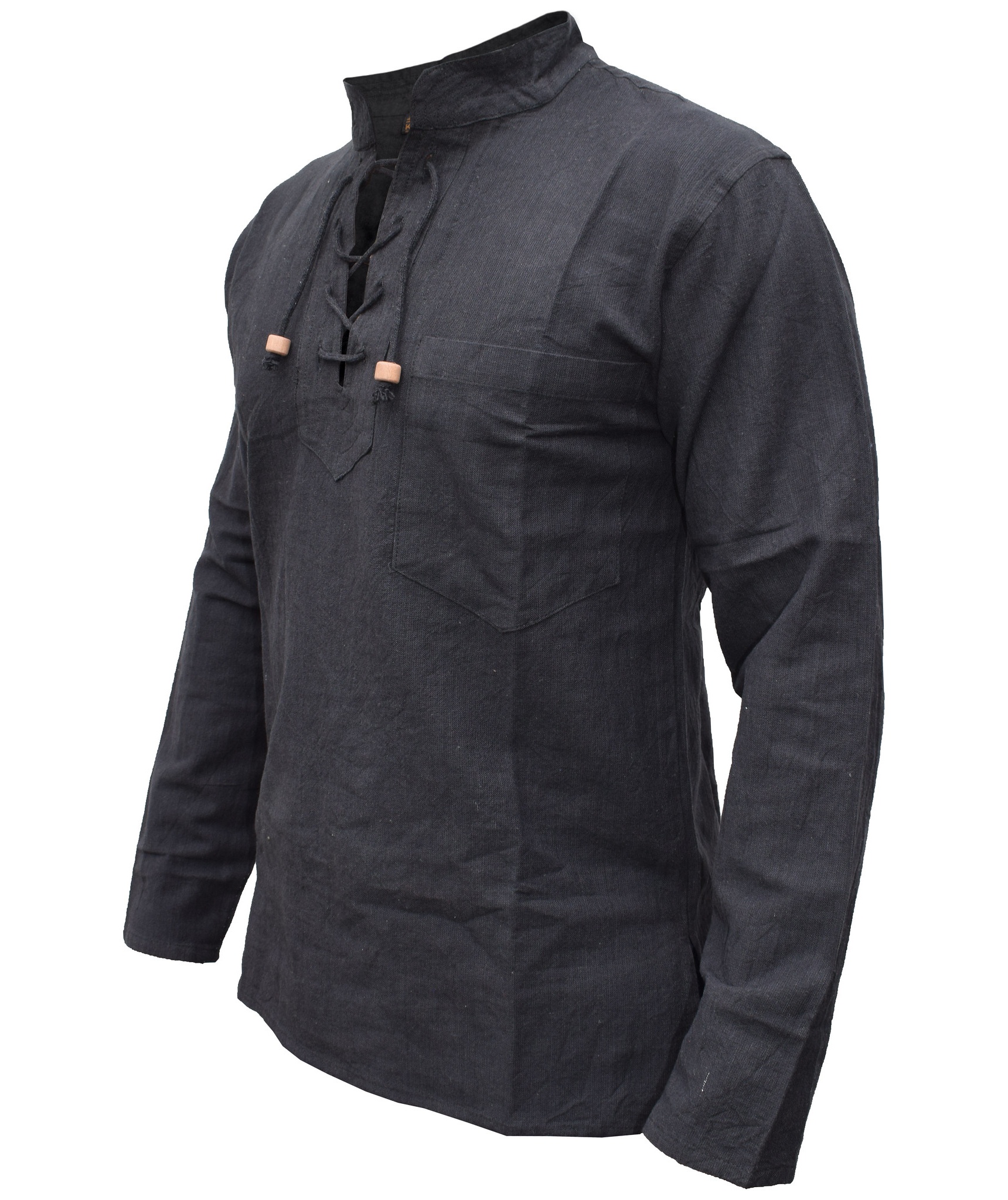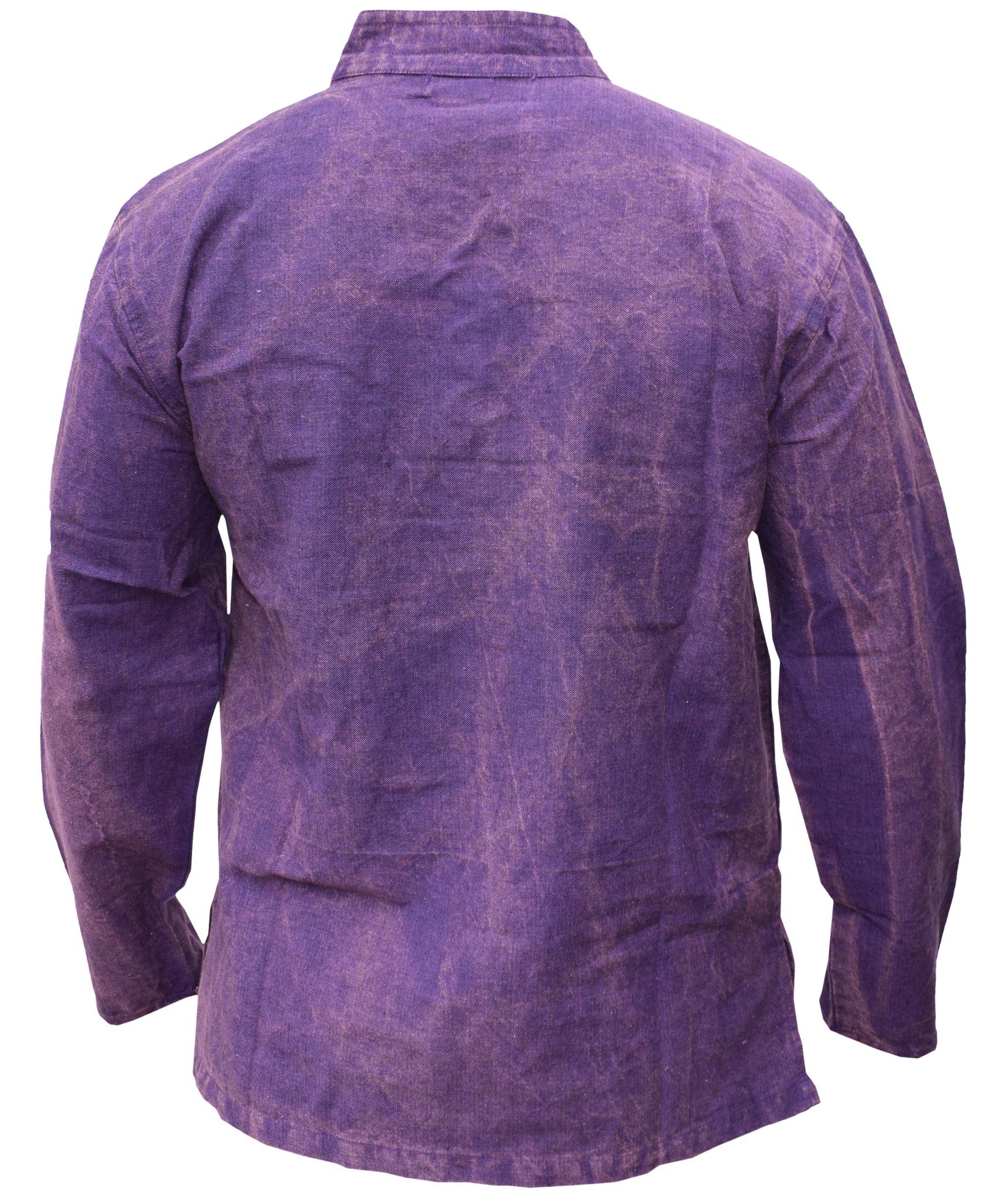 Handmade hemp cotton long sleeve shirt with grandad collar. Available in stone washed and non washed versions.