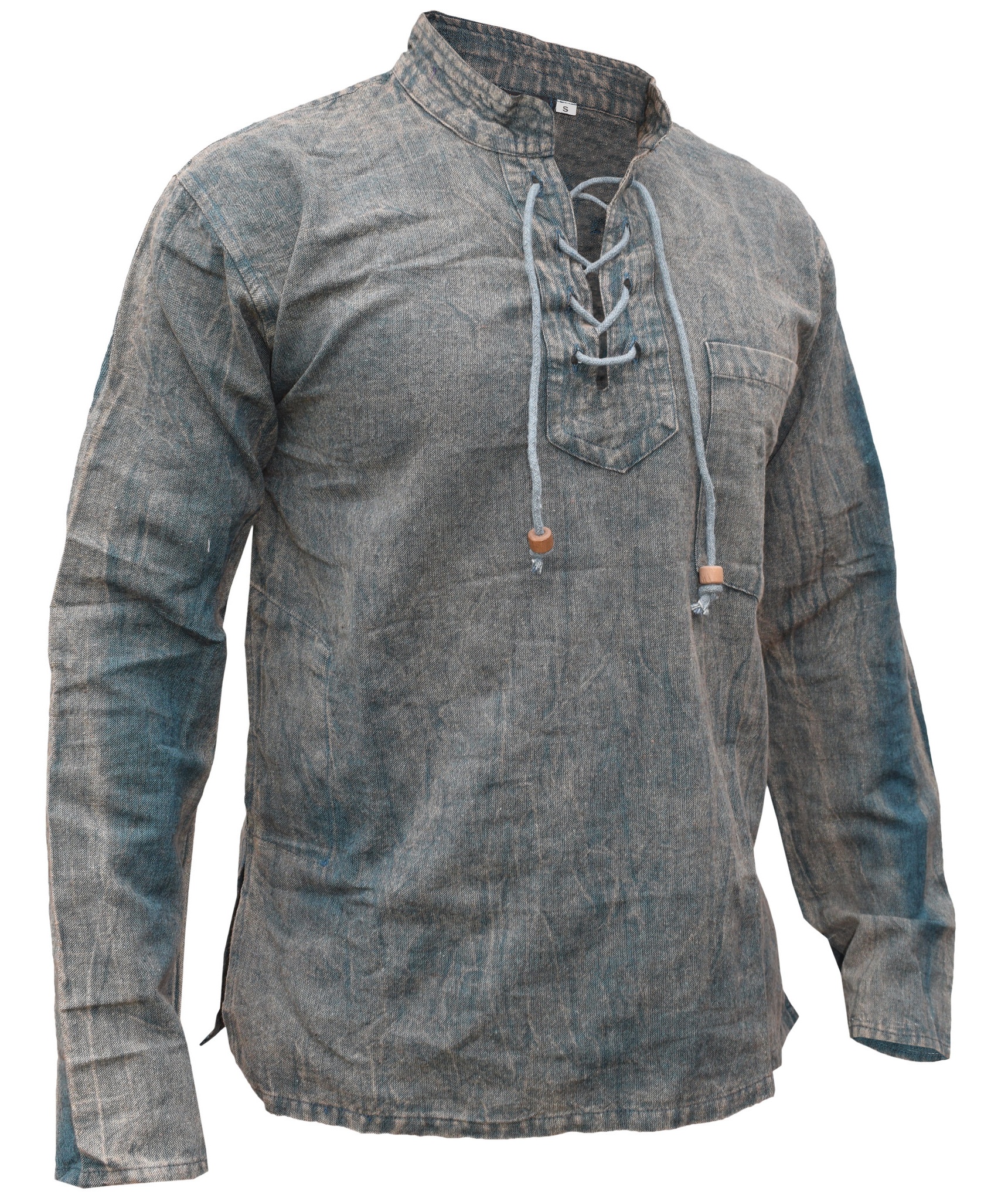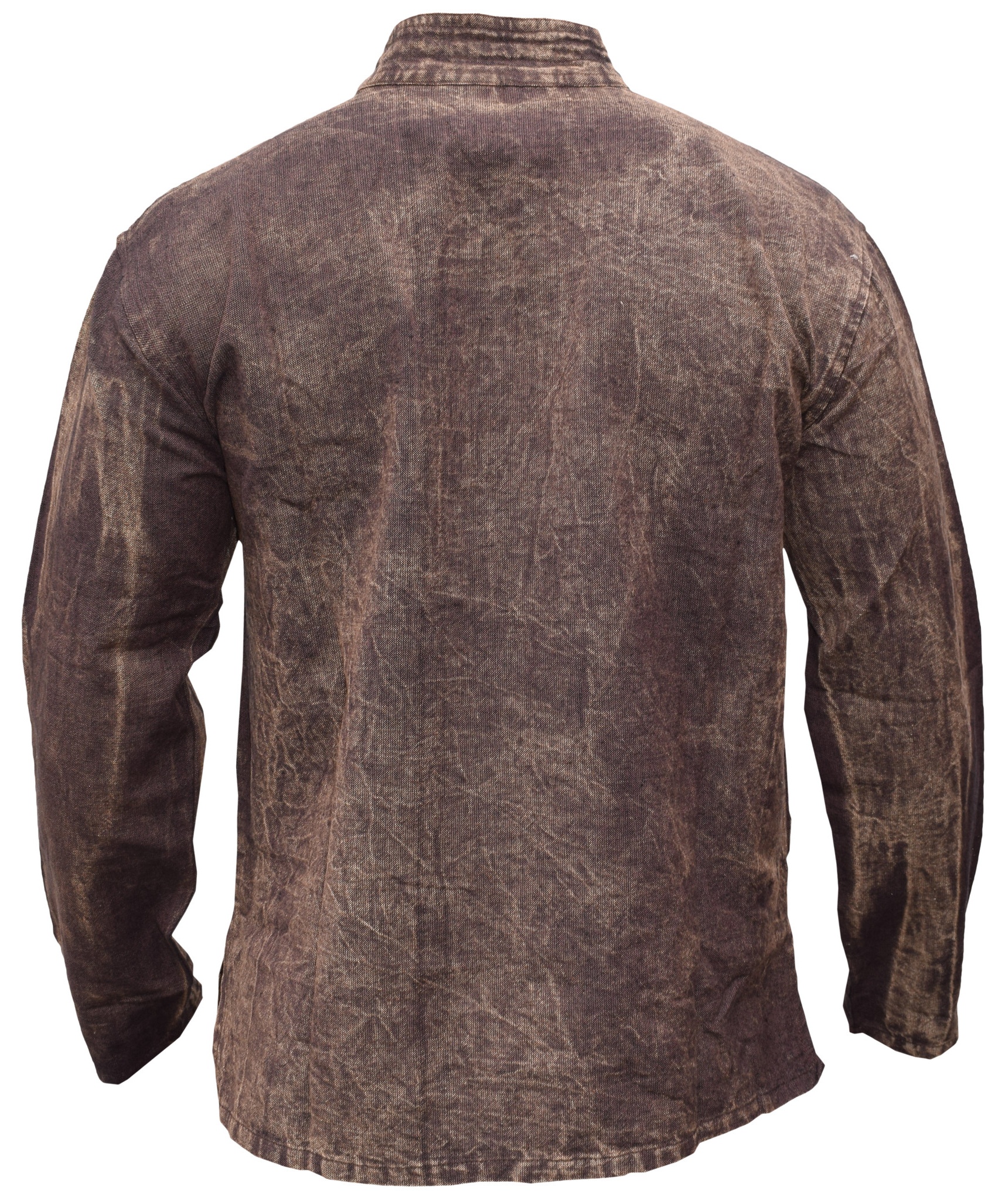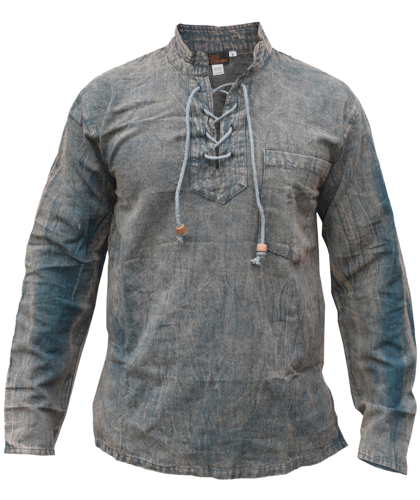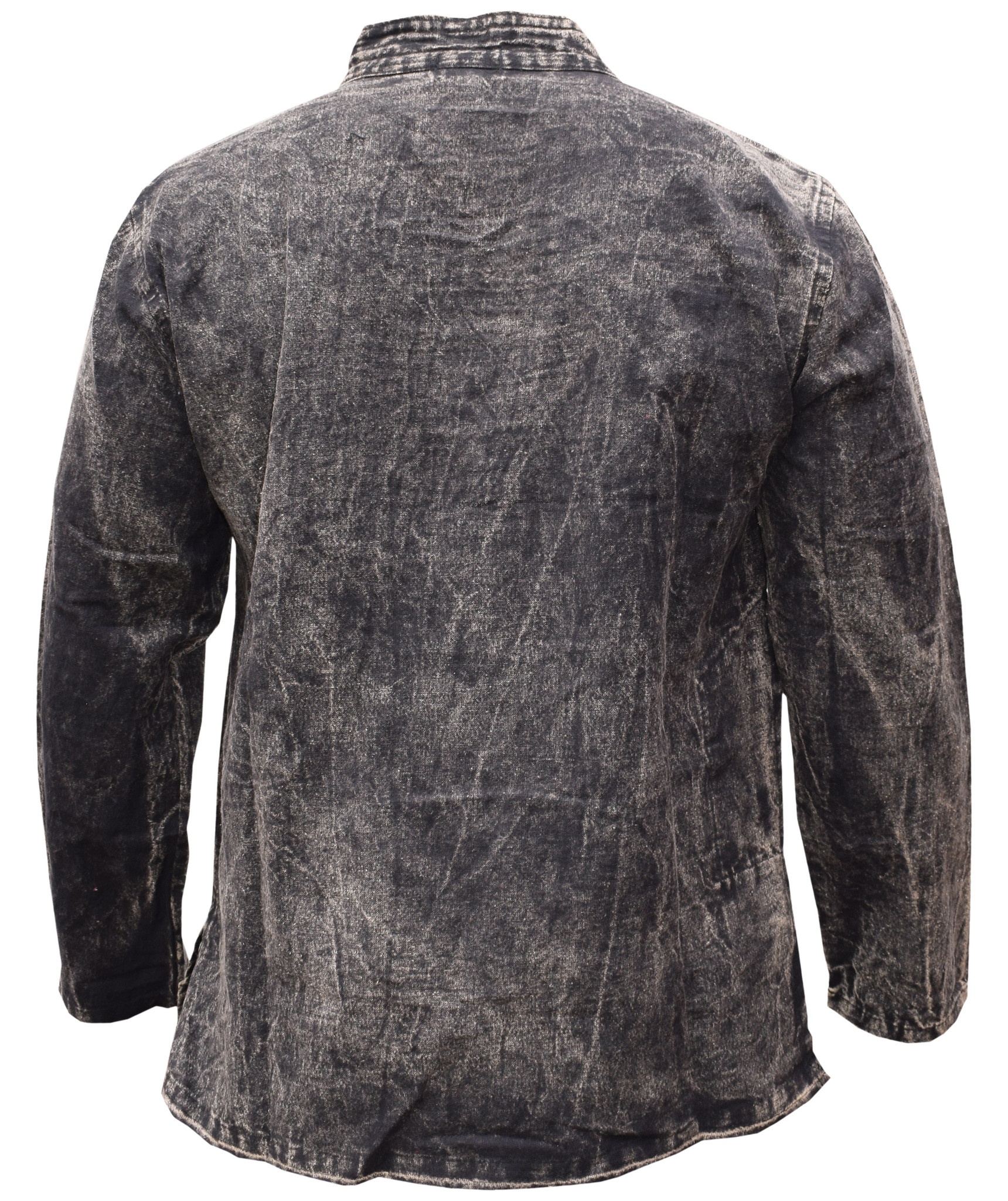 Handmade hemp cotton long sleeve shirt with grandad collar. Available in stone washed and non washed versions.