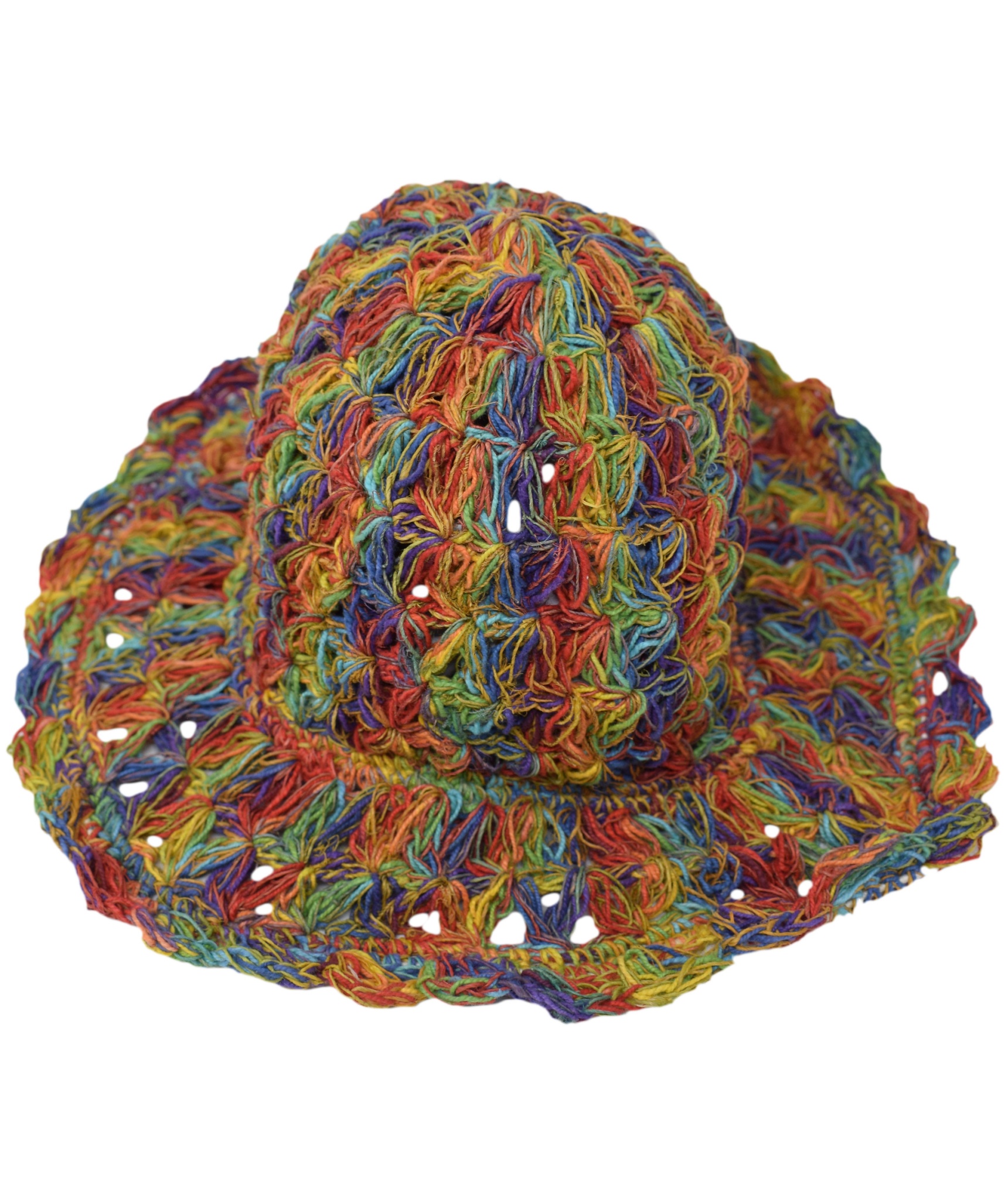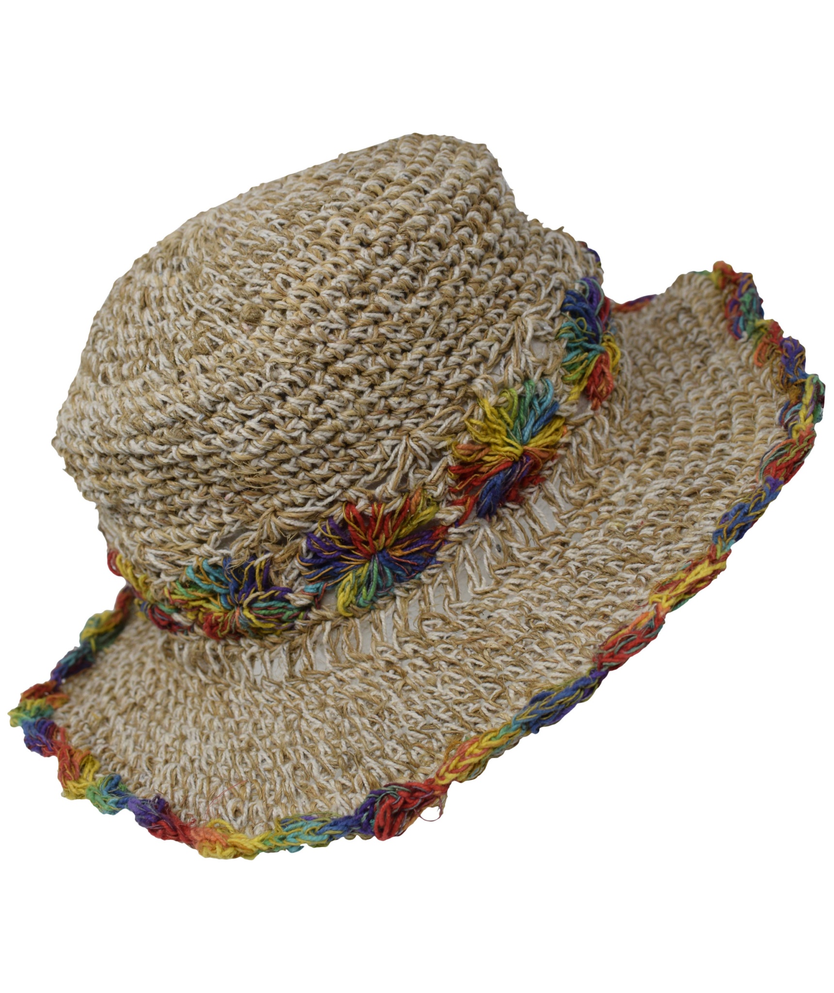This stylish hat is crocheted from natural hemp and cotton in Kathmandu. Originally designed to protect the head from the sun and against heatstroke. Great for frequent travellers in hot weather. Neither too smart nor too casual meaning it can be worn with anything. The straw hat is a must have accessory.