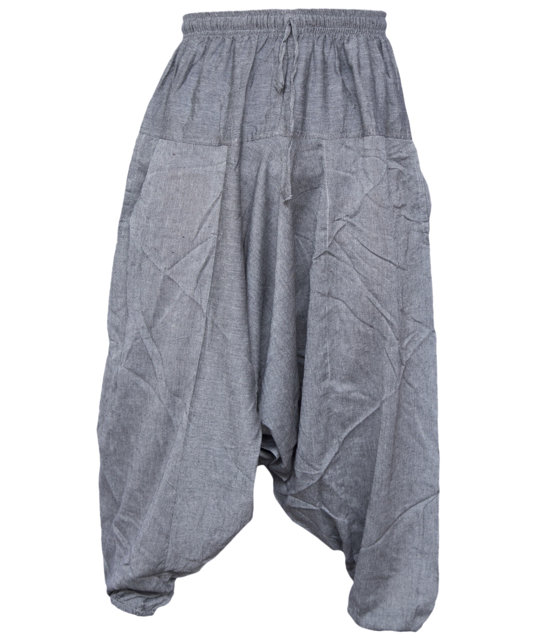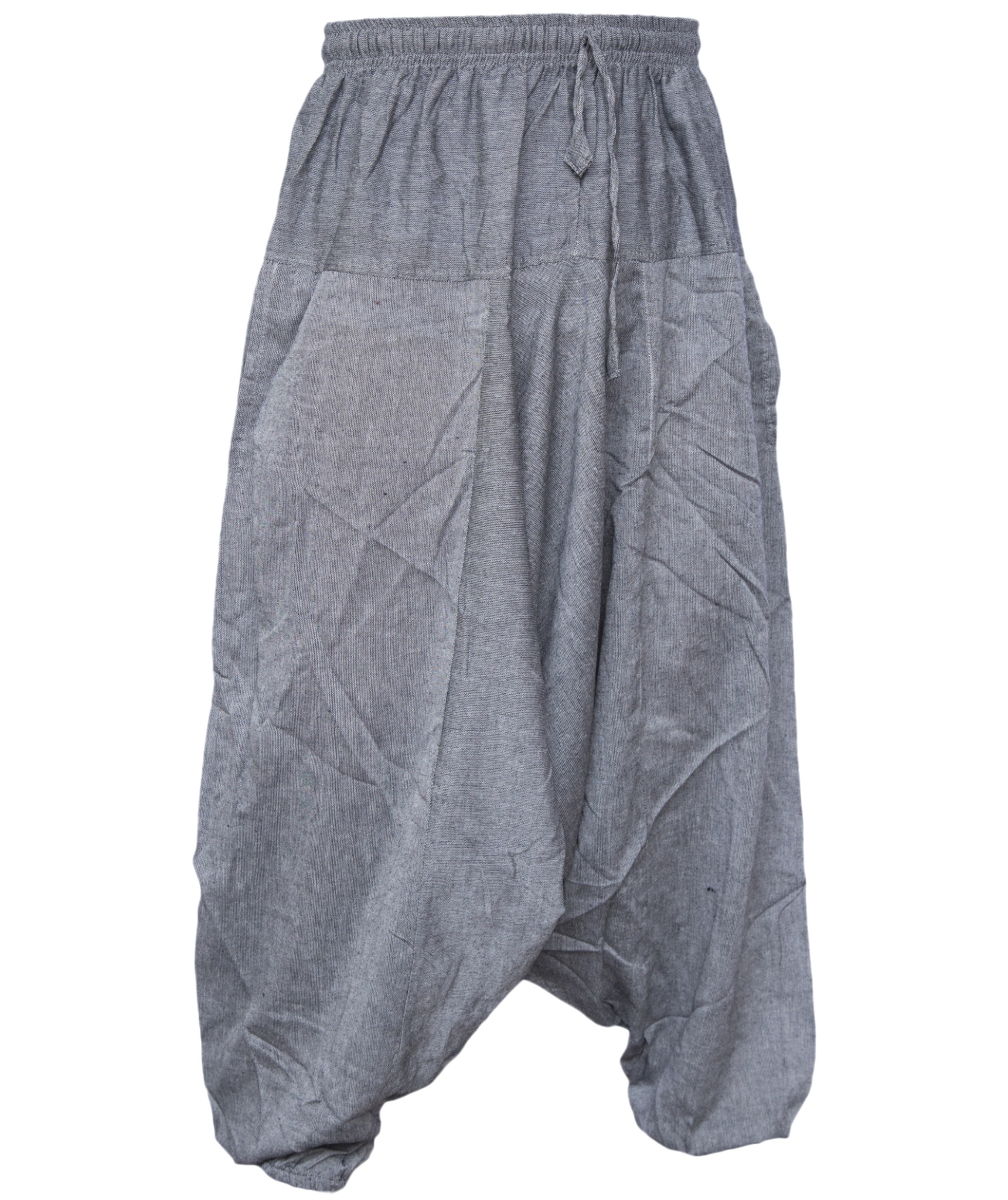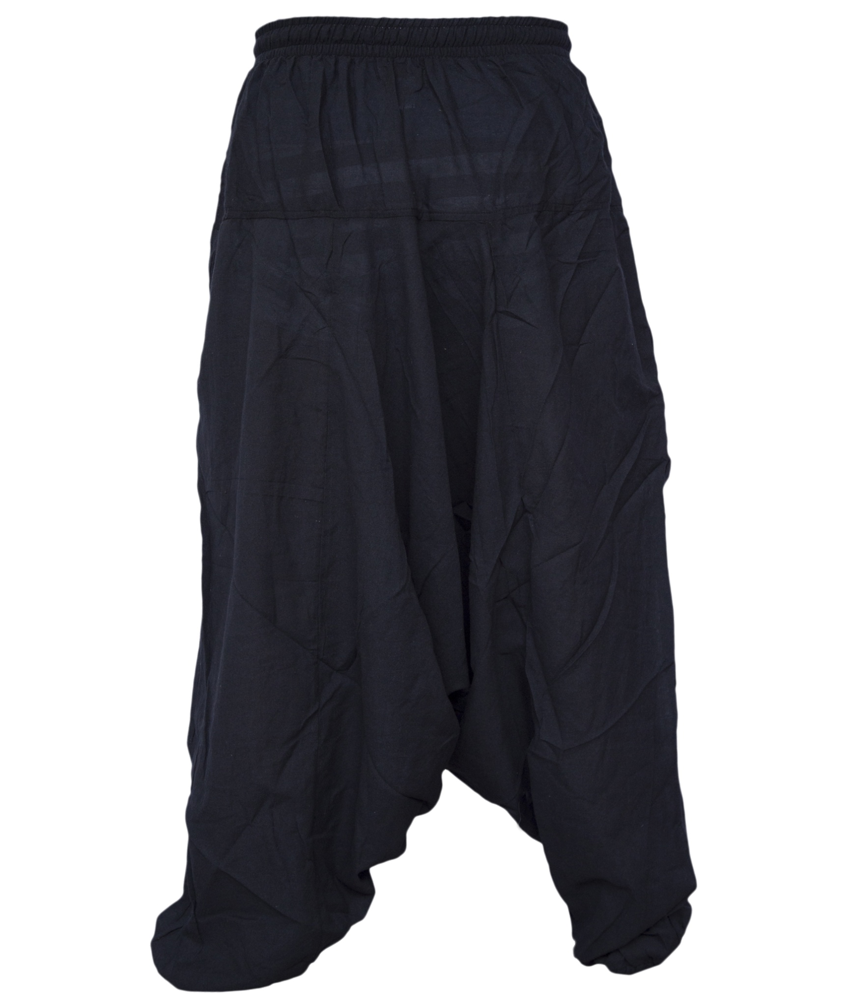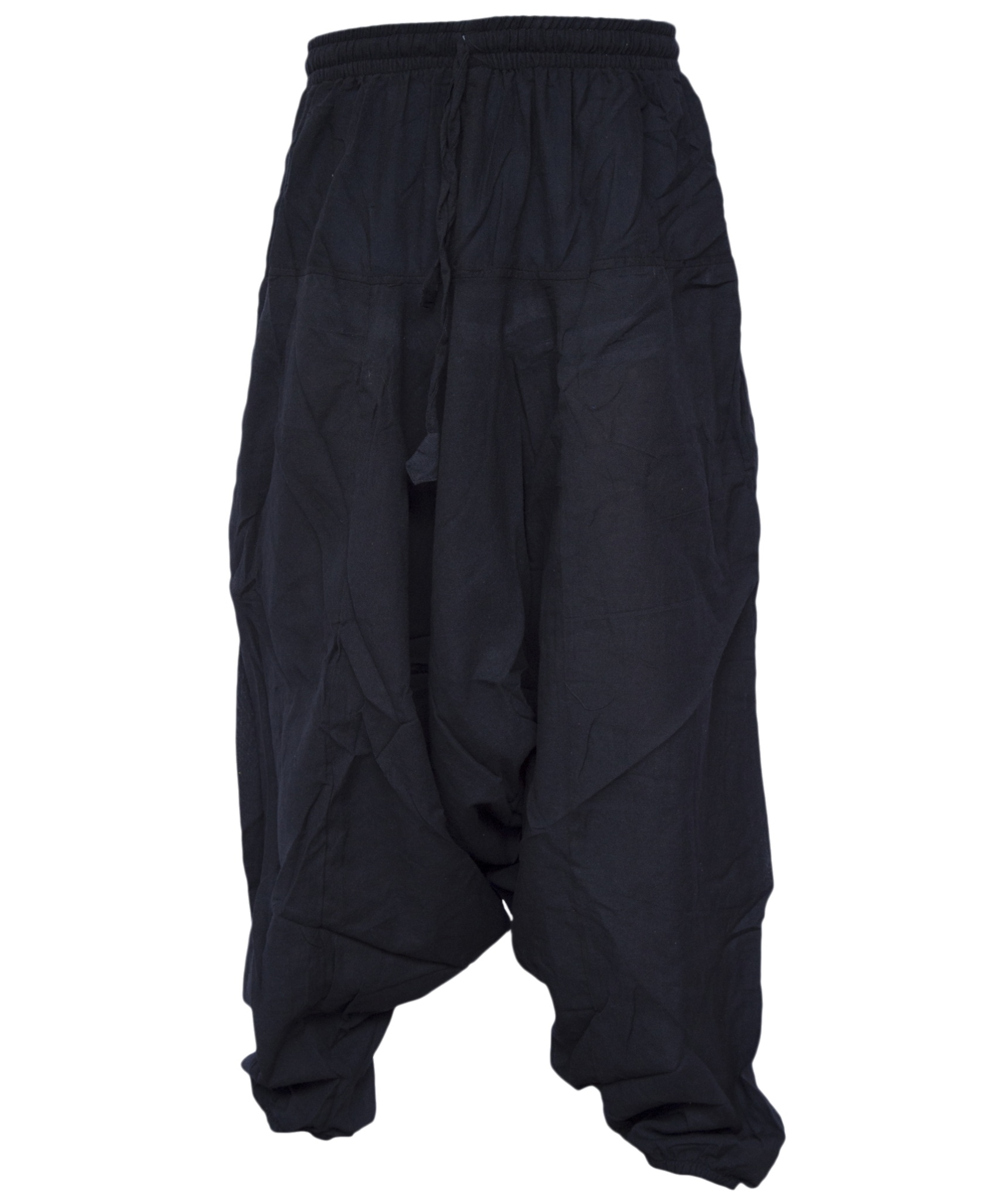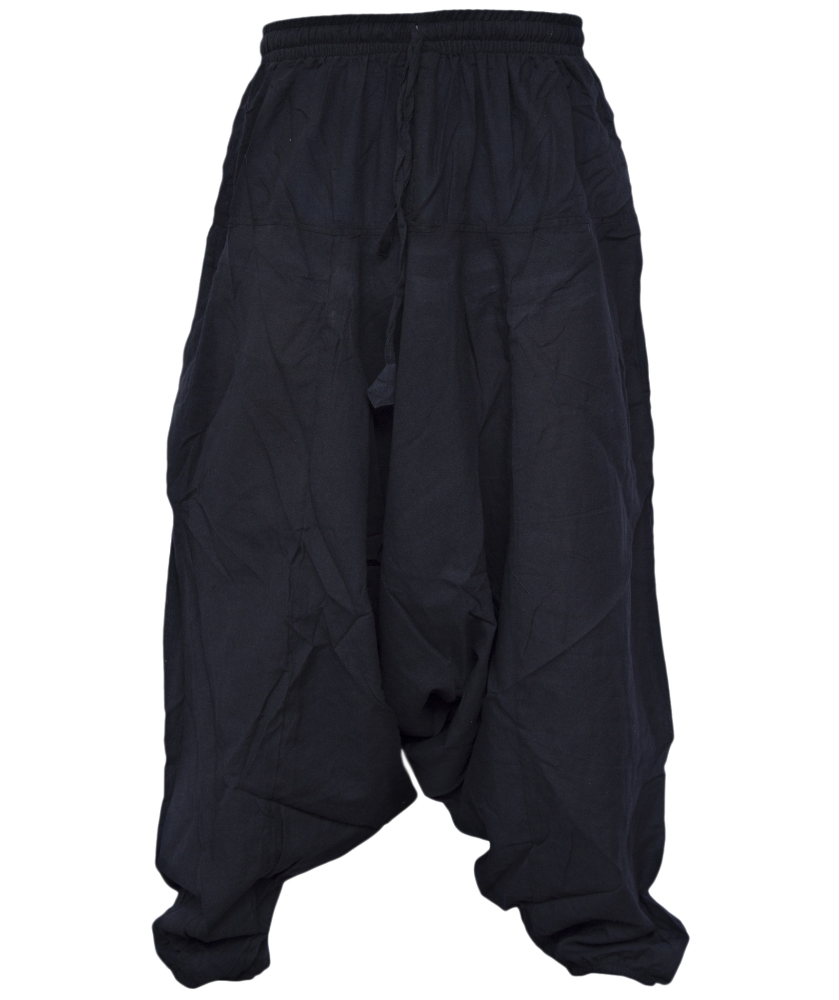 Although these trousers are categorized under men's clothing, they are equally popular among ladies as well. With only a single elastic waist unlike ladies which have 9-14 panel of elastic, these trousers are wide legged, low crotch and super comfy. The waist is elasticated so it fits people of different waist measurement. Made from 100% cotton.