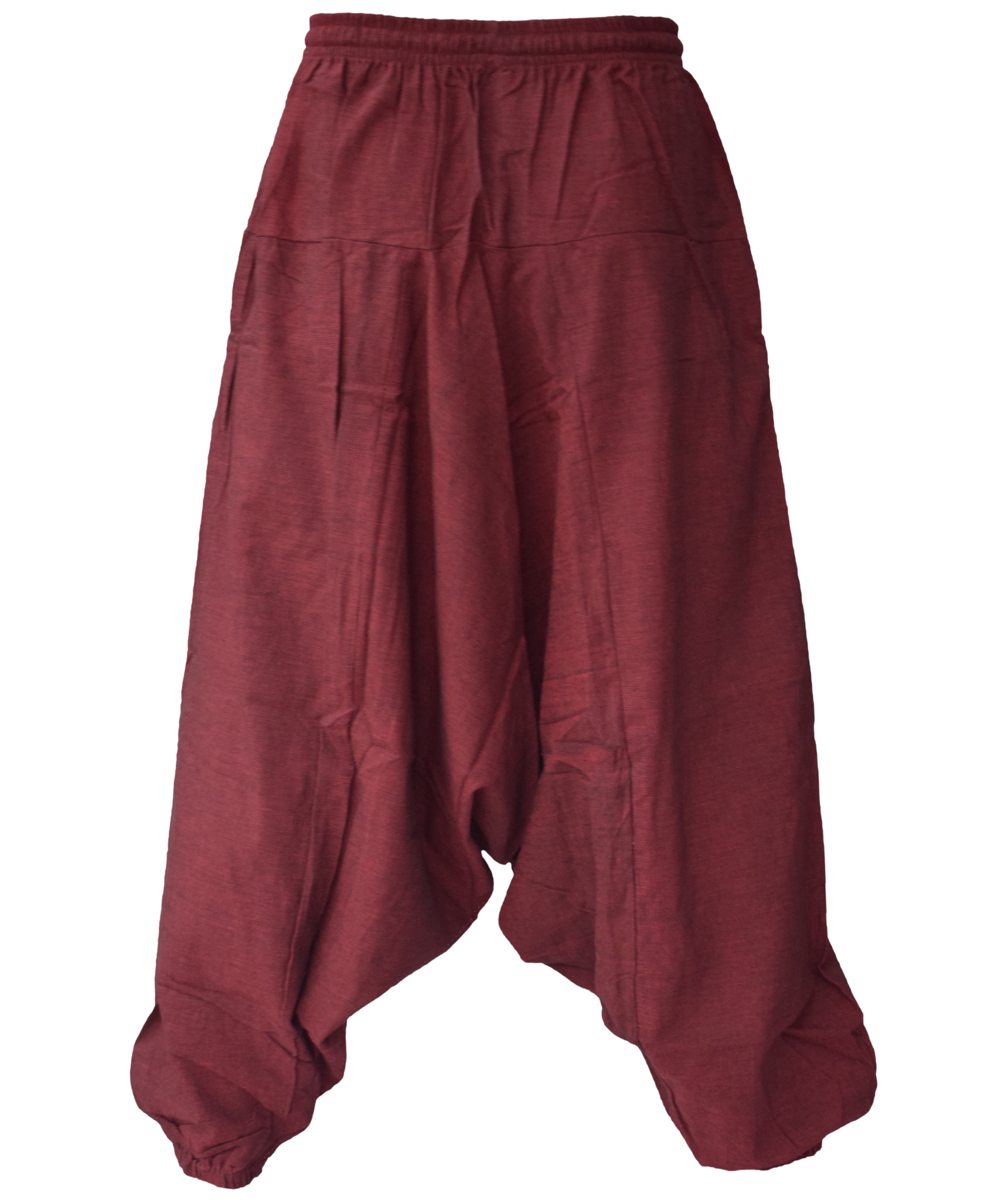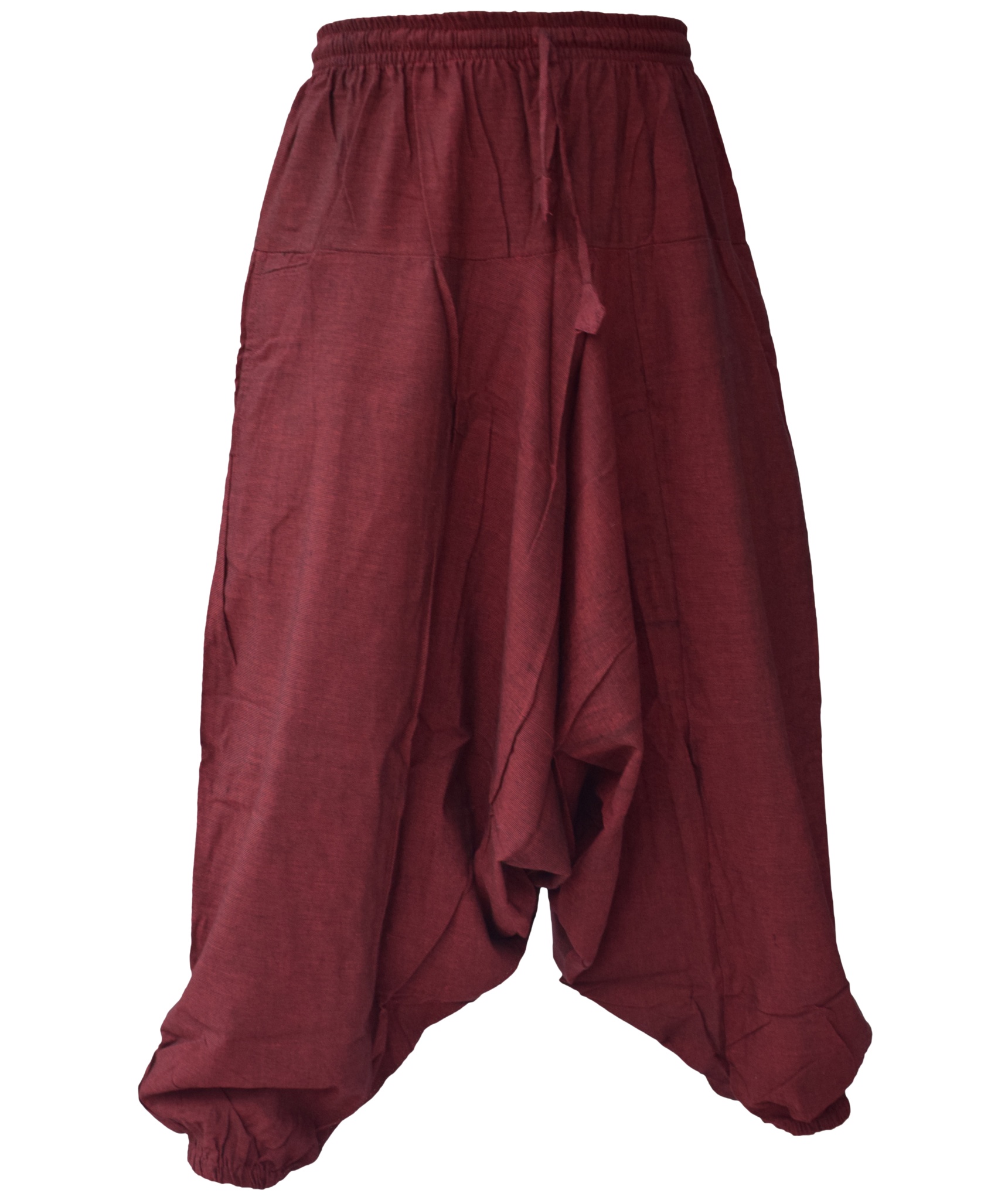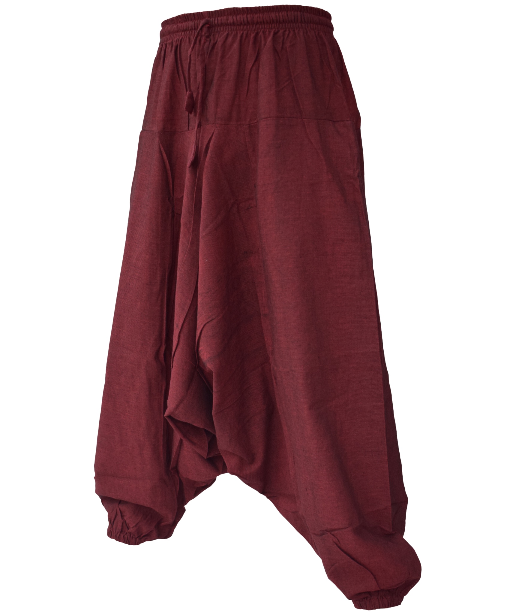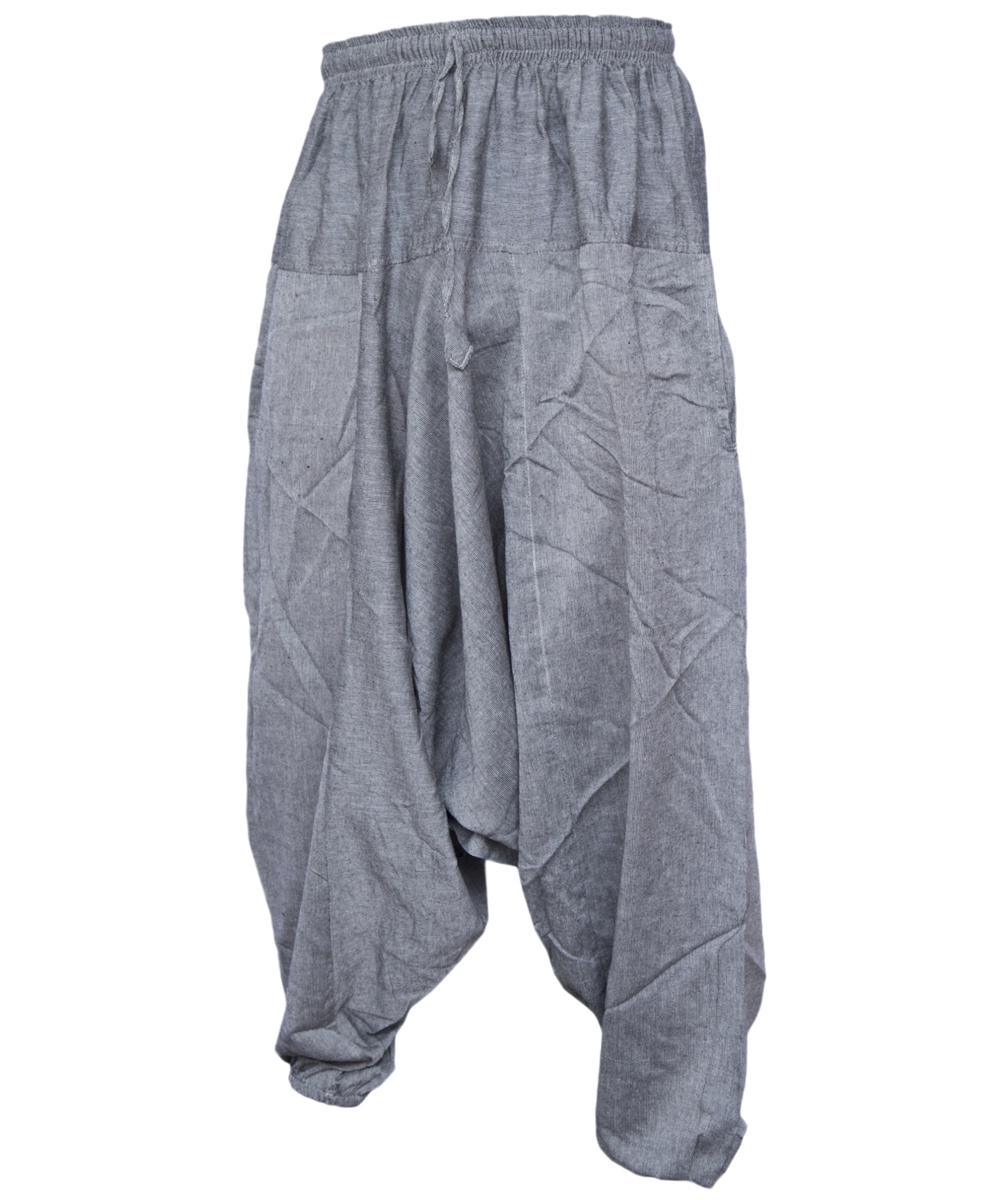 Although these trousers are categorized under men's clothing, they are equally popular among ladies as well. With only a single elastic waist unlike ladies which have 9-14 panel of elastic, these trousers are wide legged, low crotch and super comfy. The waist is elasticated so it fits people of different waist measurement. Made from 100% cotton.