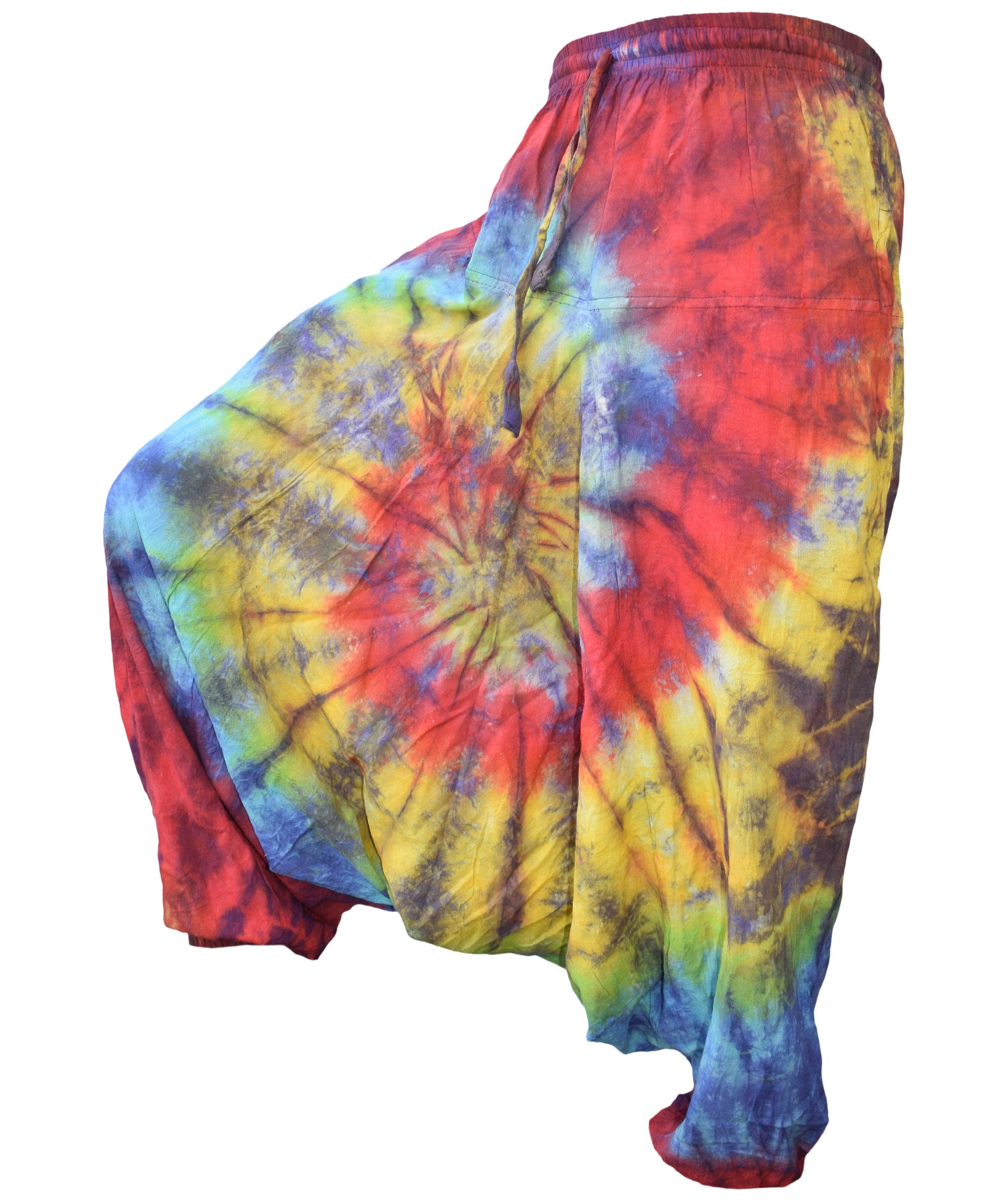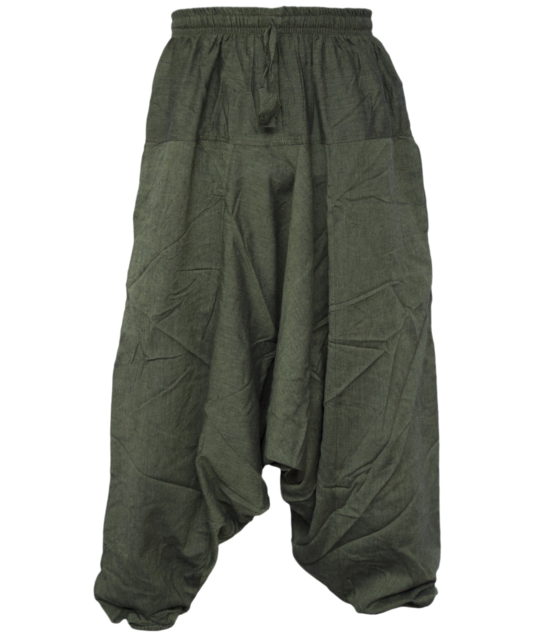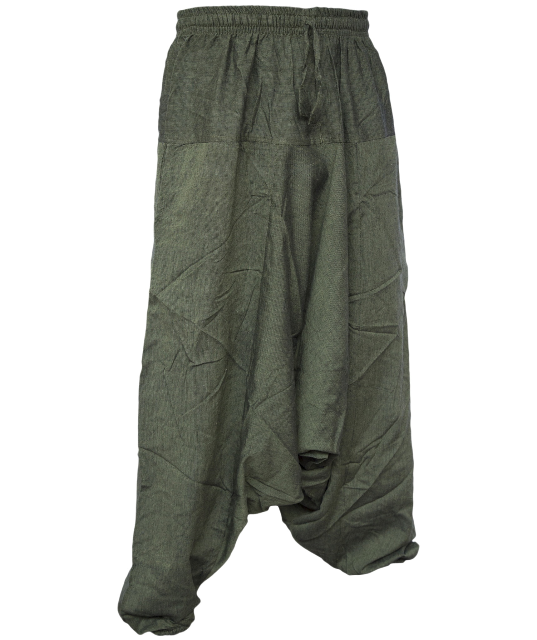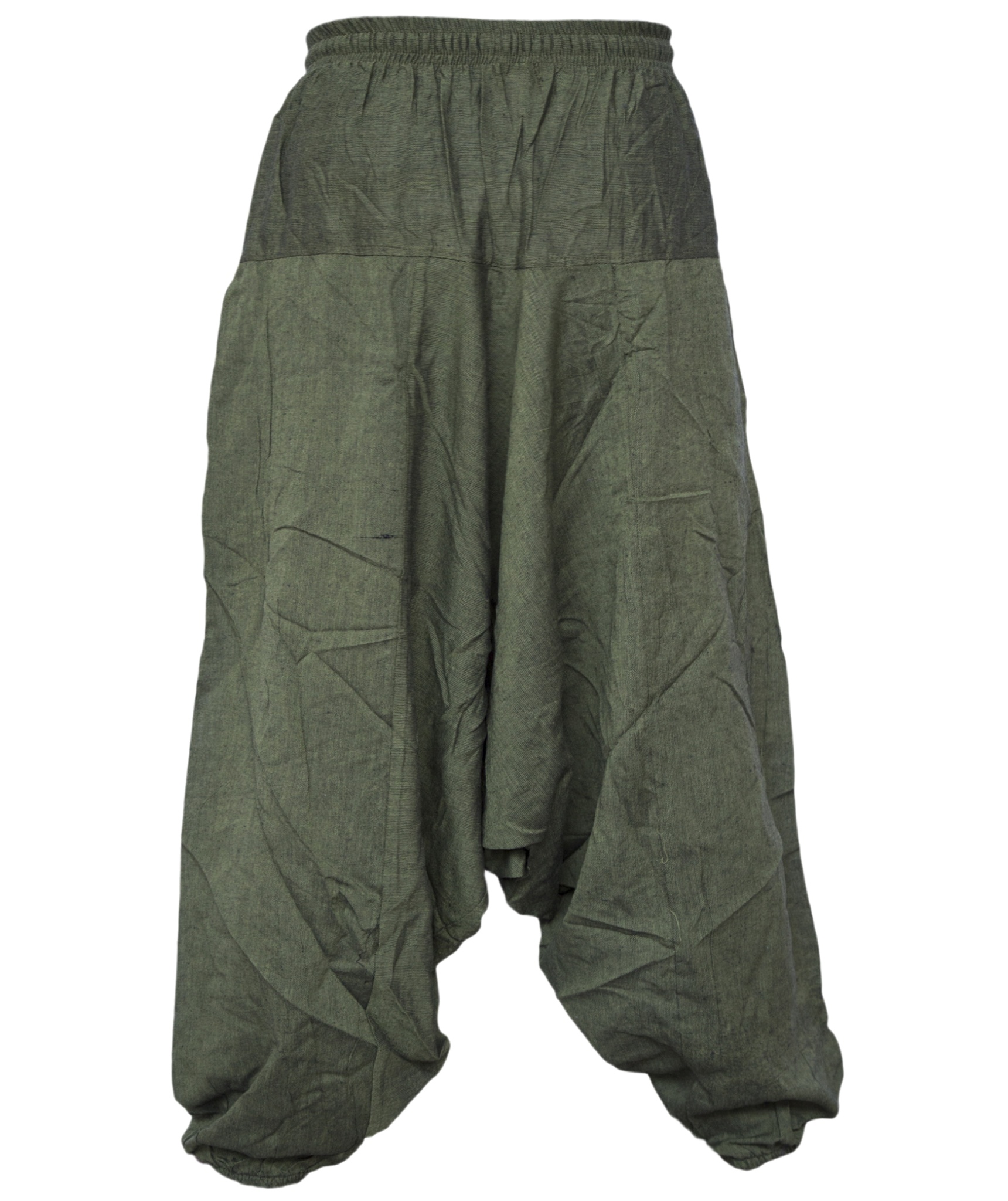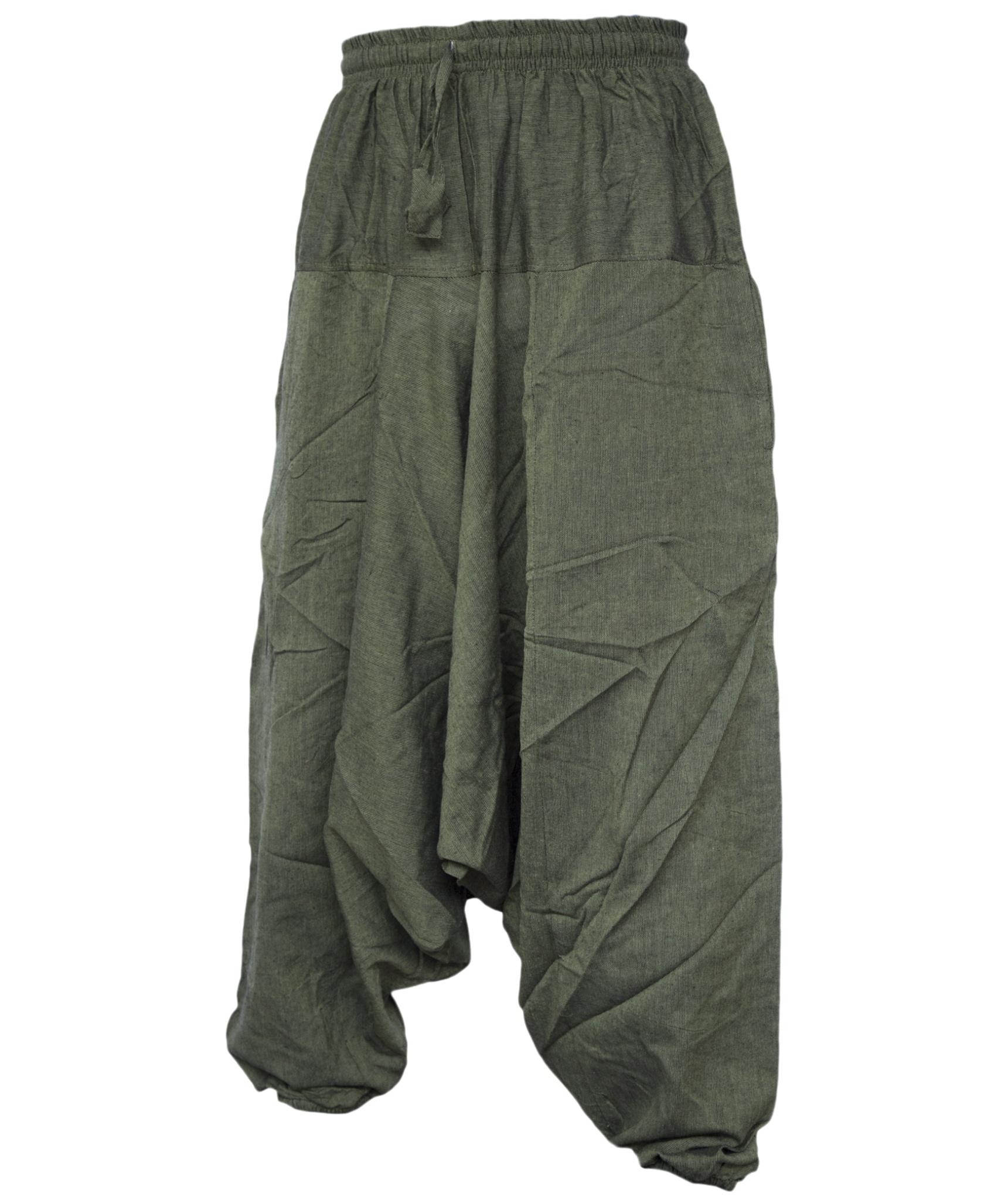 Although these trousers are categorized under men's clothing, they are equally popular among ladies as well. With only a single elastic waist unlike ladies which have 9-14 panel of elastic, these trousers are wide legged, low crotch and super comfy. The waist is elasticated so it fits people of different waist measurement. Made from 100% cotton.