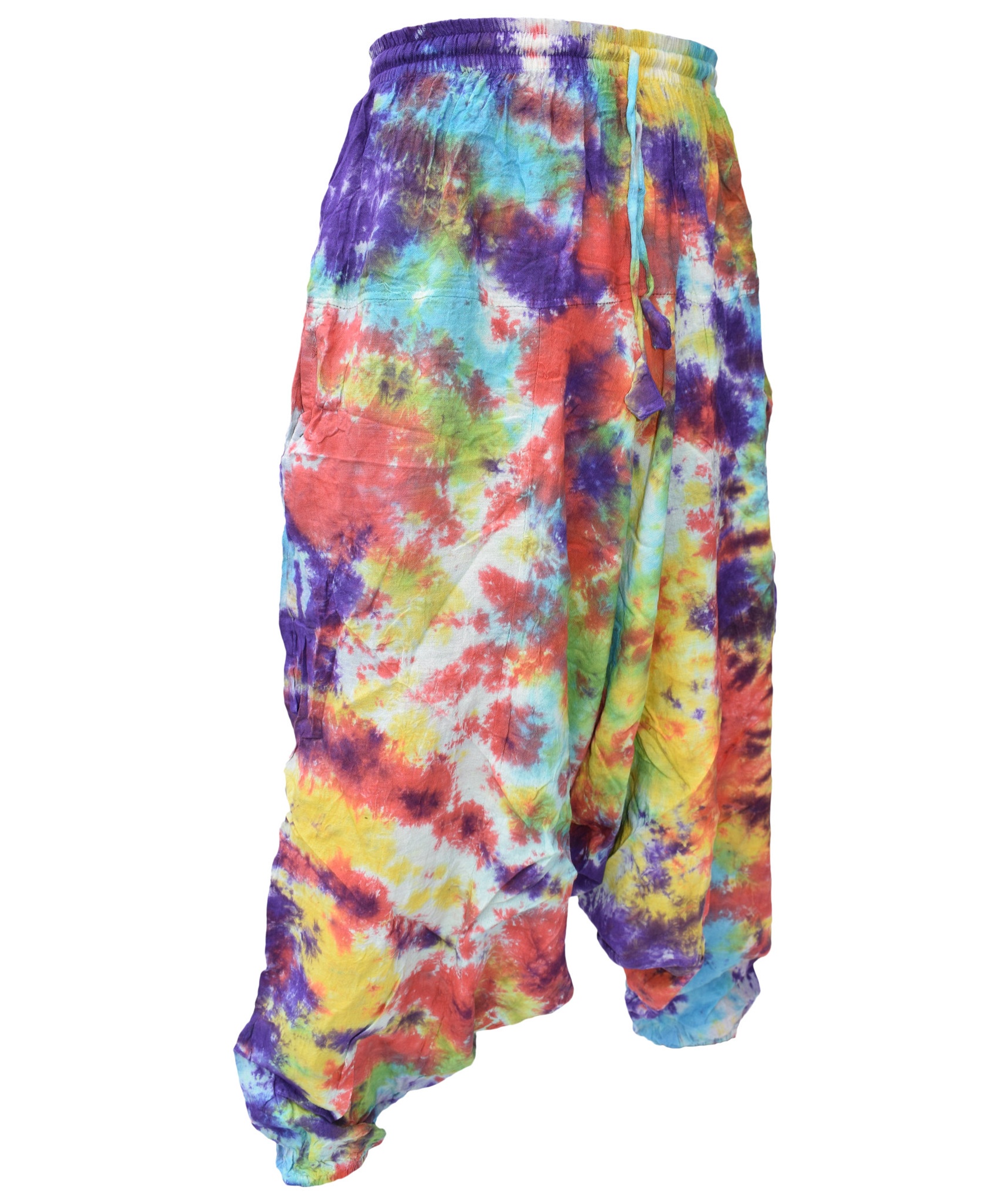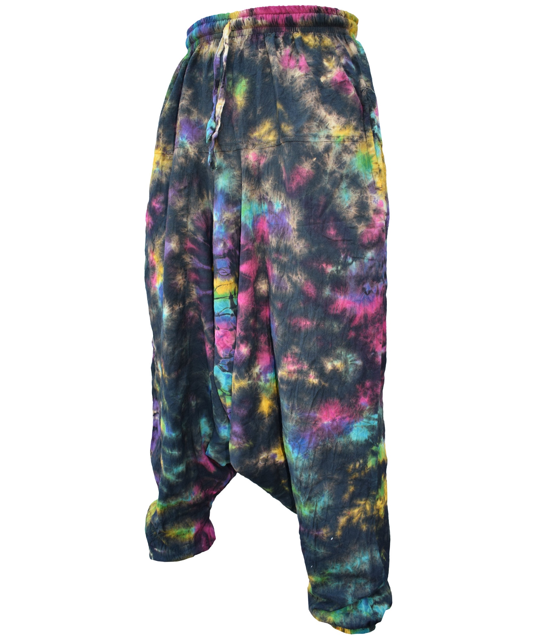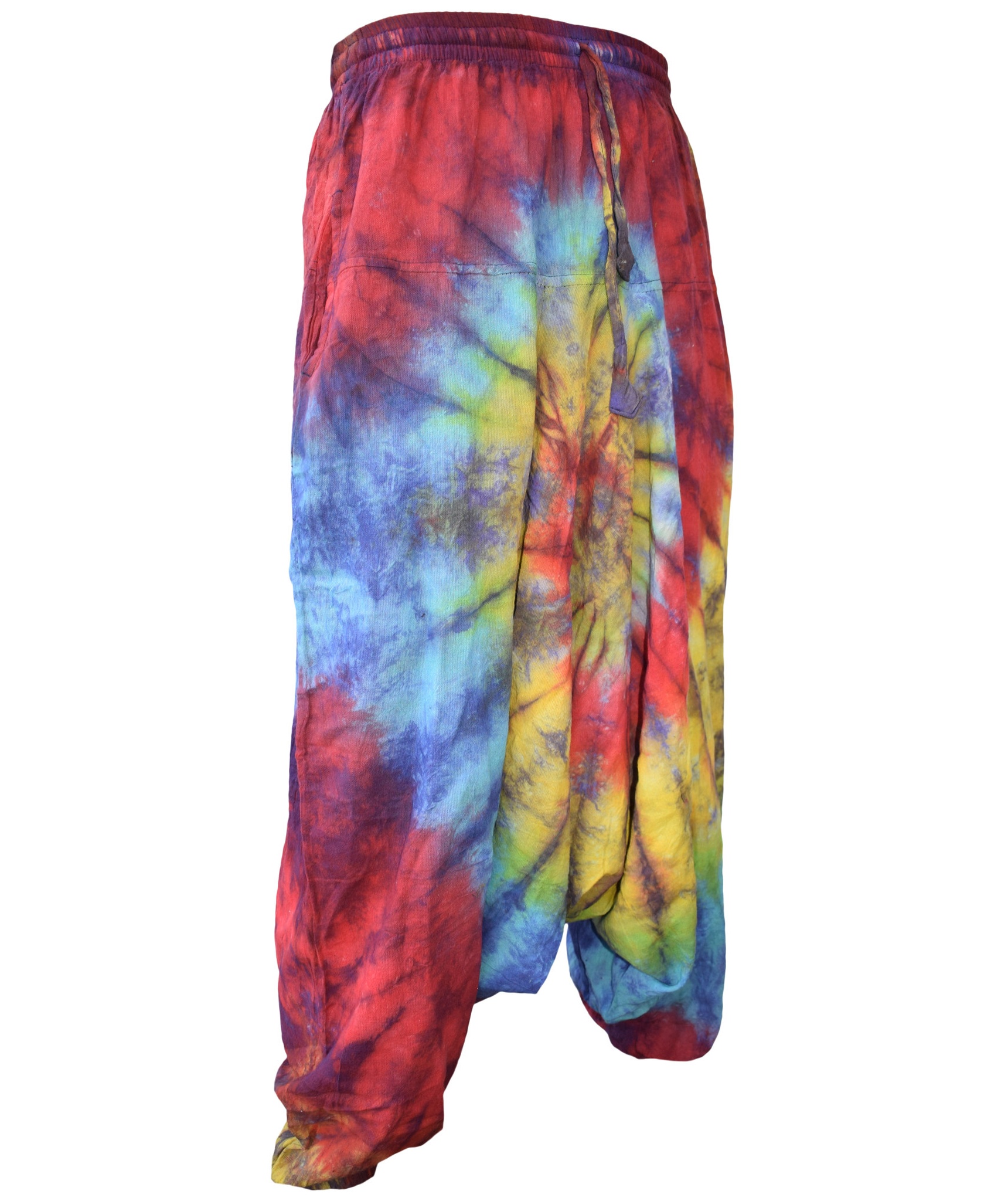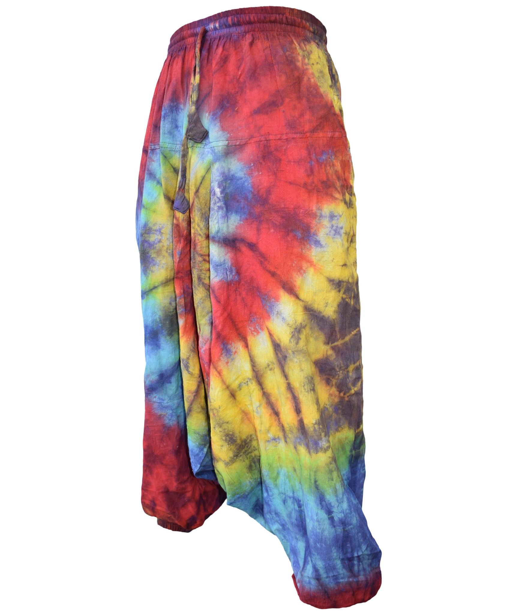 Although these trousers are categorized under men's clothing, they are equally popular among ladies as well. With only a single elastic waist unlike ladies which have 9-14 panel of elastic, these trousers are wide legged, low crotch and super comfy. The waist is elasticated so it fits people of different waist measurement. Made from 100% cotton.