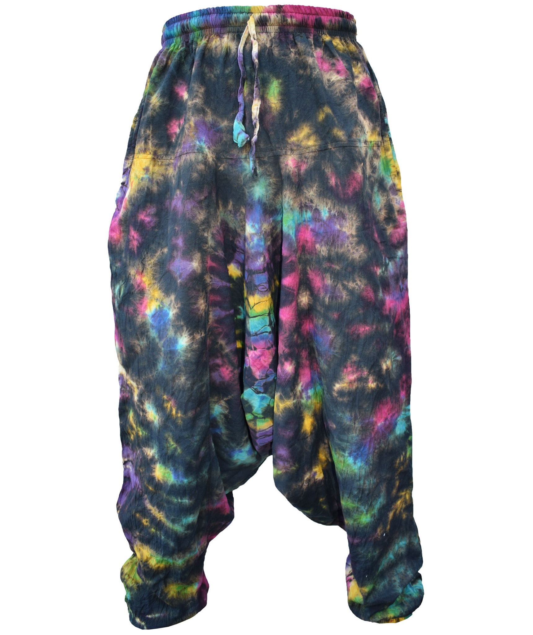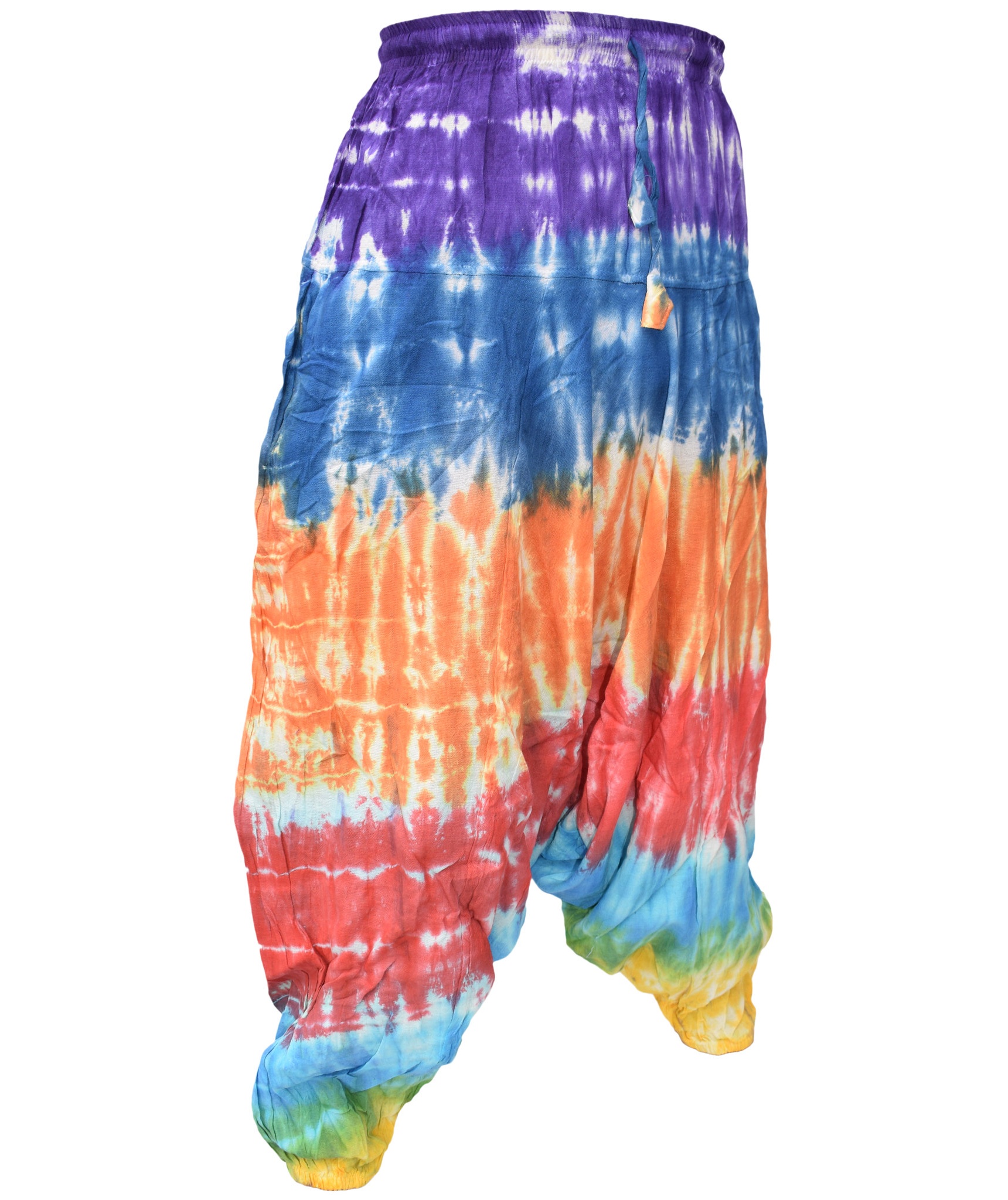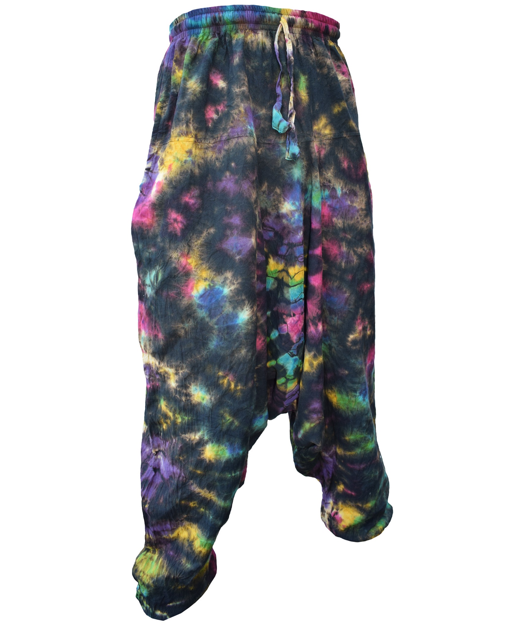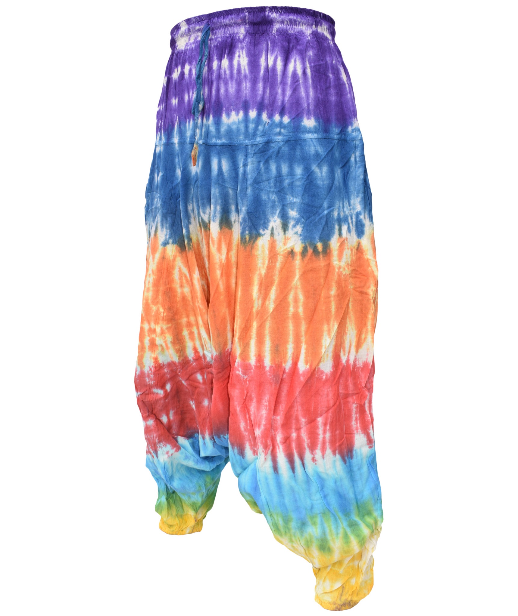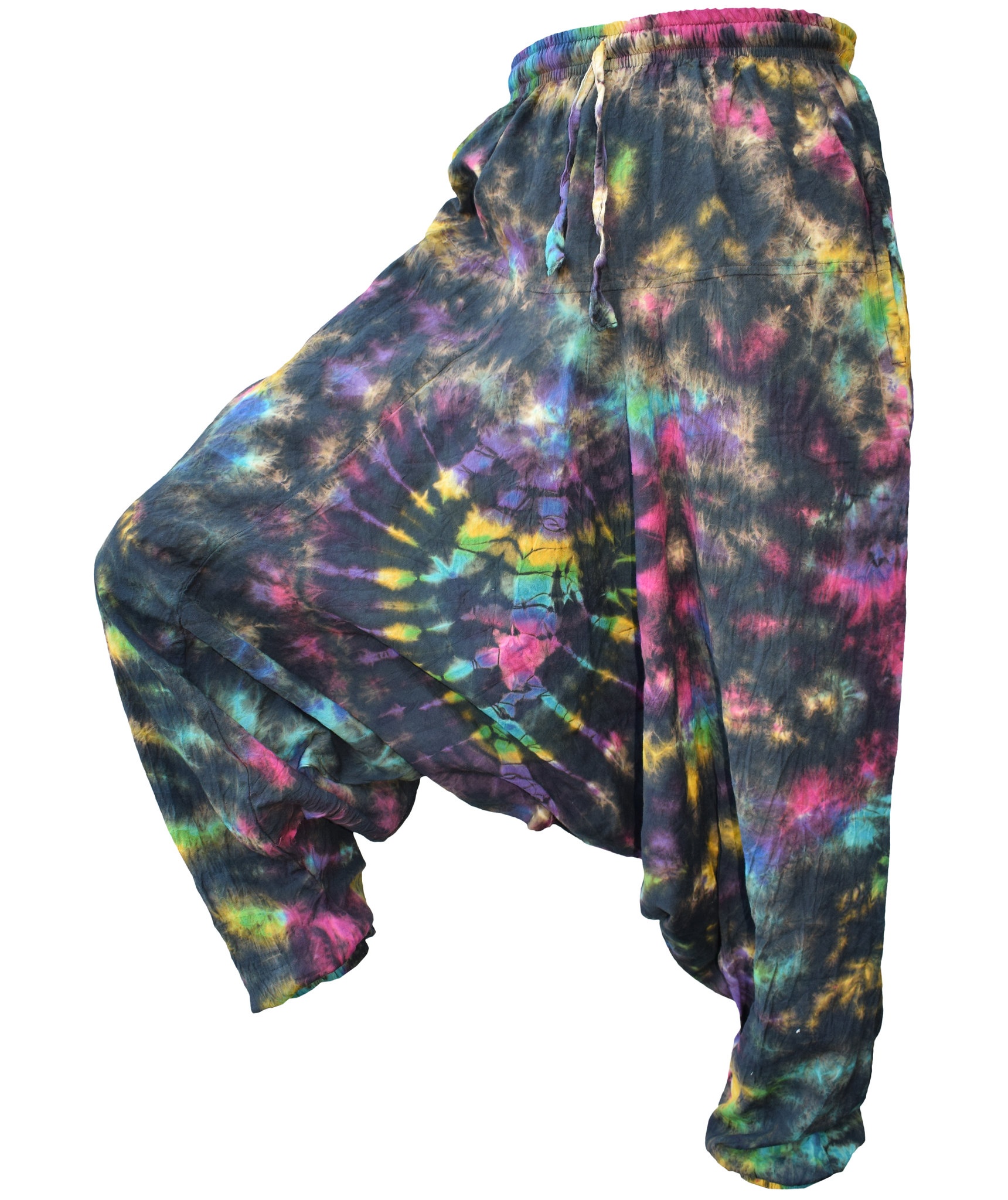 Although these trousers are categorized under men's clothing, they are equally popular among ladies as well. With only a single elastic waist unlike ladies which have 9-14 panel of elastic, these trousers are wide legged, low crotch and super comfy. The waist is elasticated so it fits people of different waist measurement. Made from 100% cotton.