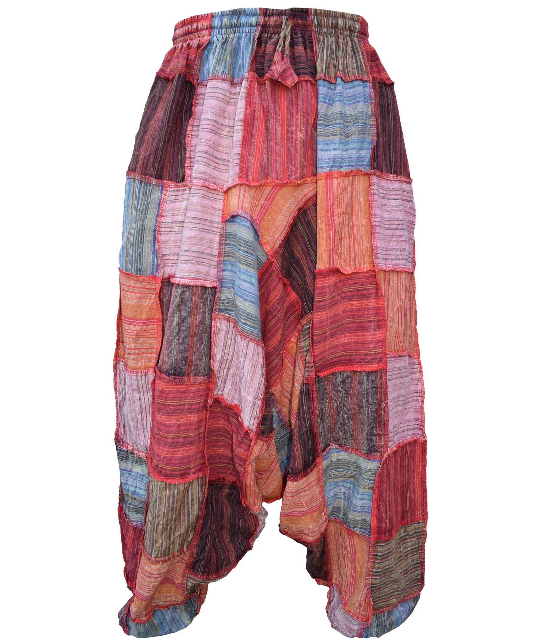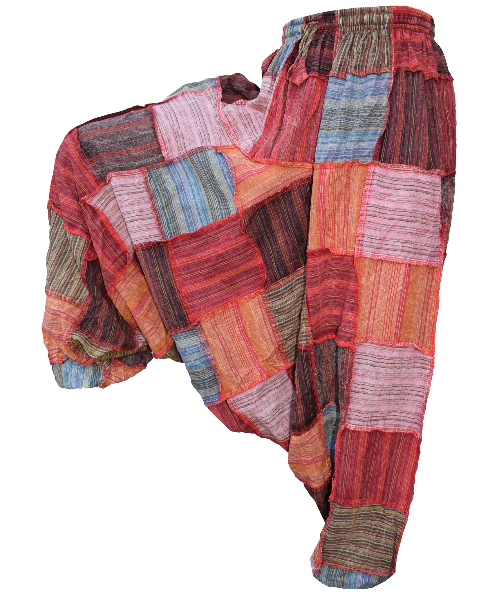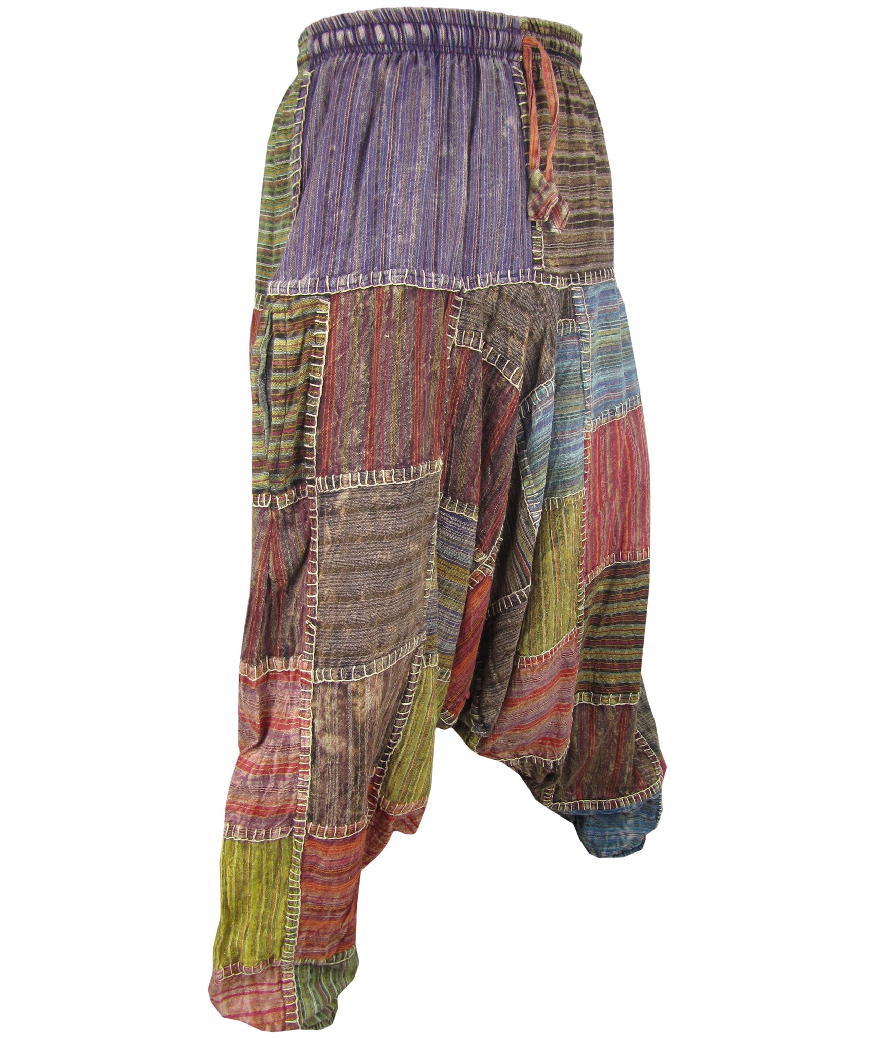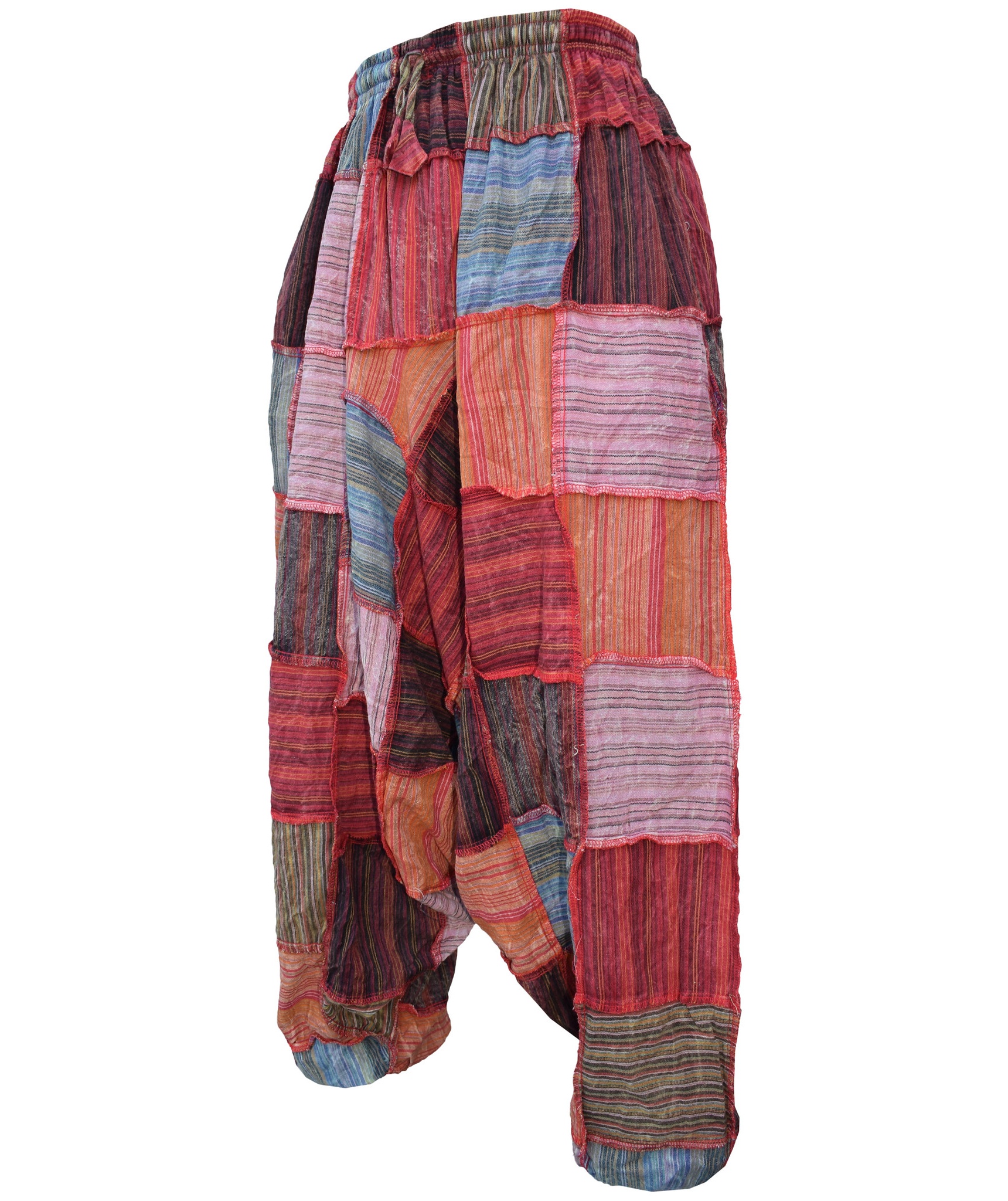 Although these trousers are categorized under men's clothing, they are equally popular among ladies as well. With only a single elastic waist unlike ladies which have 9-14 panel of elastic, these trousers are wide legged, low crotch and super comfy. The waist is elasticated so it fits people of different waist measurement.