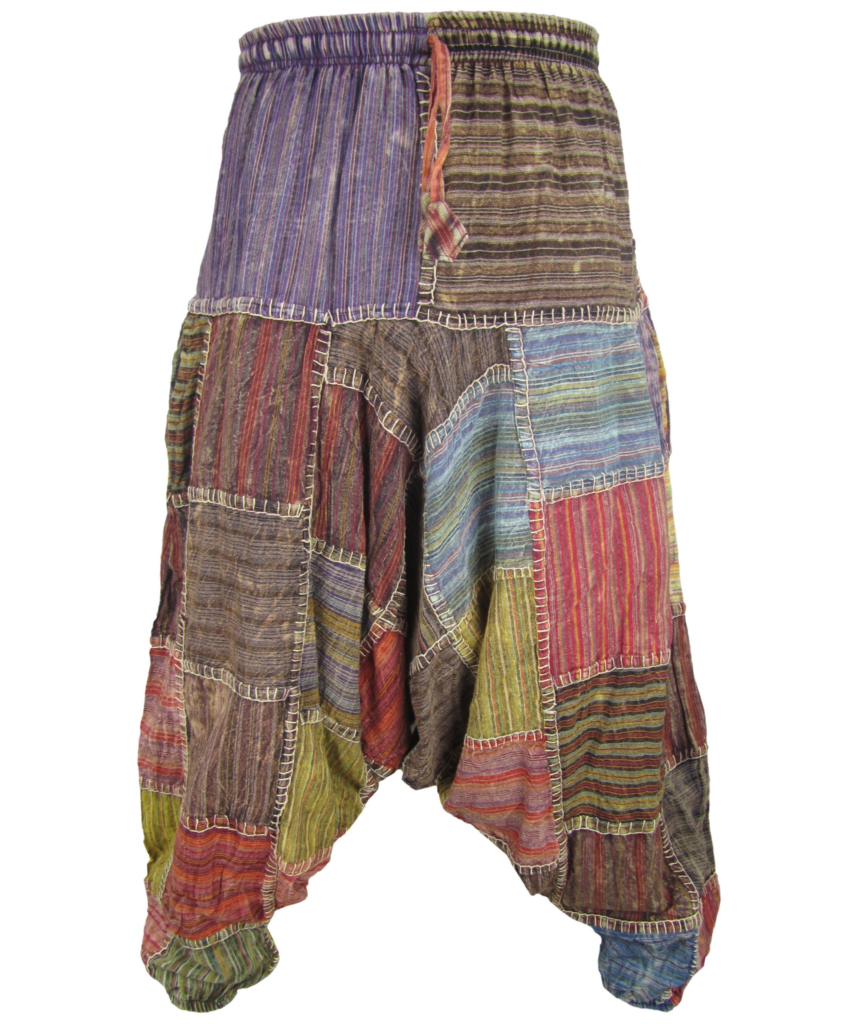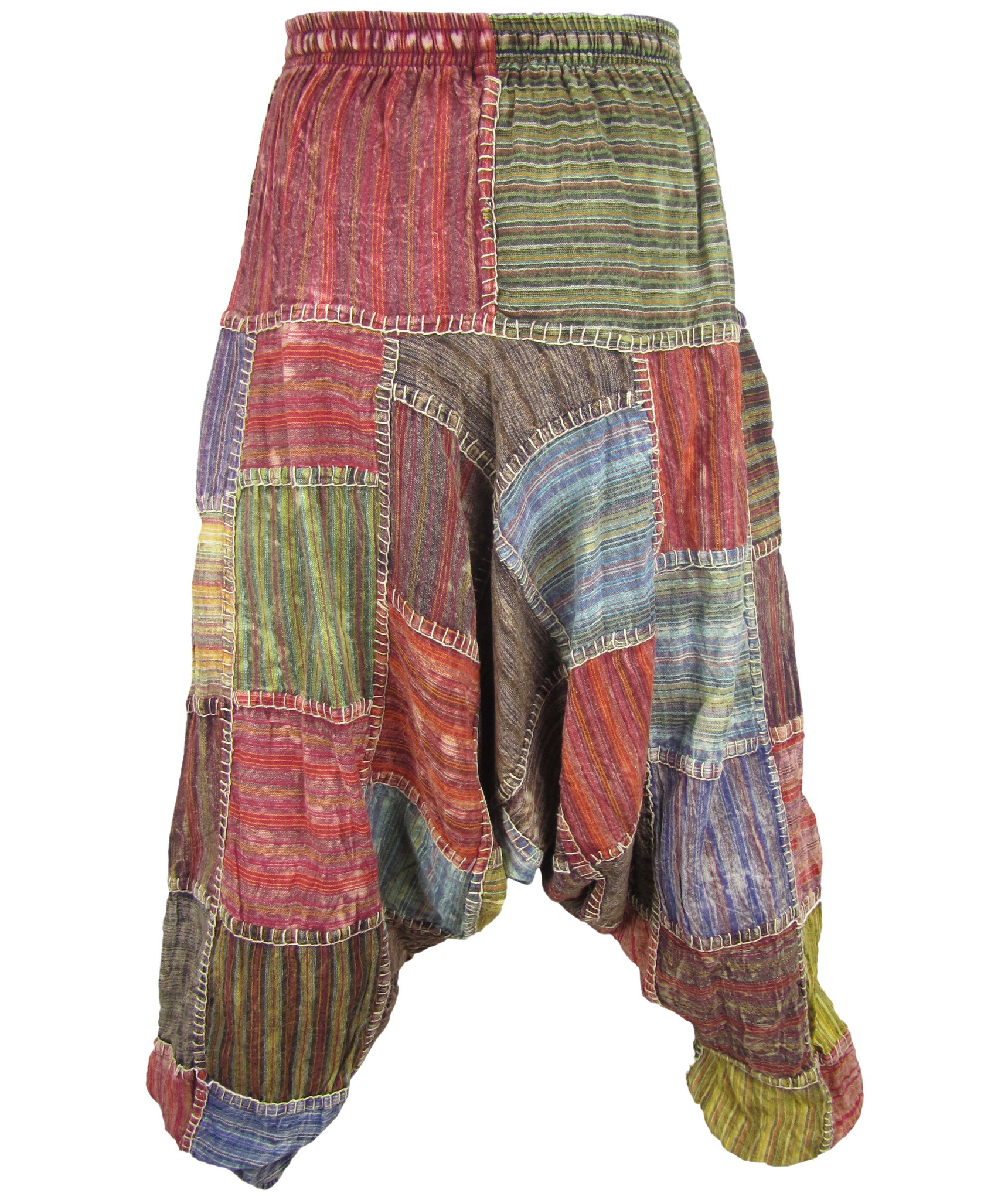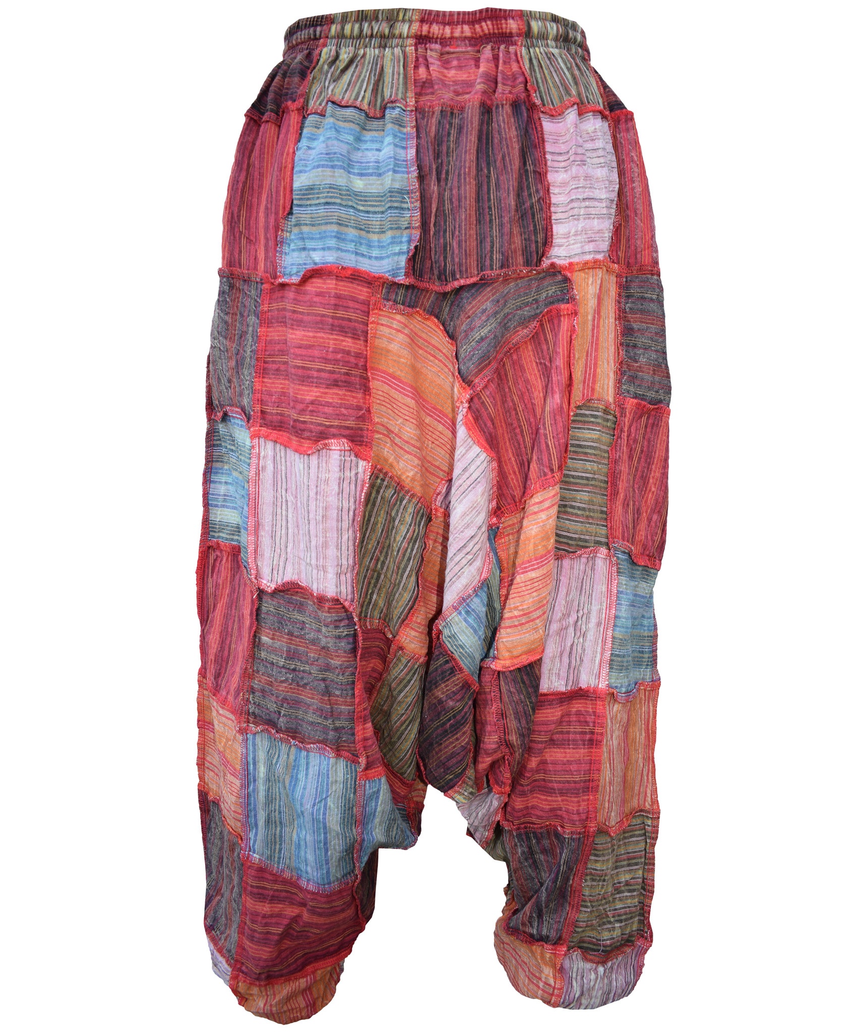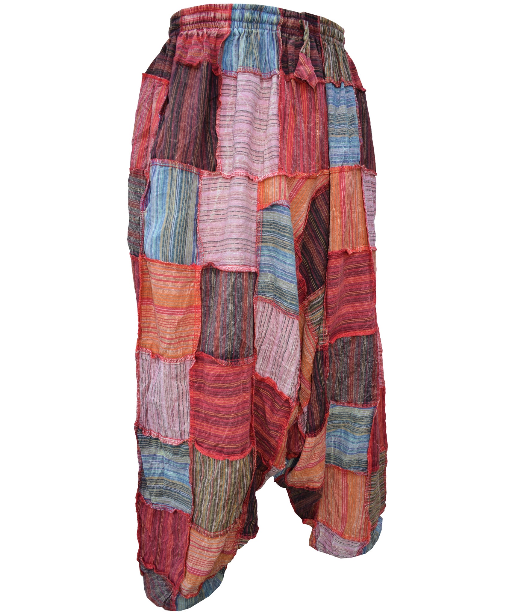 Although these trousers are categorized under men's clothing, they are equally popular among ladies as well. With only a single elastic waist unlike ladies which have 9-14 panel of elastic, these trousers are wide legged, low crotch and super comfy. The waist is elasticated so it fits people of different waist measurement.