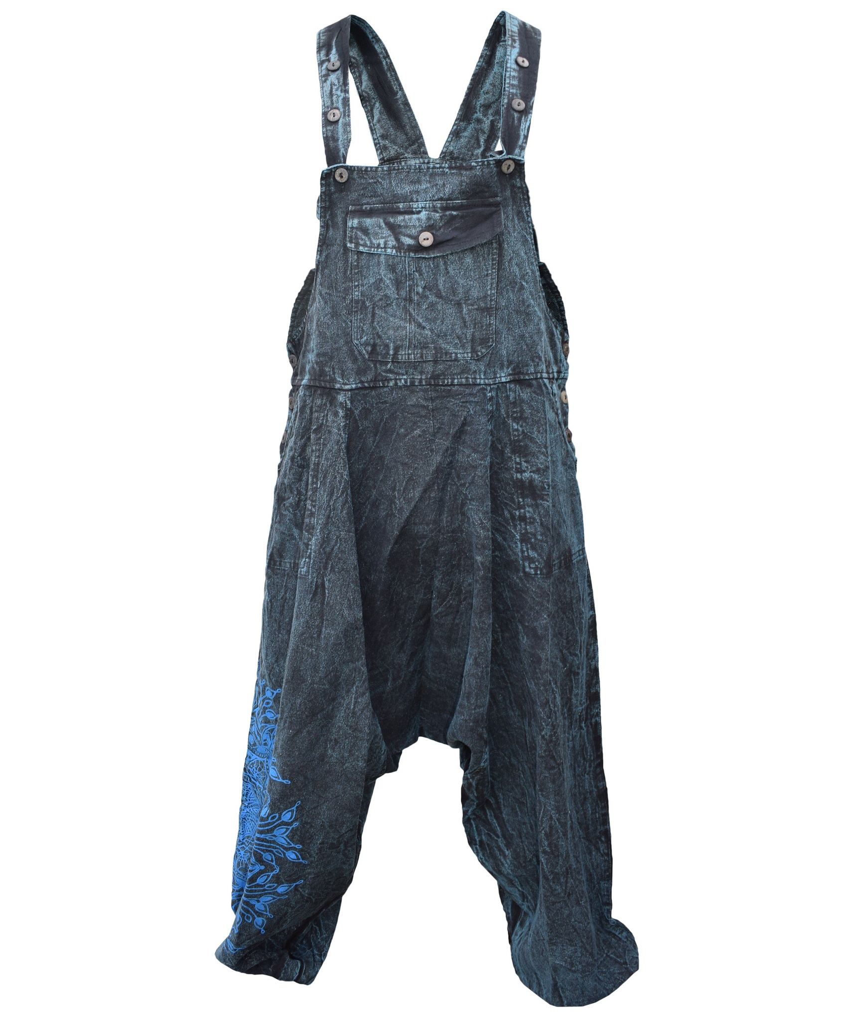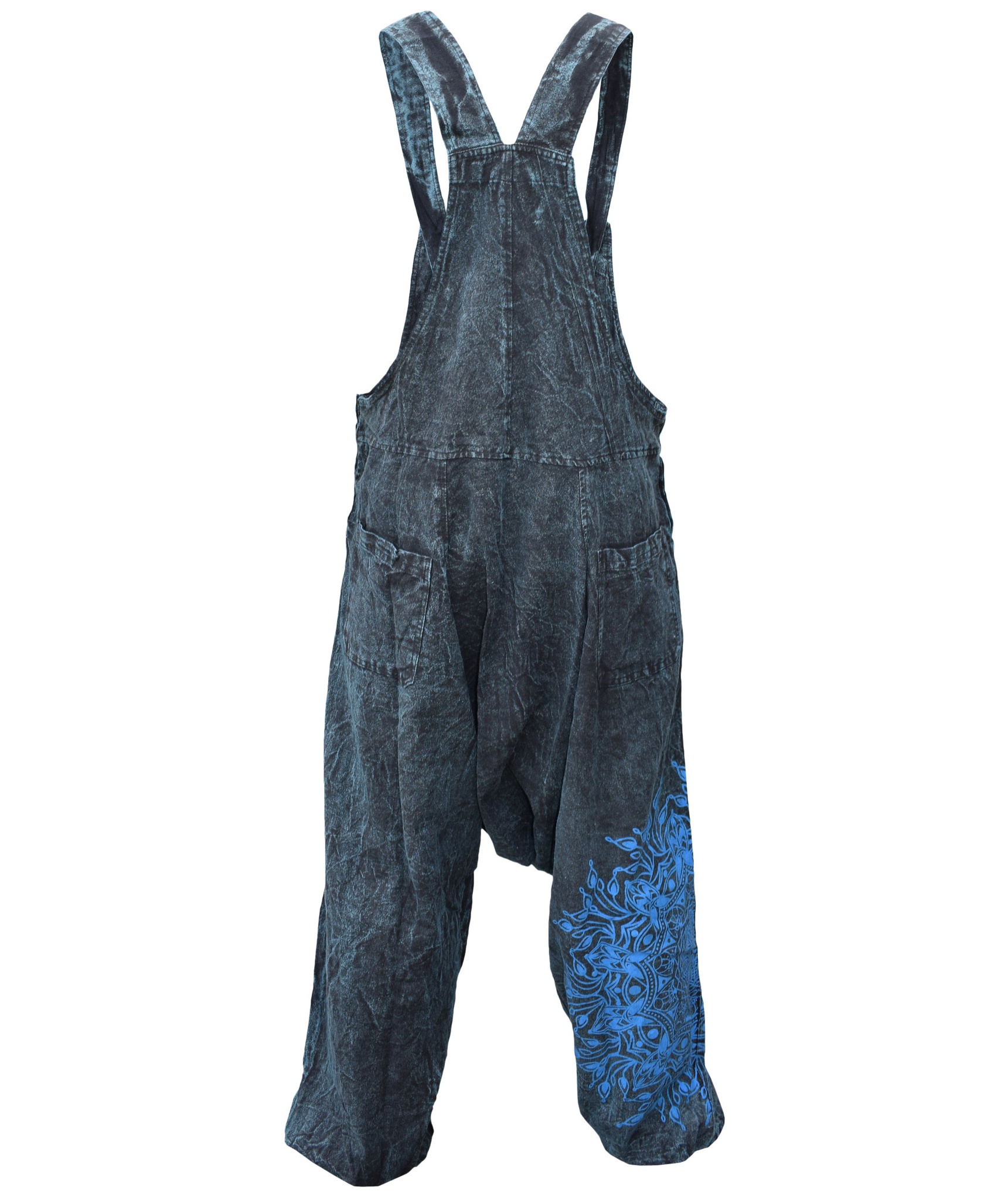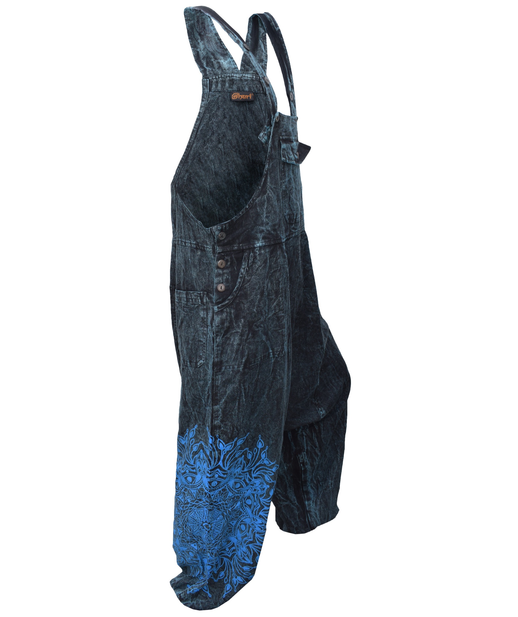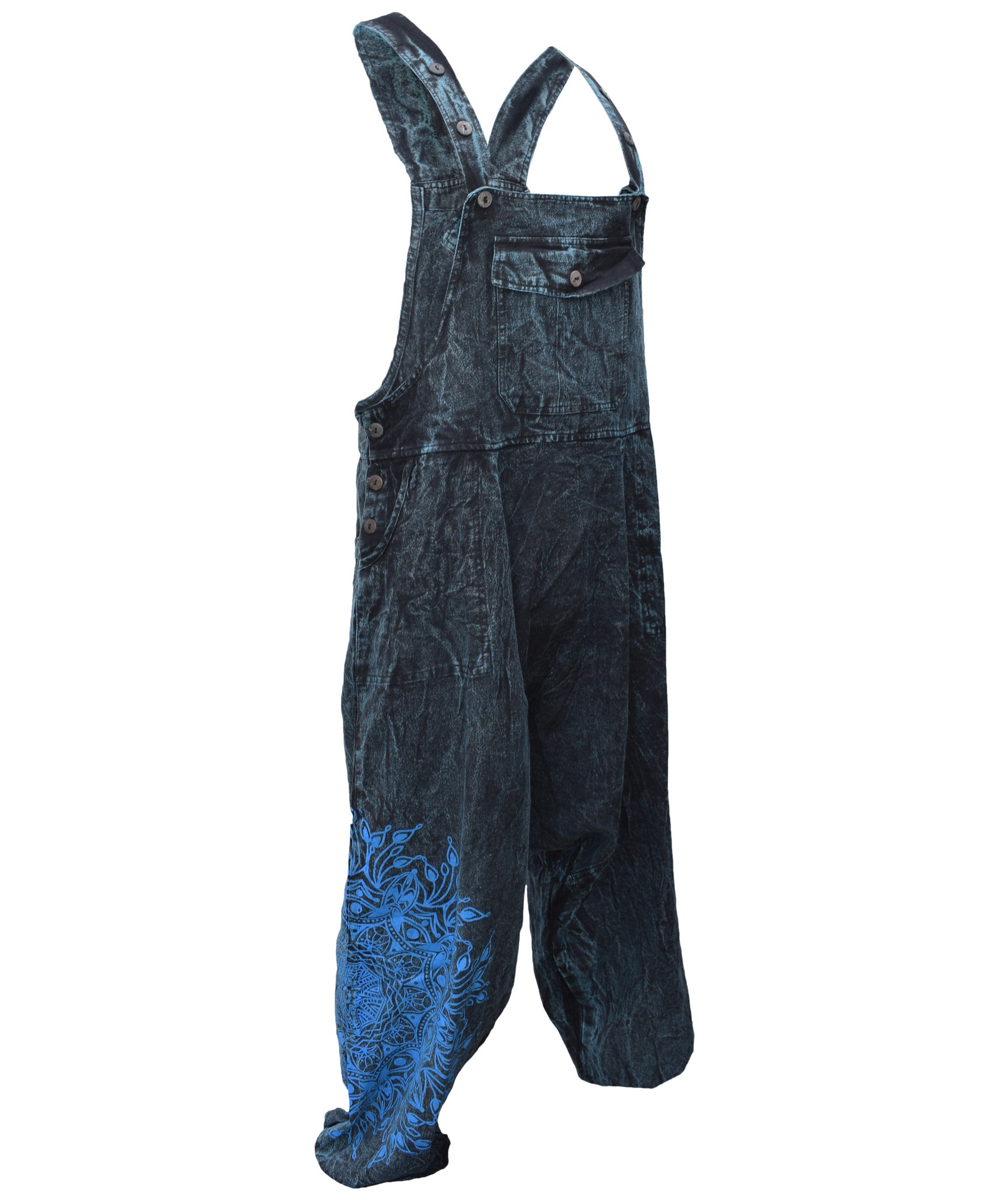 Mandala printed on one leg and stone washed to give the ultimate boho look. Adjustable straps and side hip buttons for the perfect comfy fit.