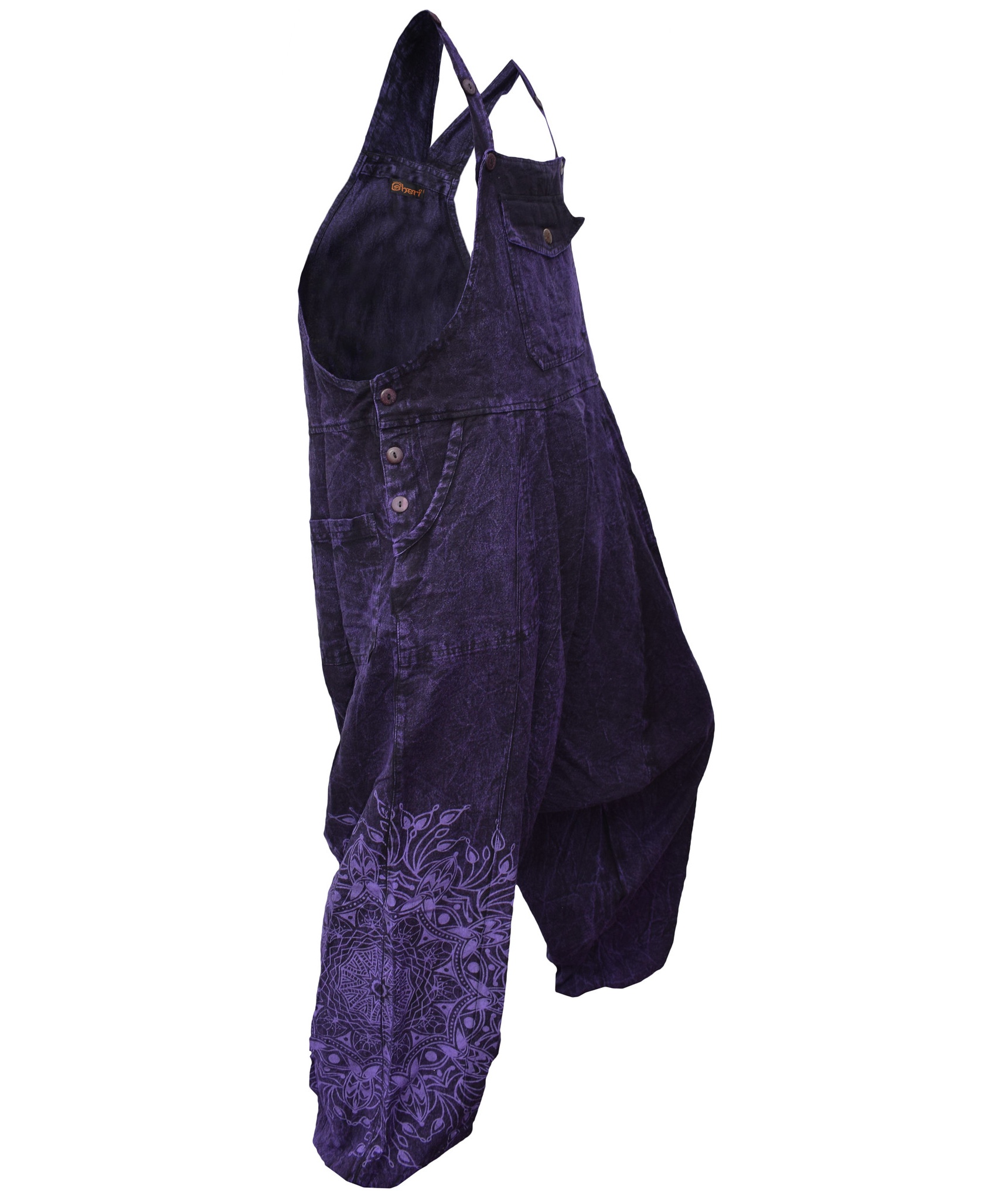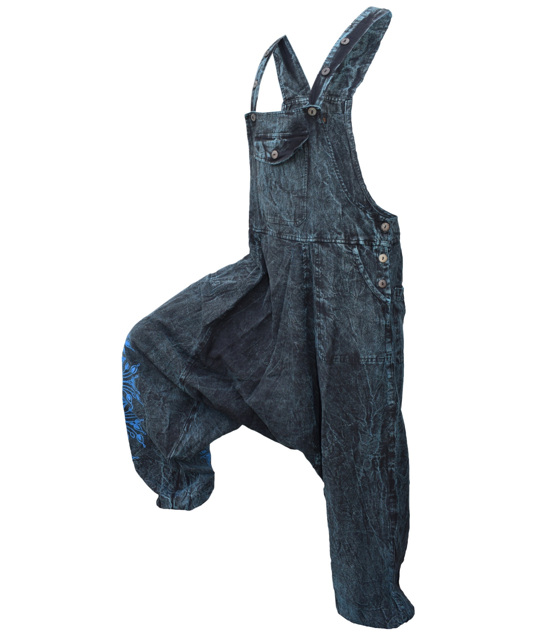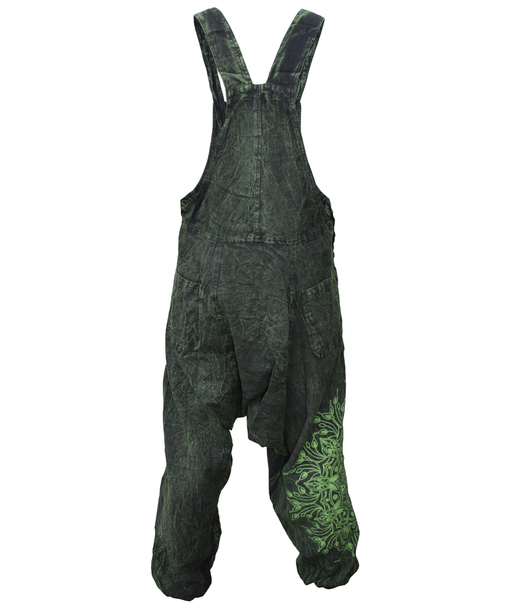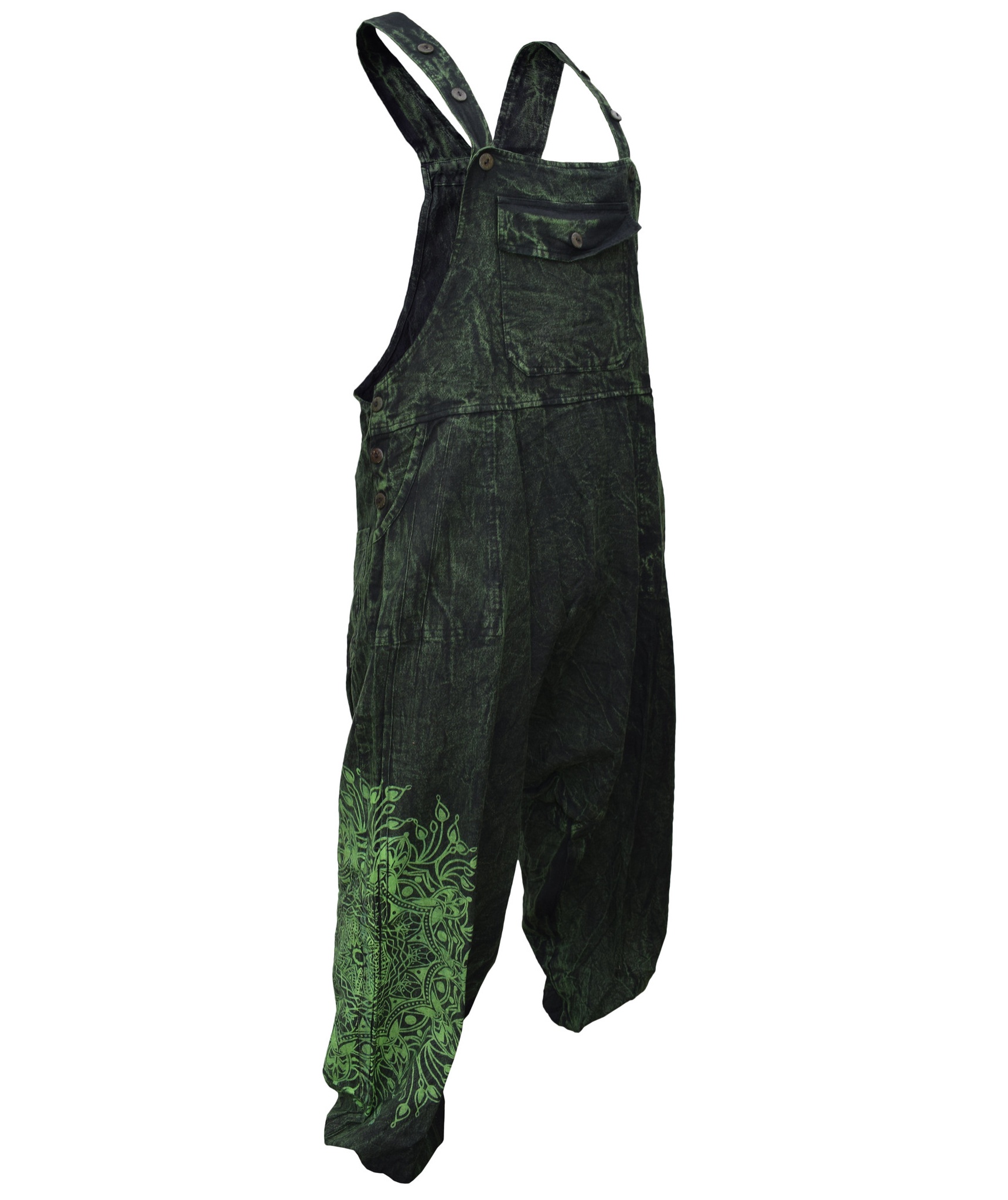 Mandala printed on one leg and stone washed to give the ultimate boho look. Adjustable straps and side hip buttons for the perfect comfy fit.