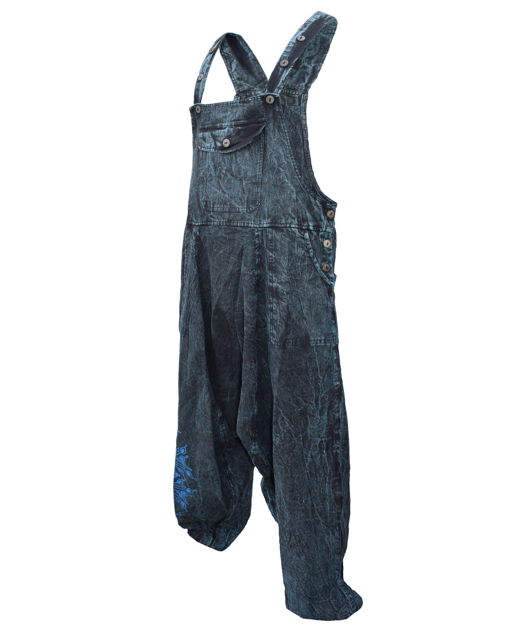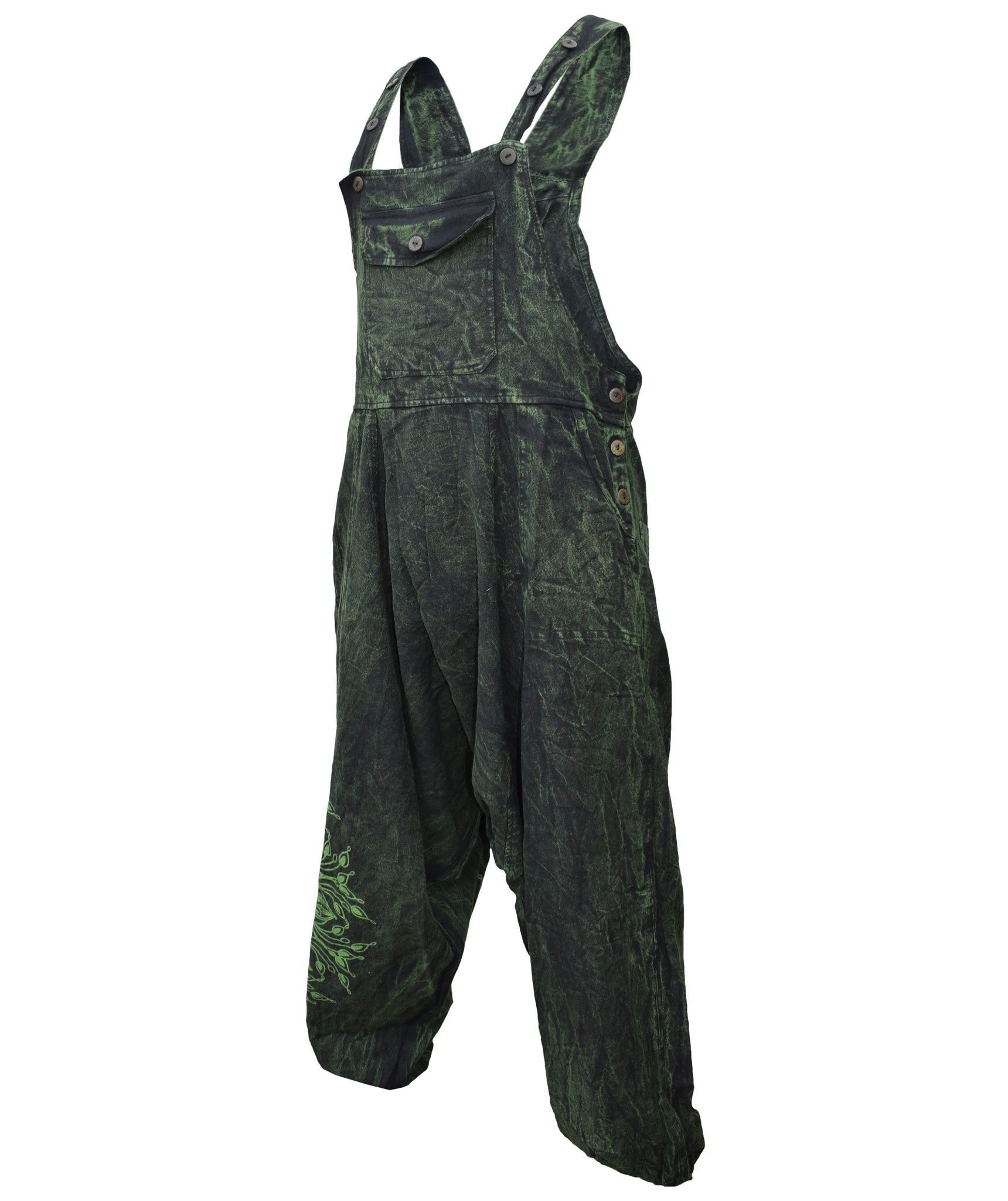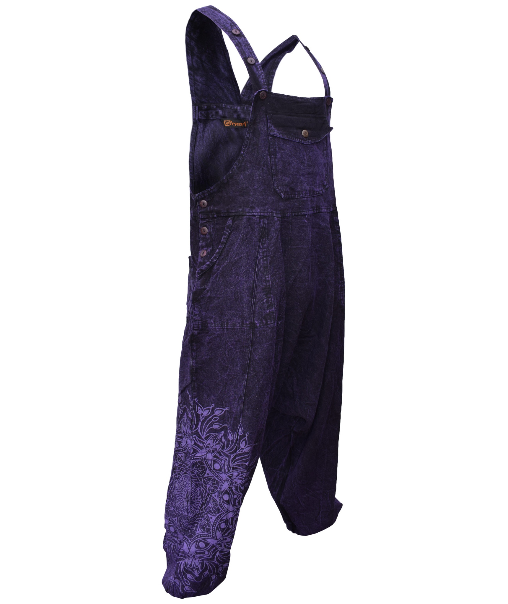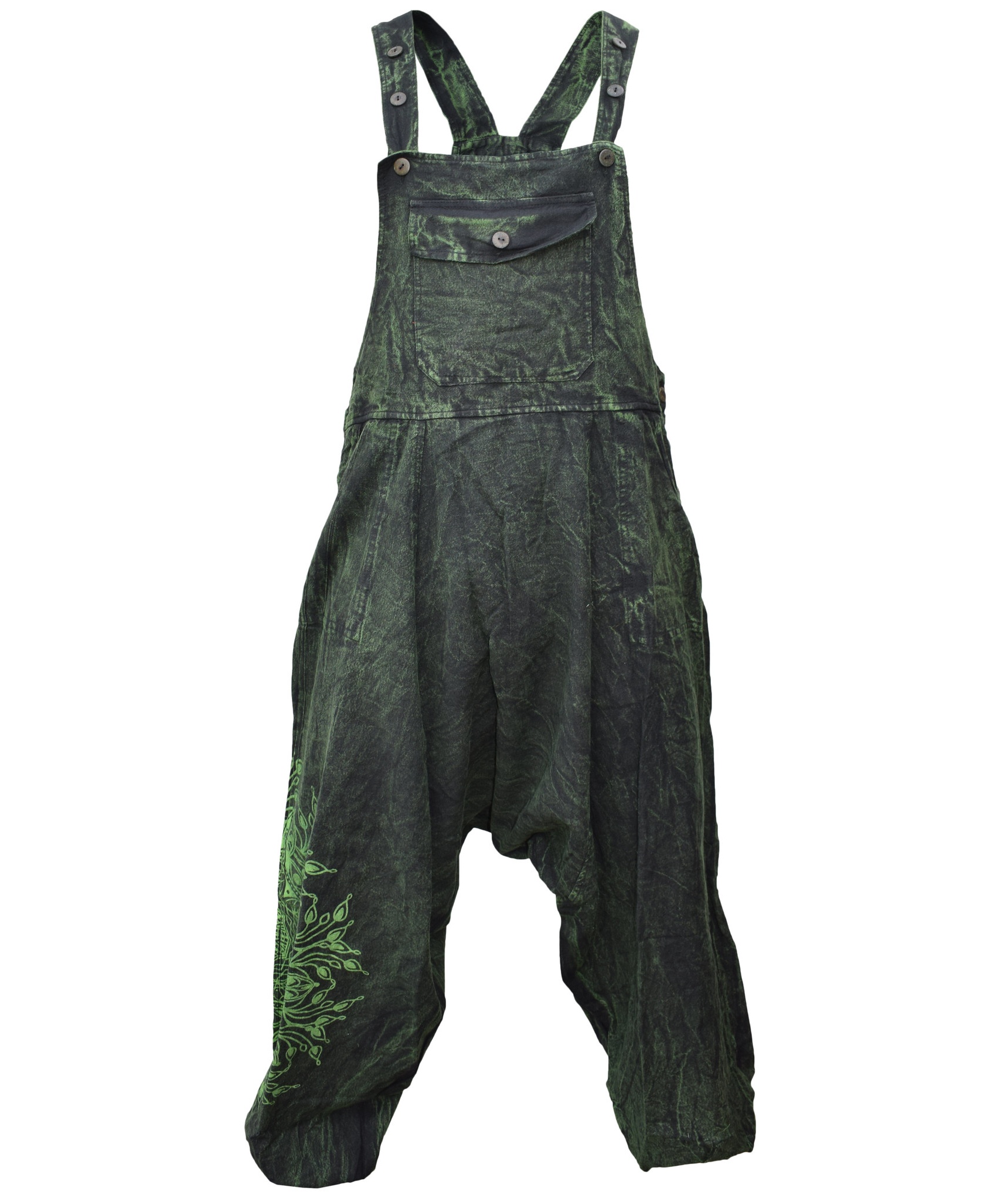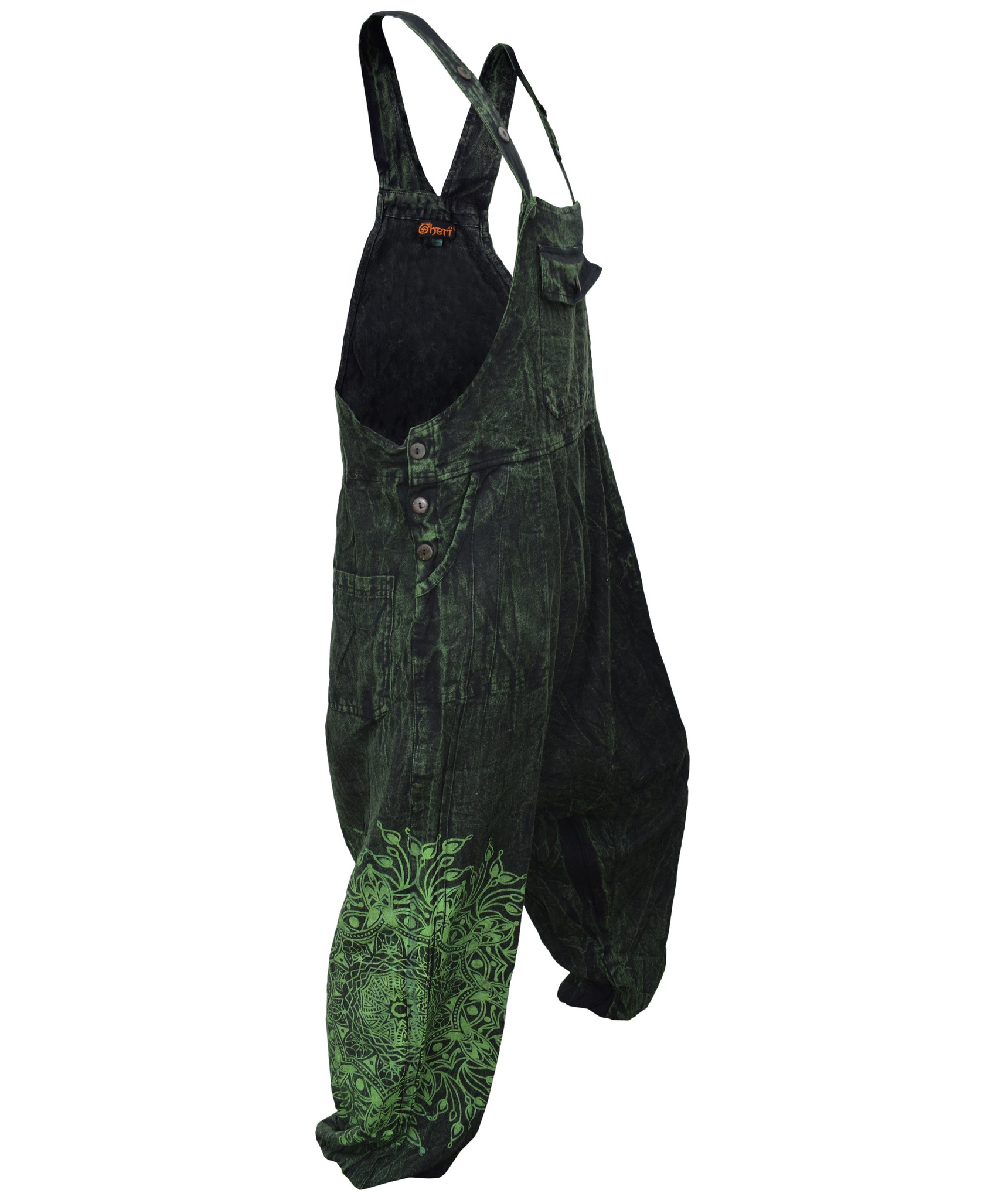 Mandala printed on one leg and stone washed to give the ultimate boho look. Adjustable straps and side hip buttons for the perfect comfy fit.