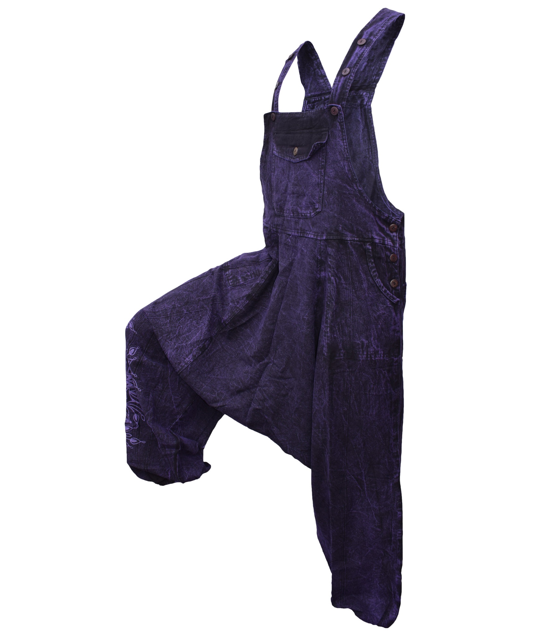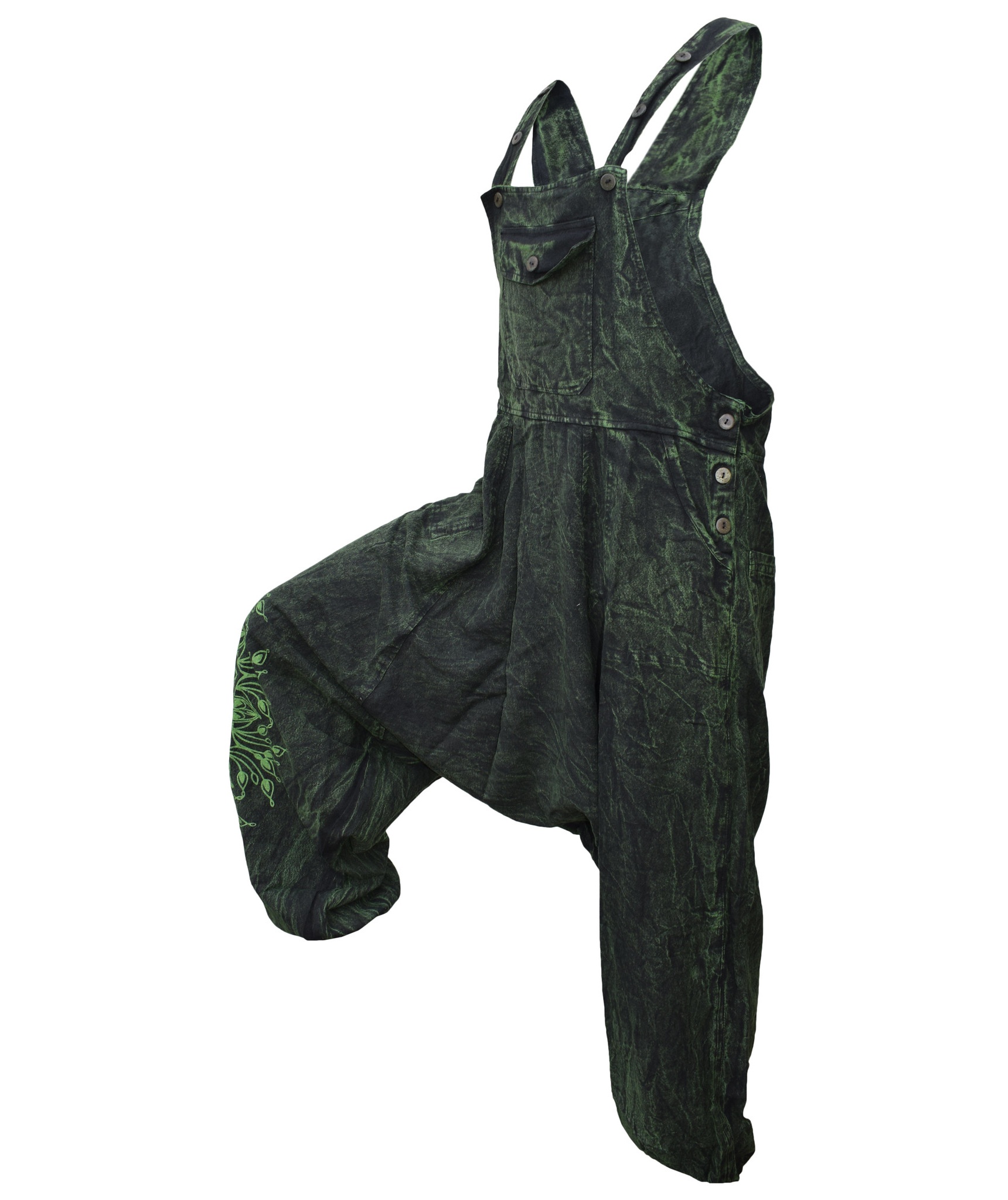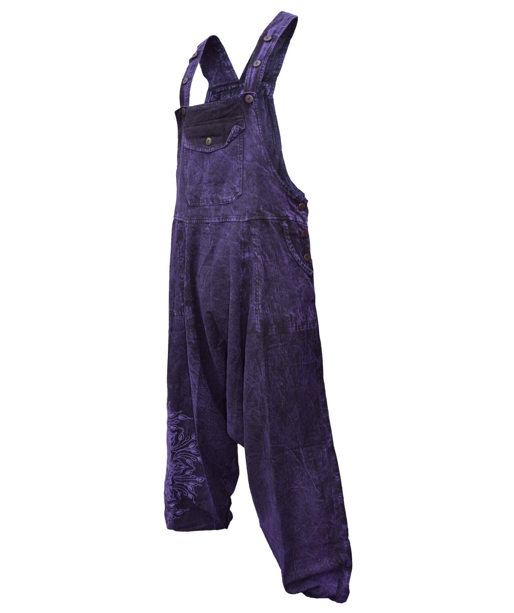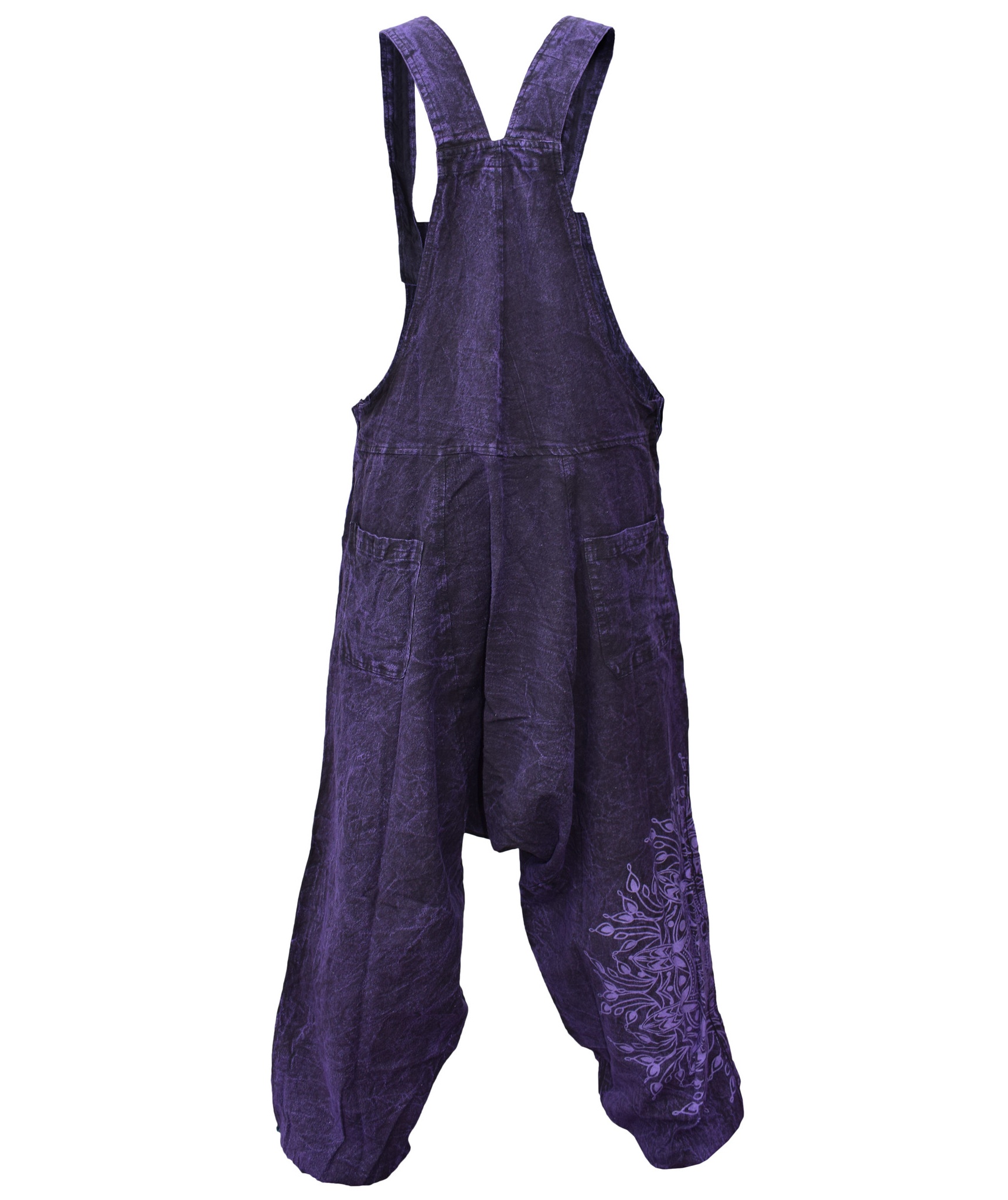 Mandala printed on one leg and stone washed to give the ultimate boho look. Adjustable straps and side hip buttons for the perfect comfy fit.