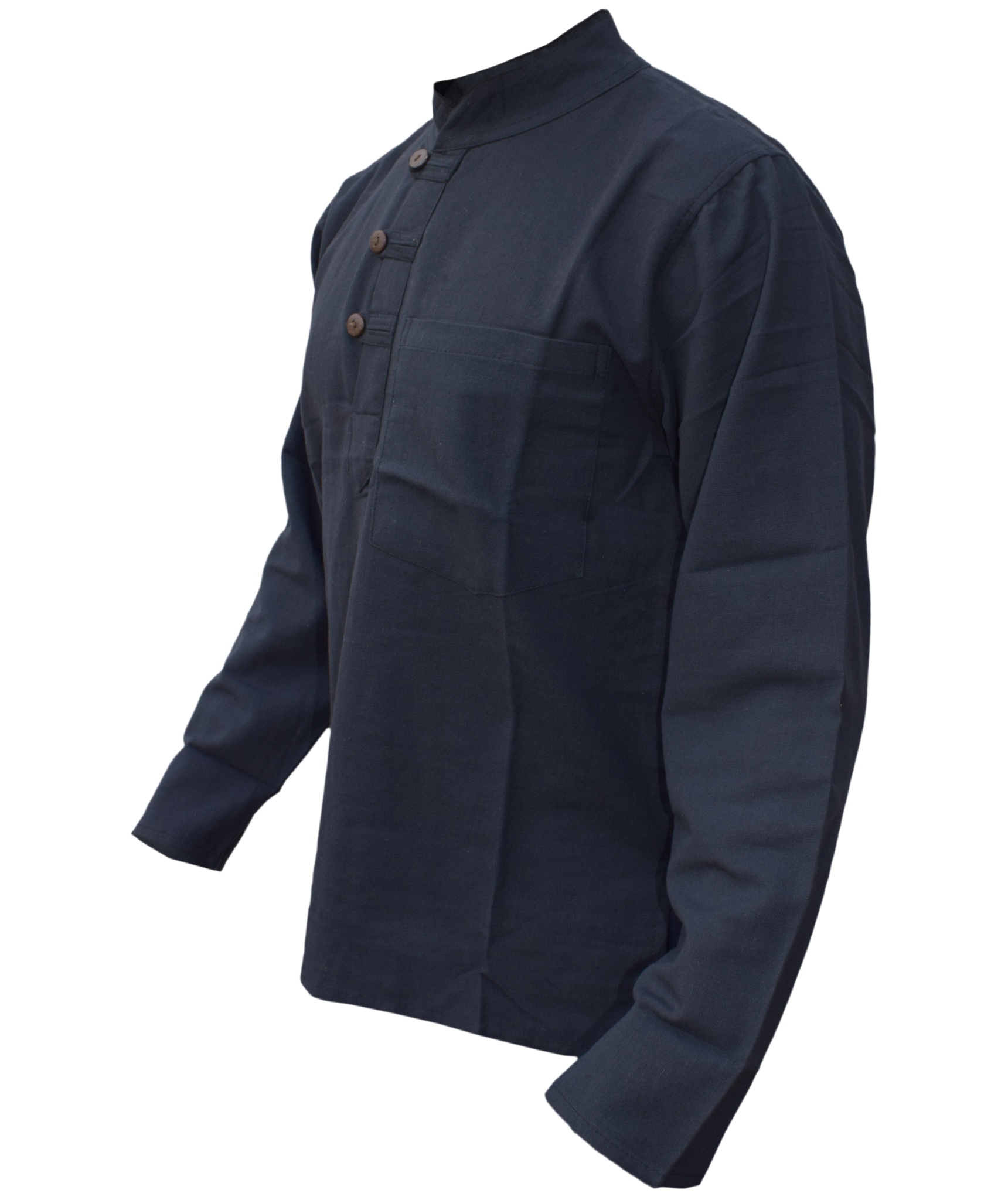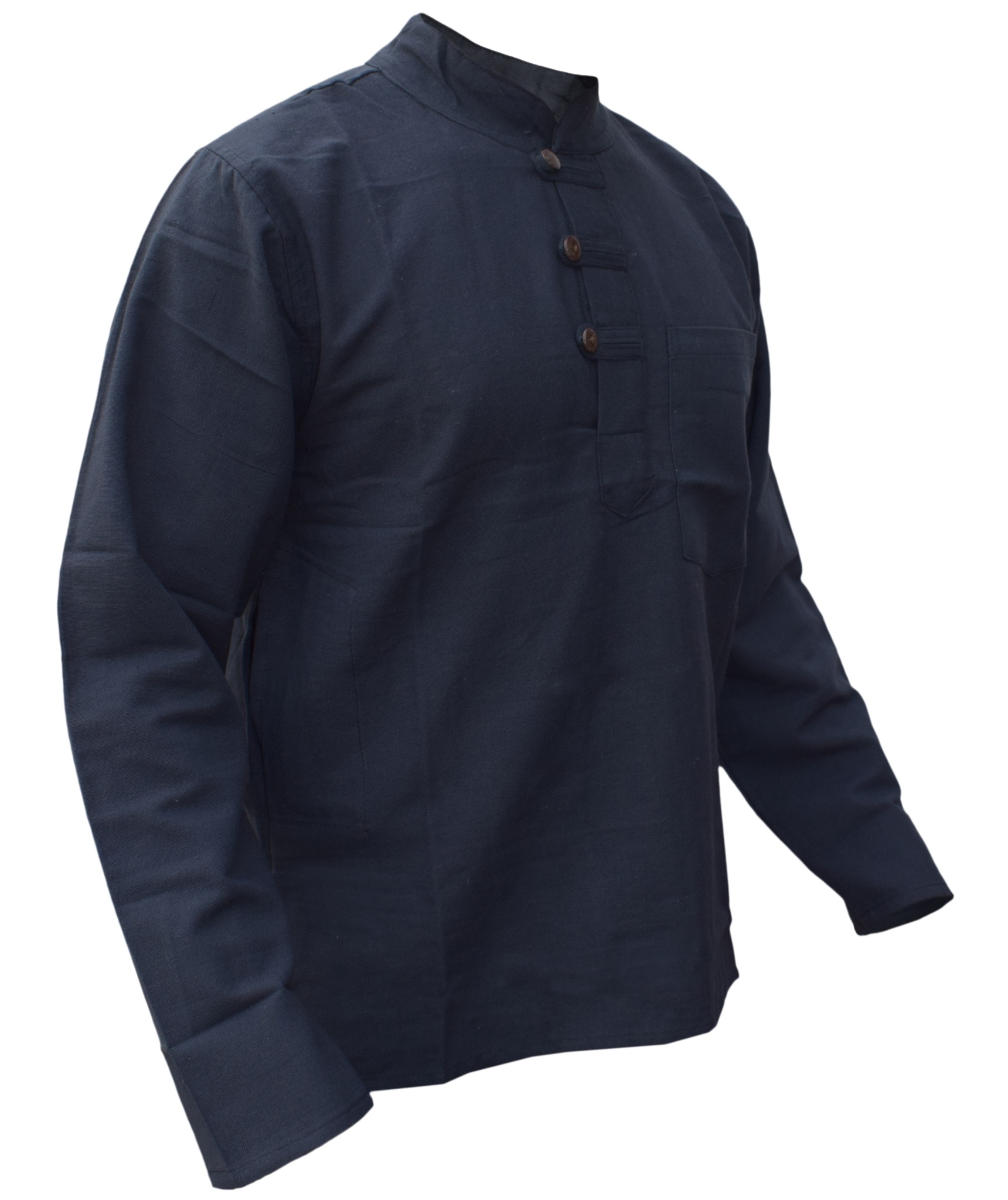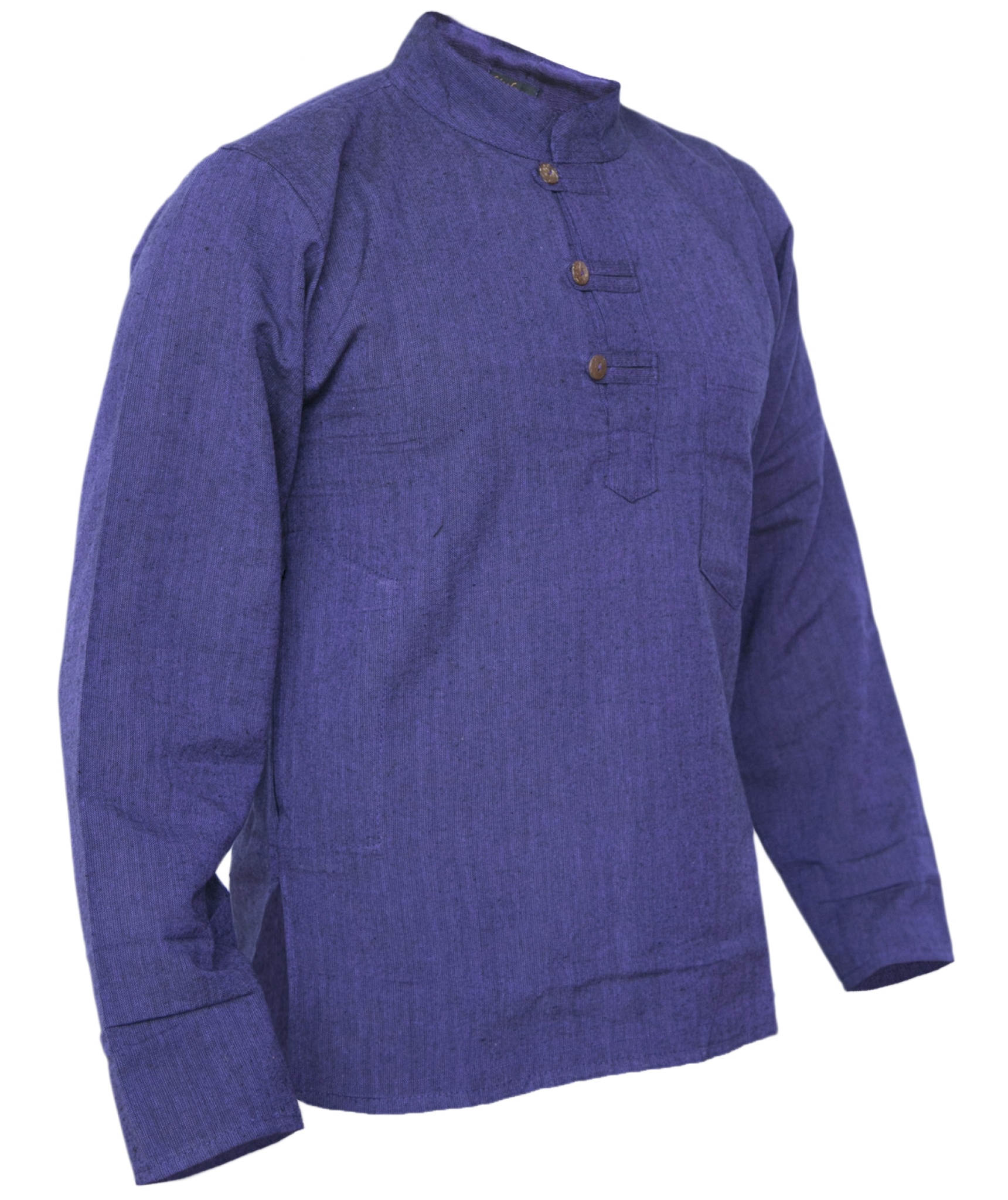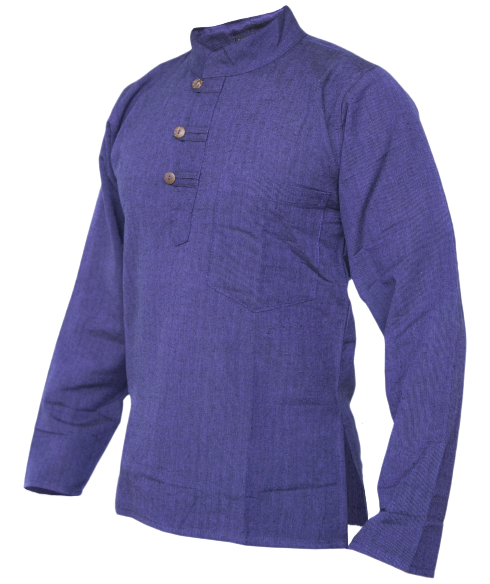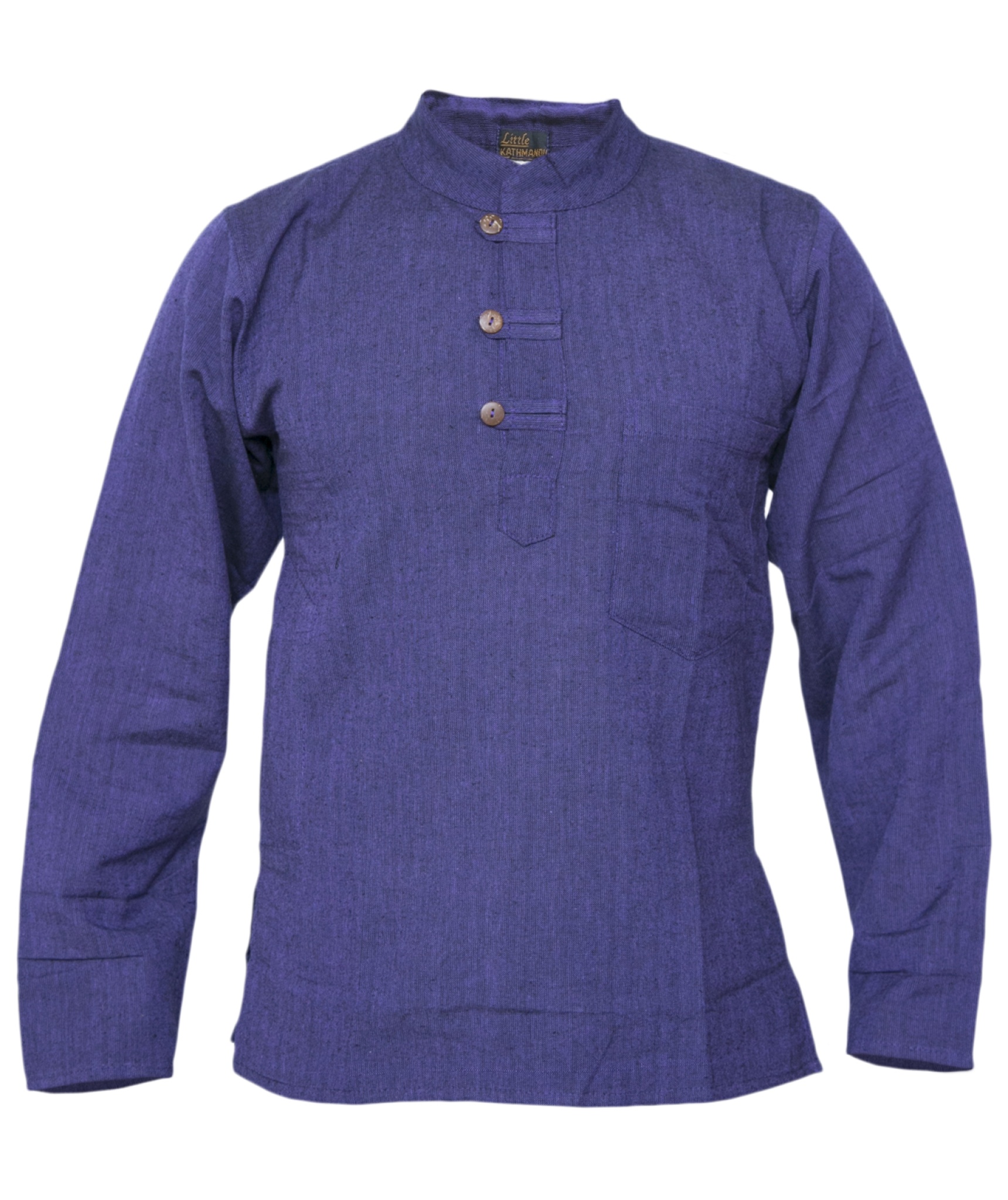 These grandad shirts are awesome choice for the hot climate. They are designed for casual and lounge wear. Three button fastening at the neck with grandad collar. They are full sleeved but suitable for summer season. Each one has slits on both sides as well a side and a chest pocket.