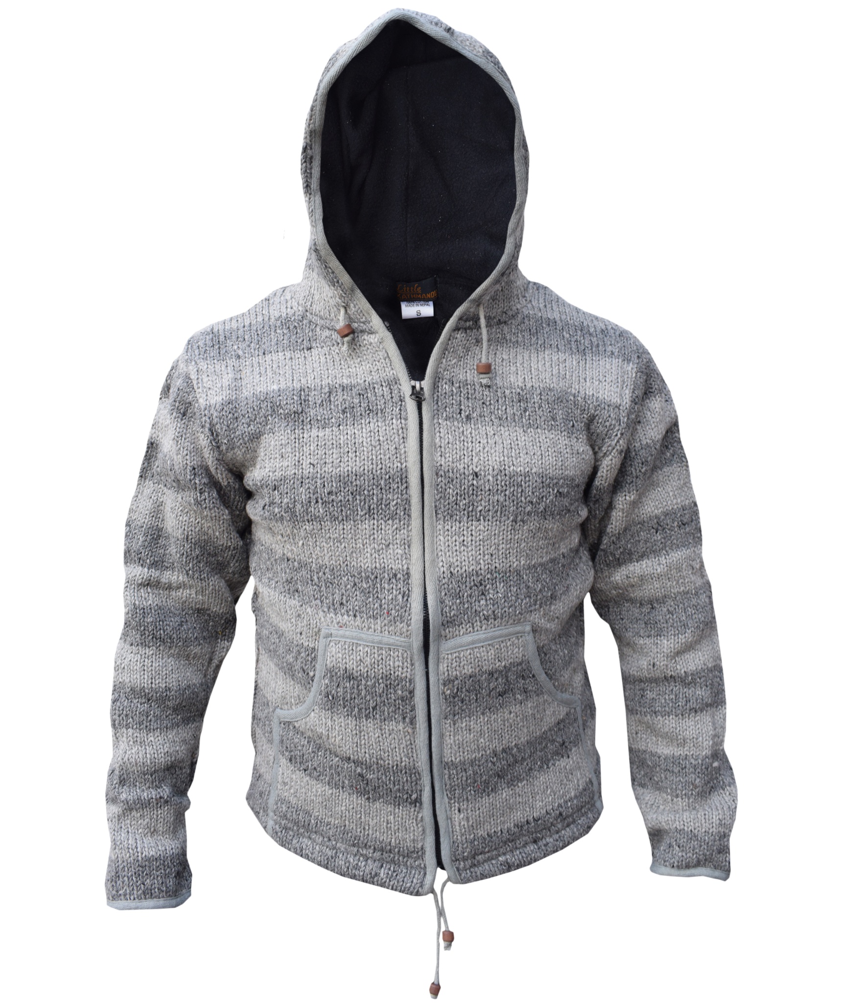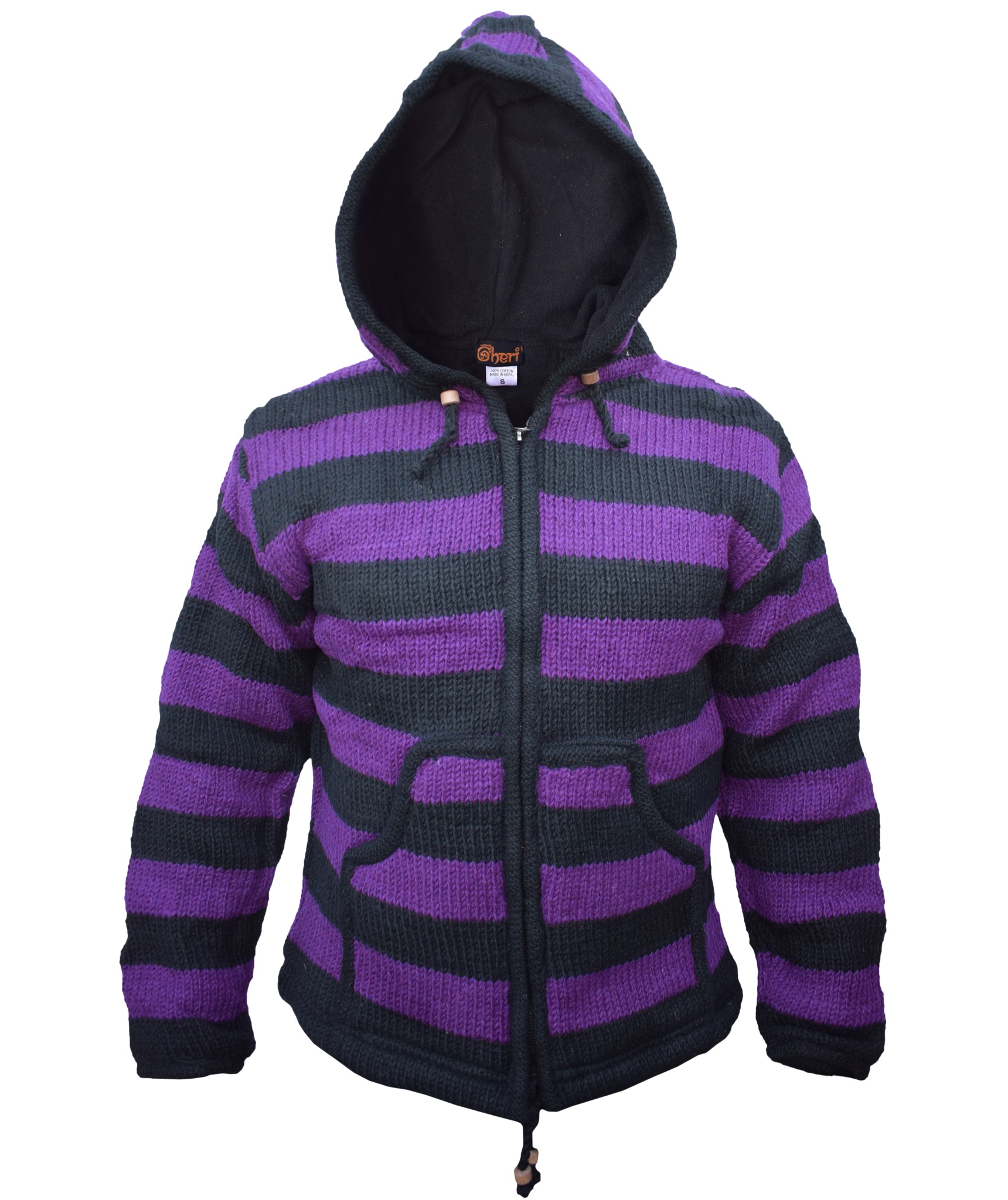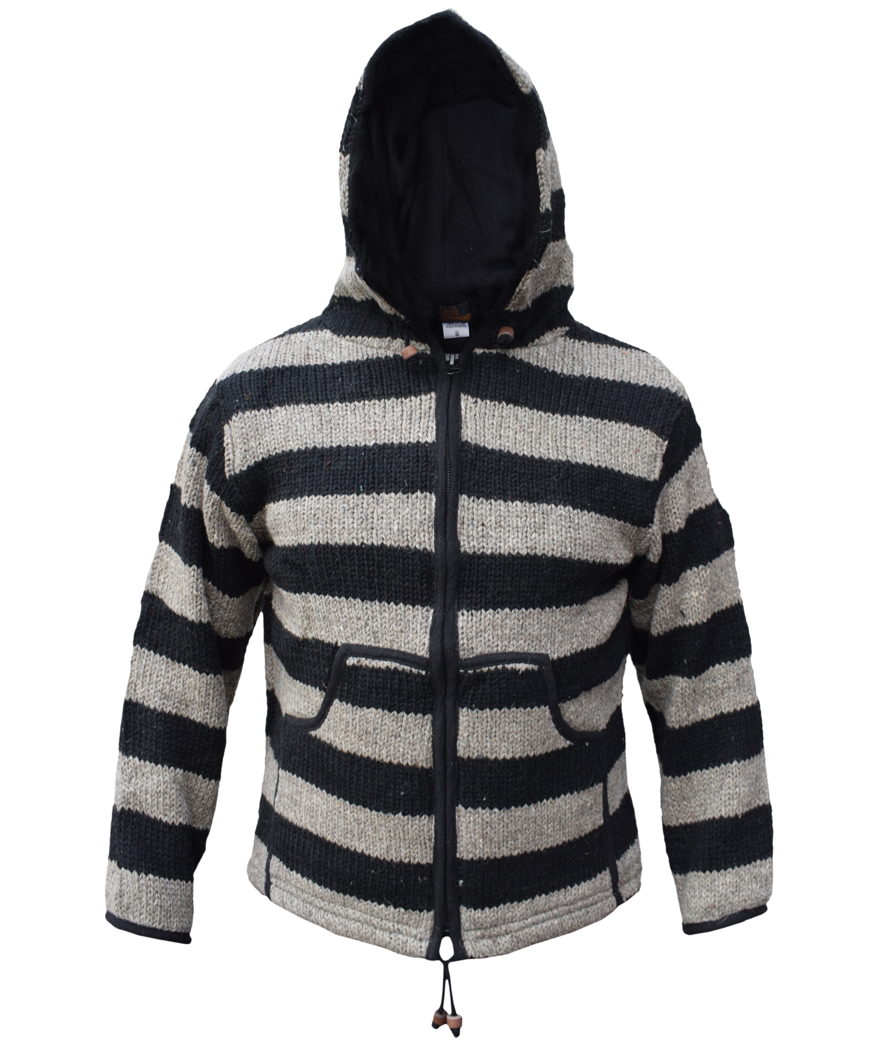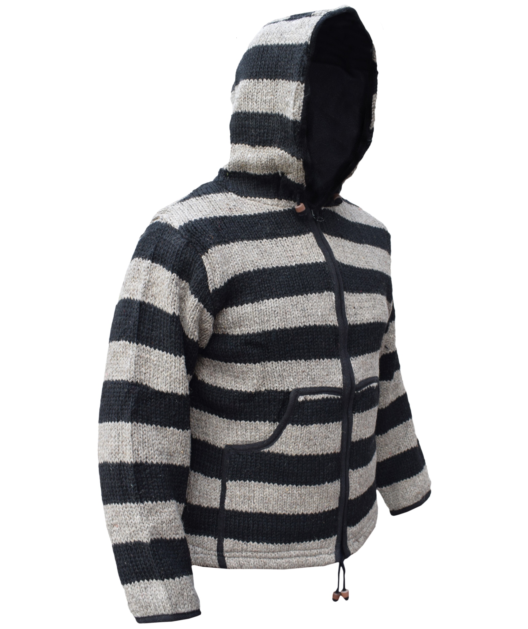 These stripy jackets are awesome choice for the chilling climate. They are designed for casual wear. They have full front zip fastening with a hoodie. The hood and hem have a drawstring with wooden beads. They are full sleeved and have two deep front pockets and an inner pocket at a side.