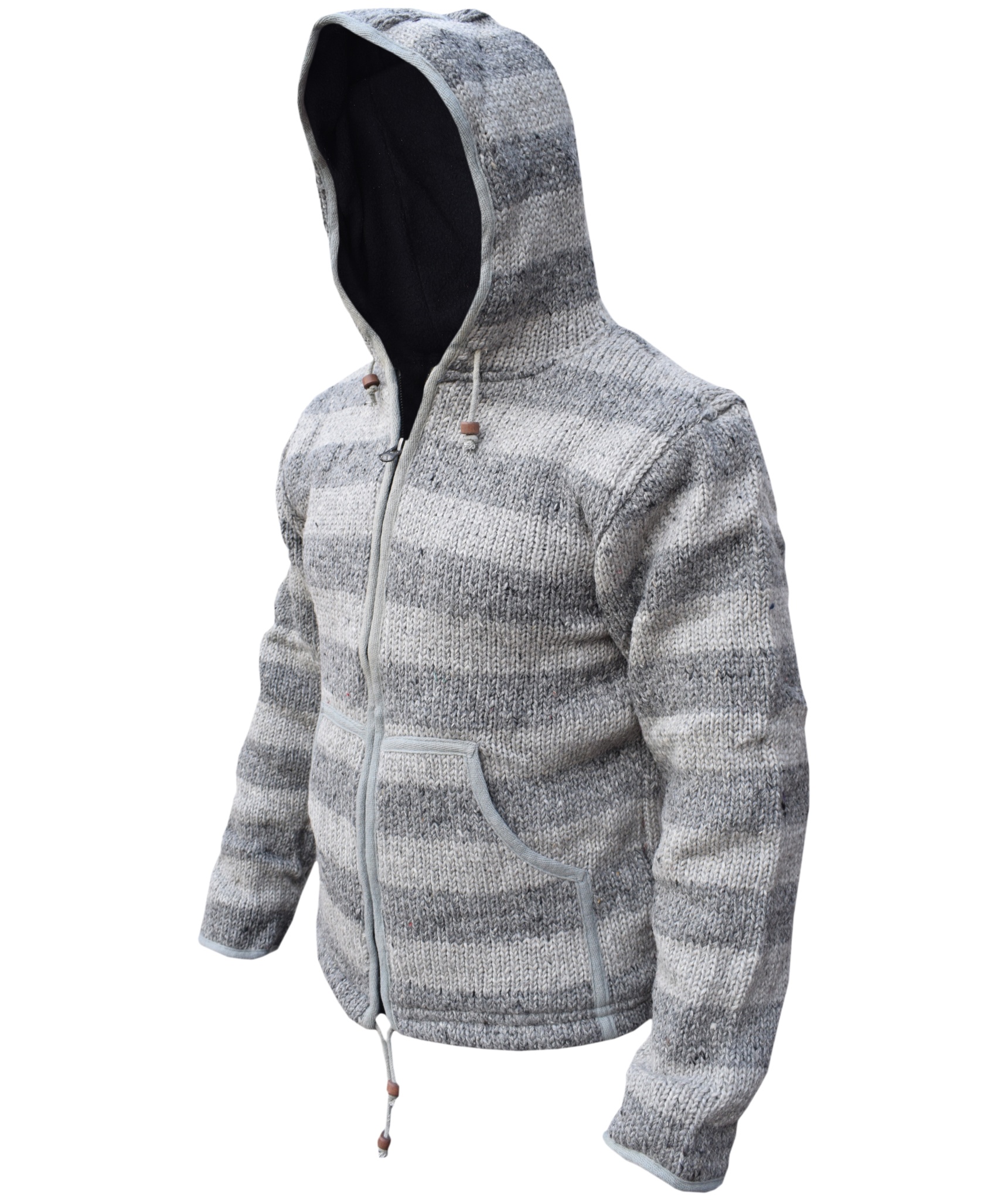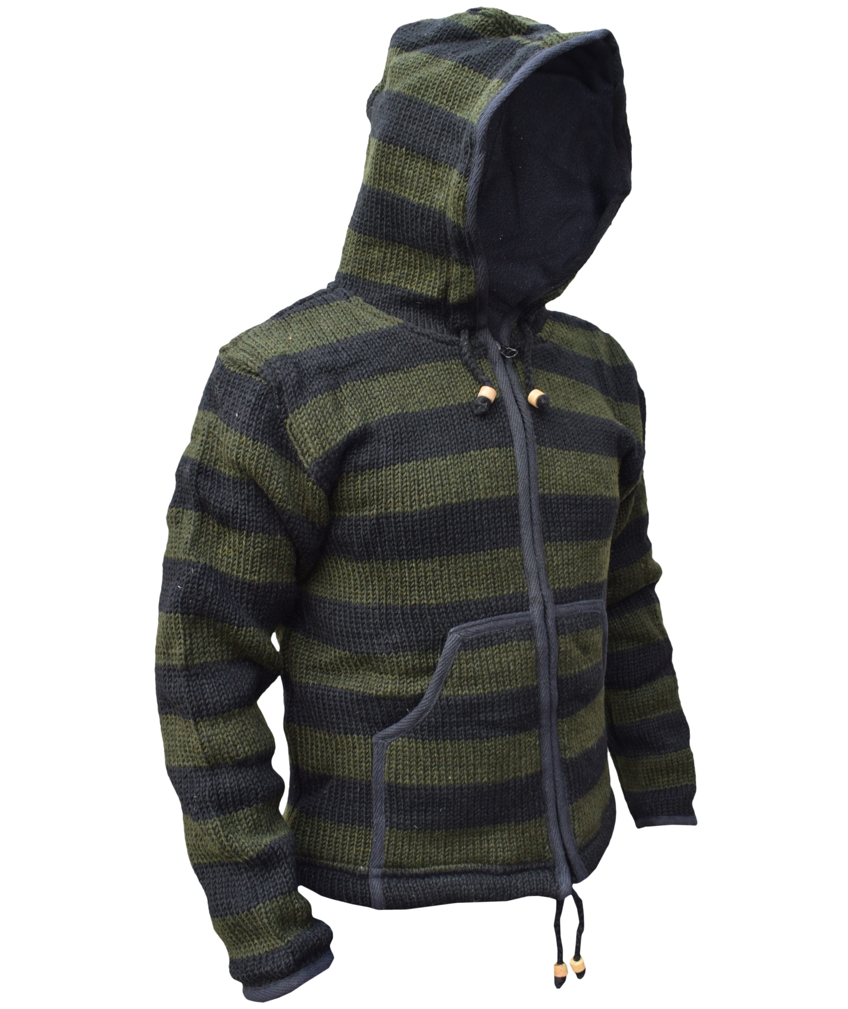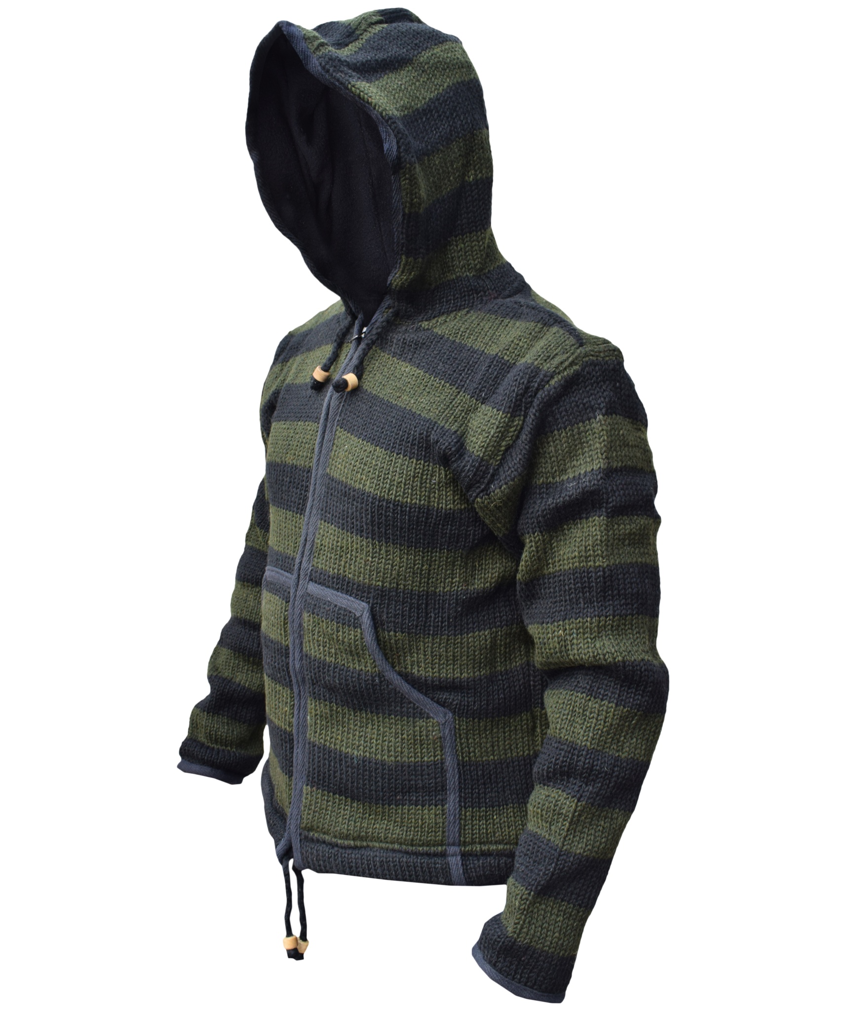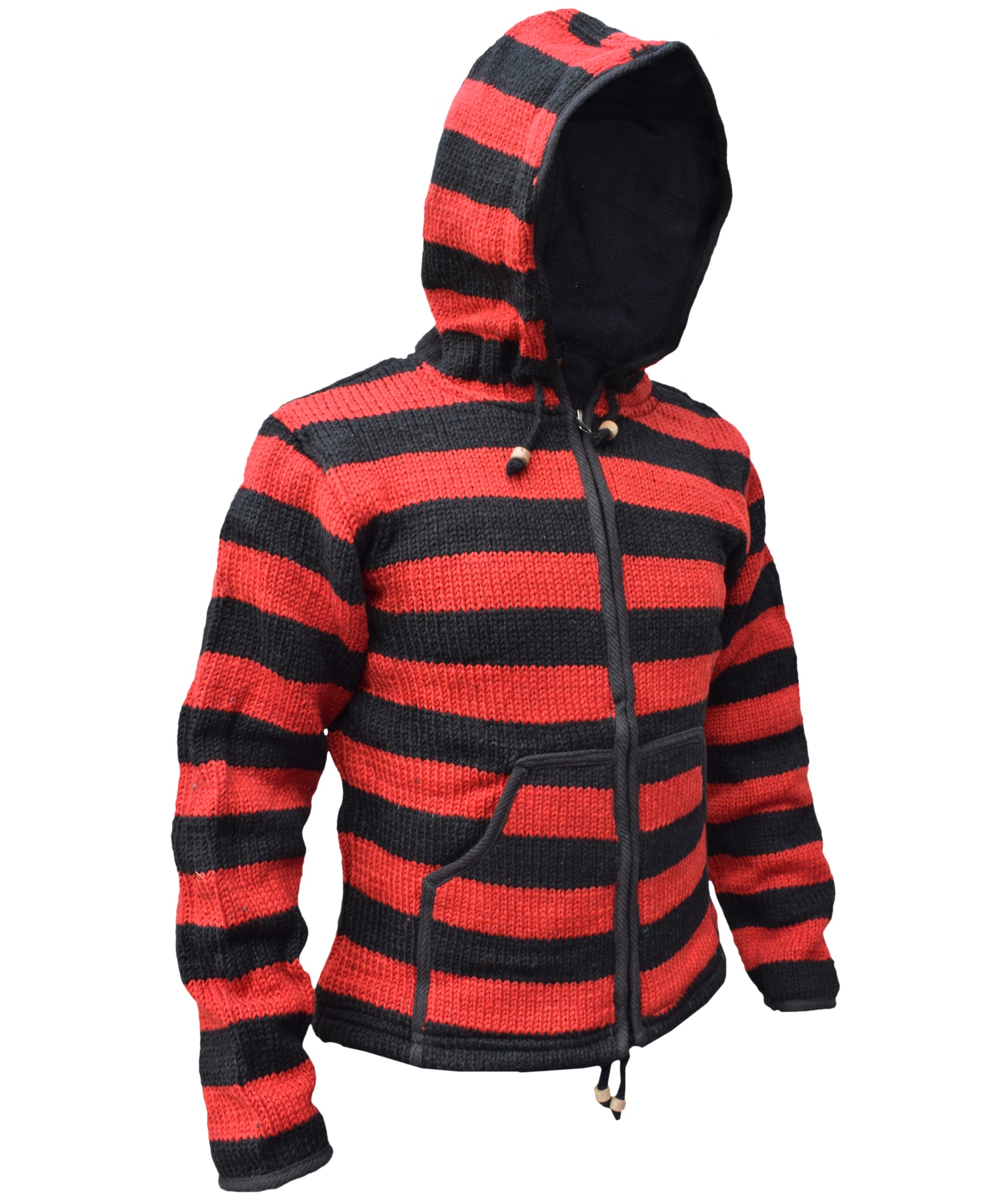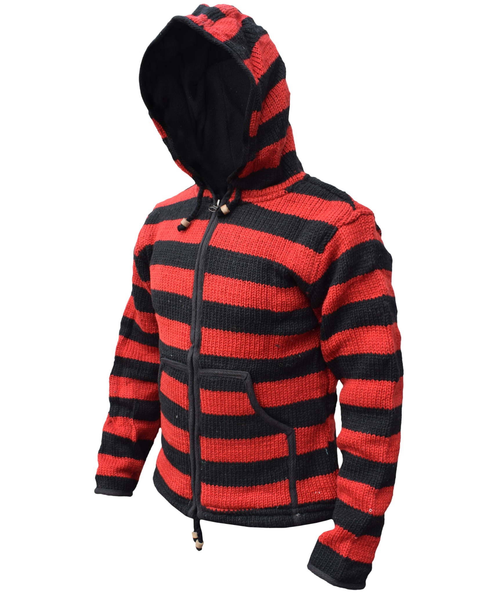 These stripy jackets are awesome choice for the chilling climate. They are designed for casual wear. They have full front zip fastening with a hoodie. The hood and hem have a drawstring with wooden beads. They are full sleeved and have two deep front pockets and an inner pocket at a side.