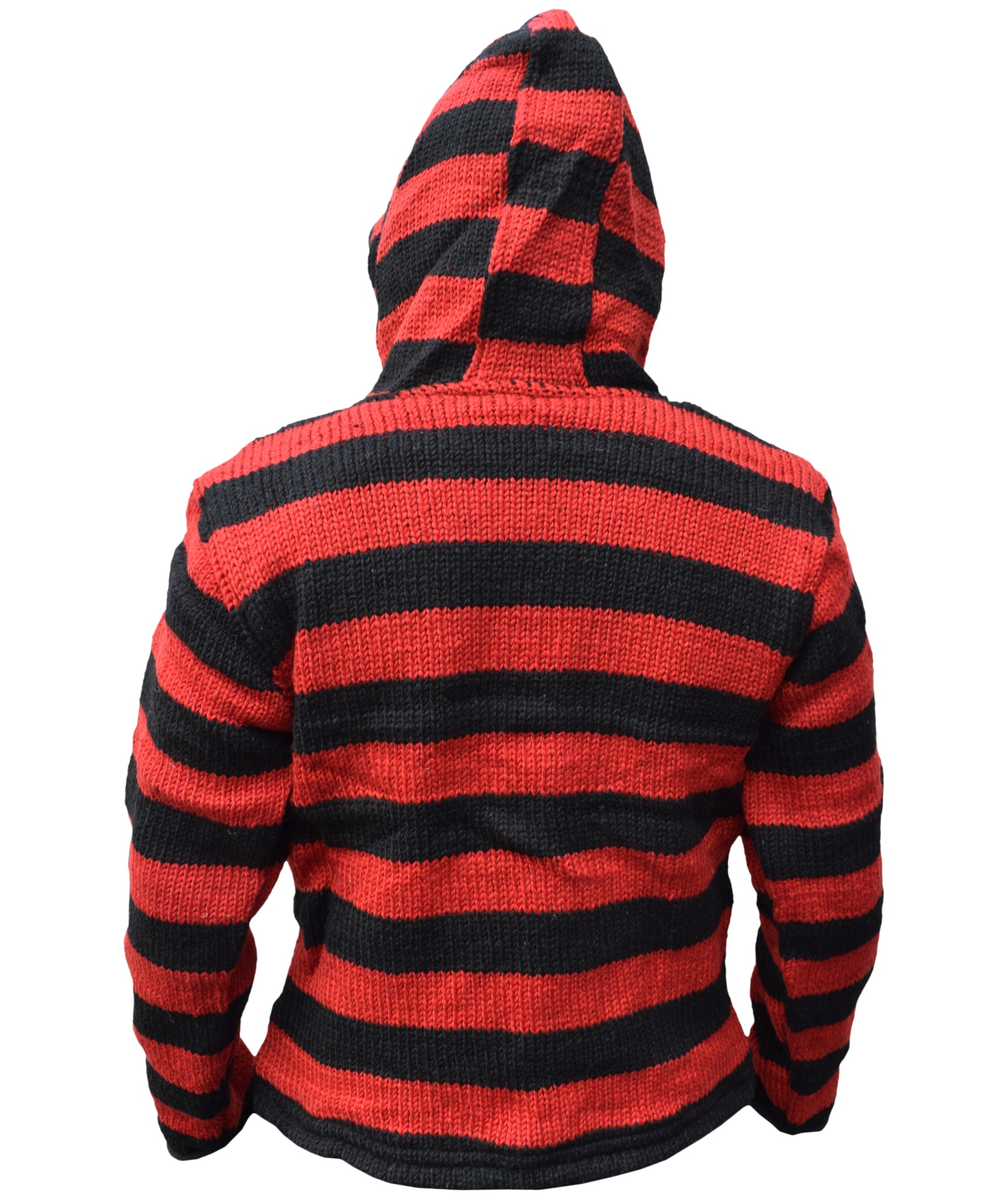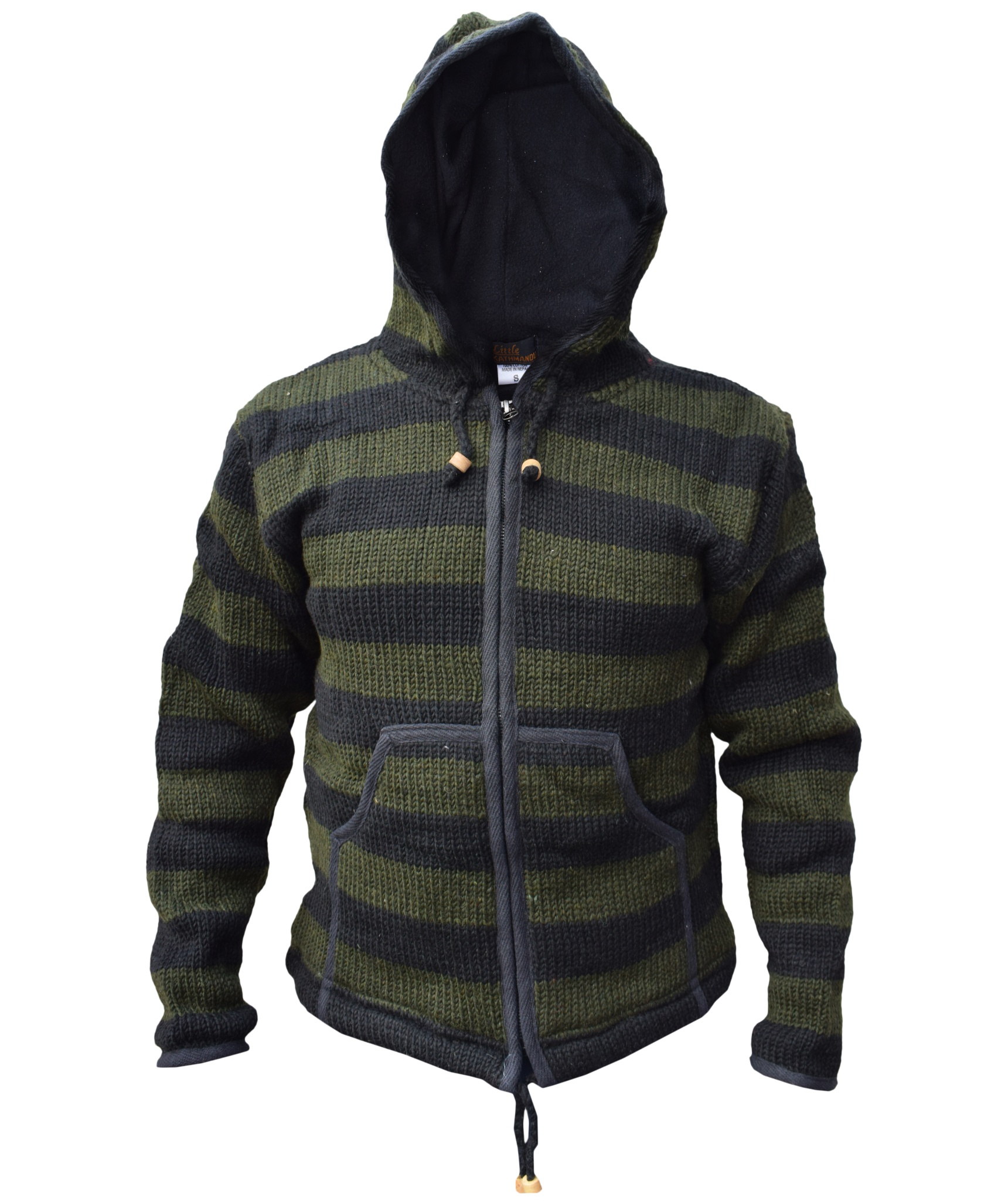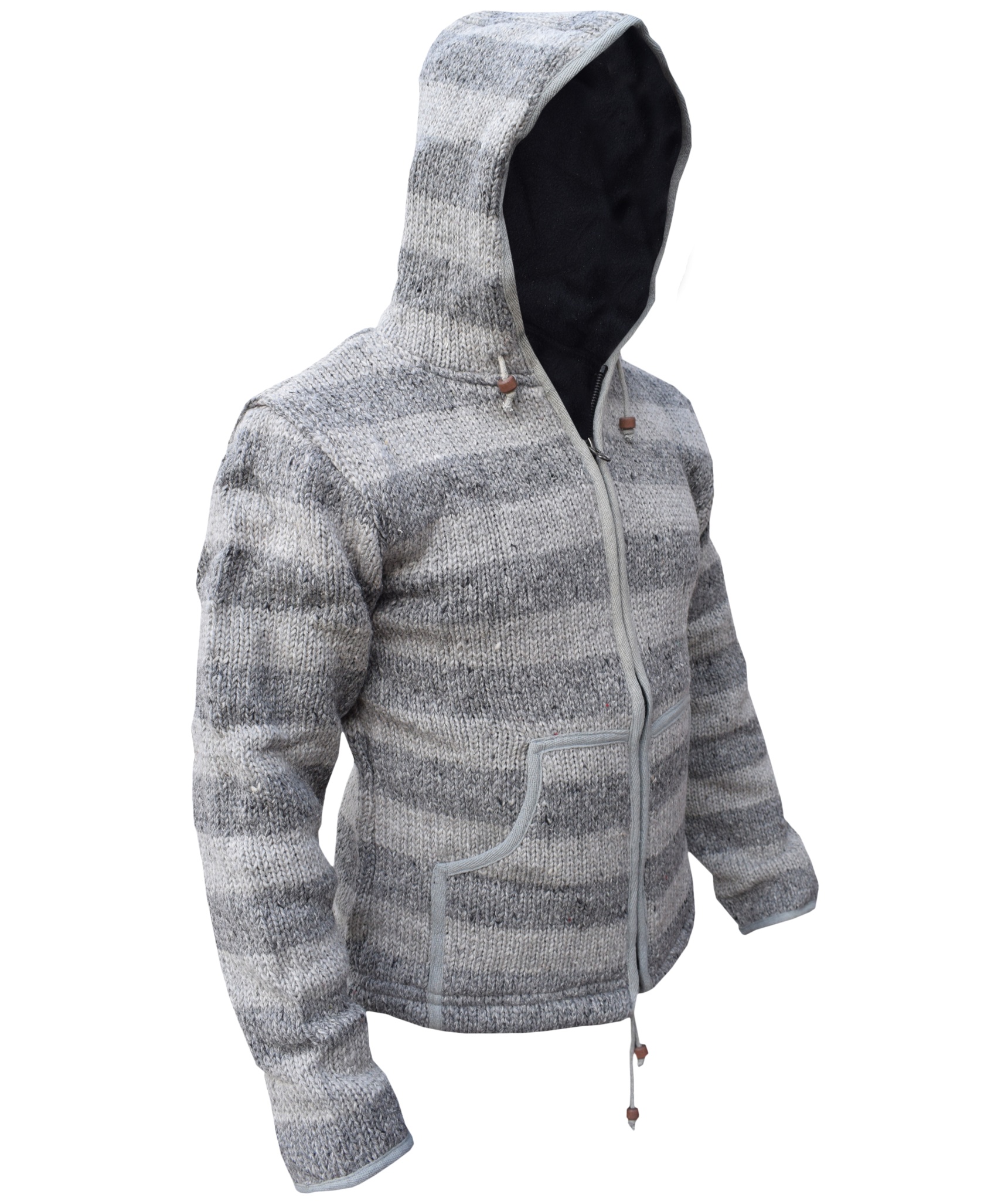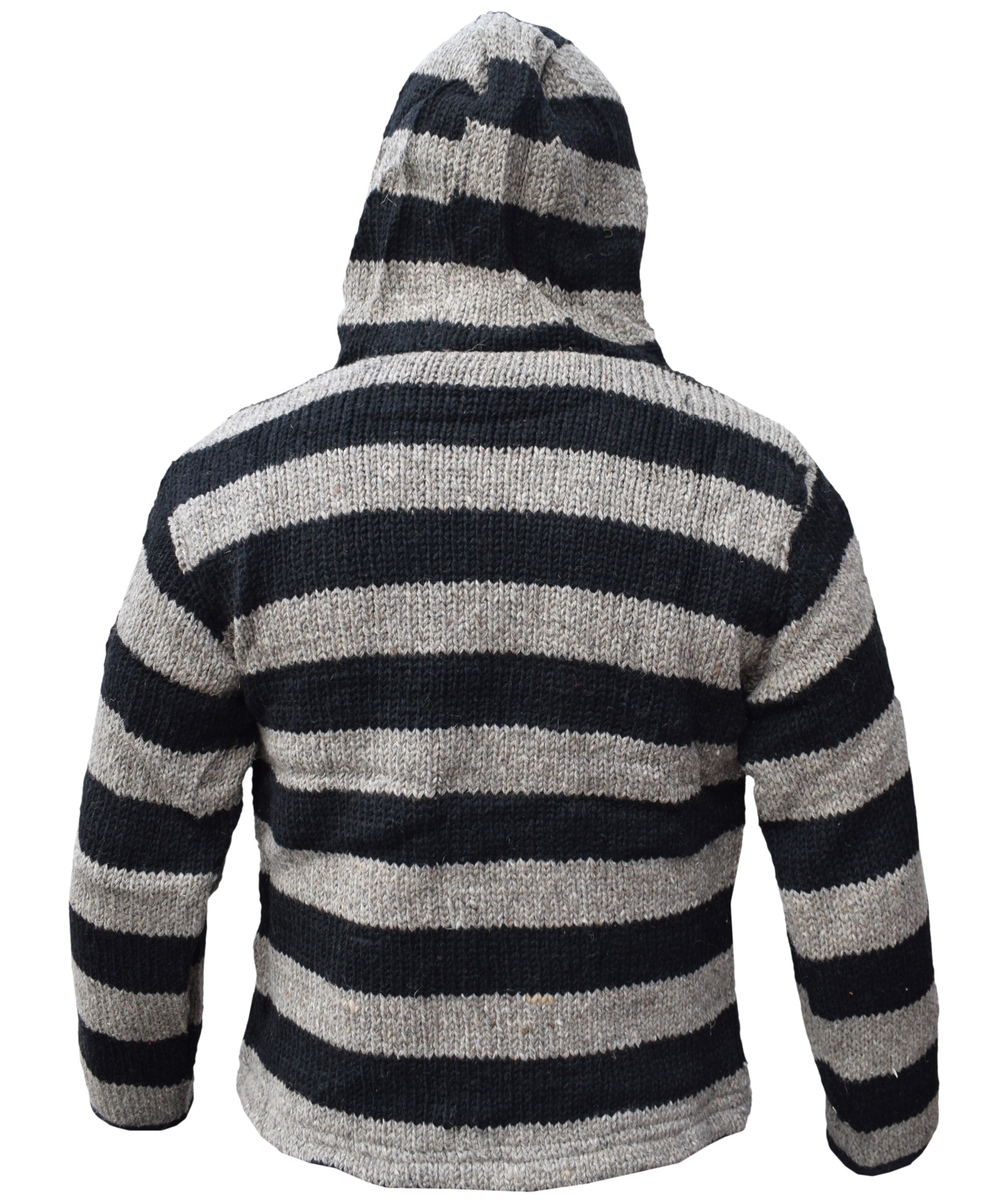 These stripy jackets are awesome choice for the chilling climate. They are designed for casual wear. They have full front zip fastening with a hoodie. The hood and hem have a drawstring with wooden beads. They are full sleeved and have two deep front pockets and an inner pocket at a side.