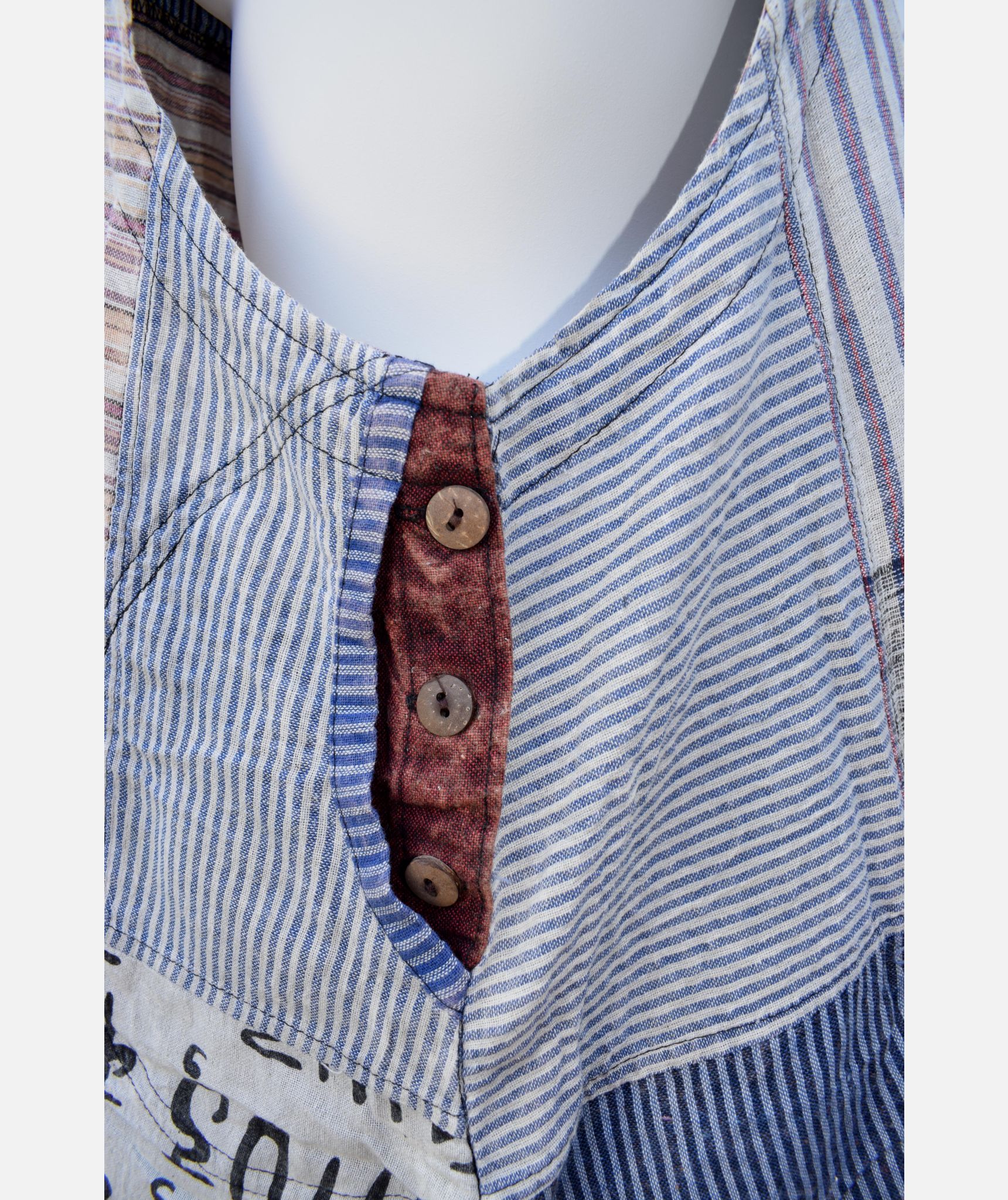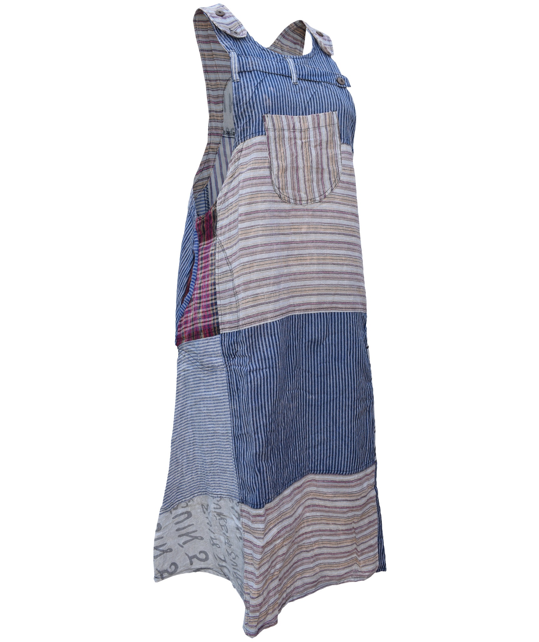 Bohemian patchwork dress with stripes and Kathmandu print. Loose fit. .