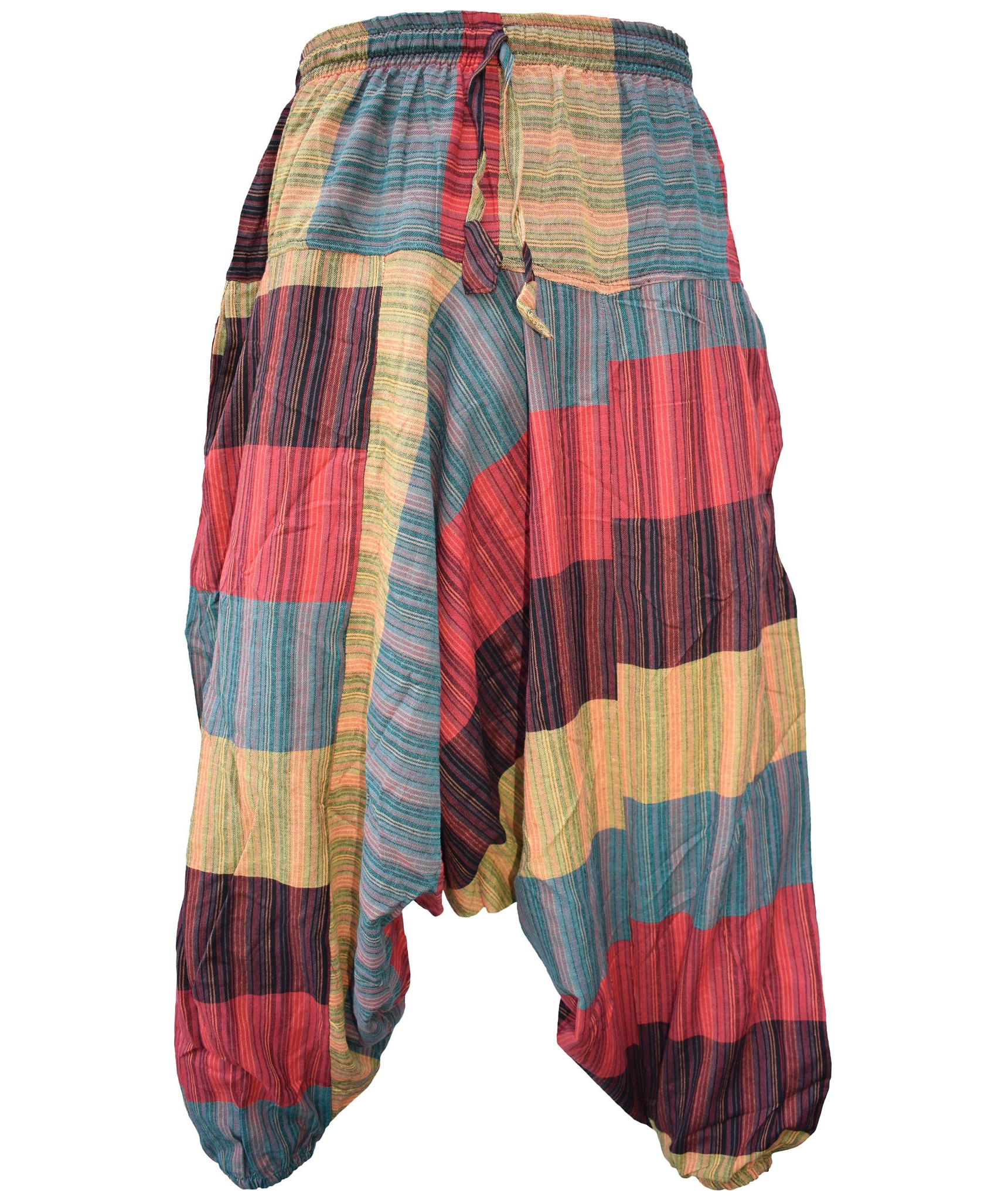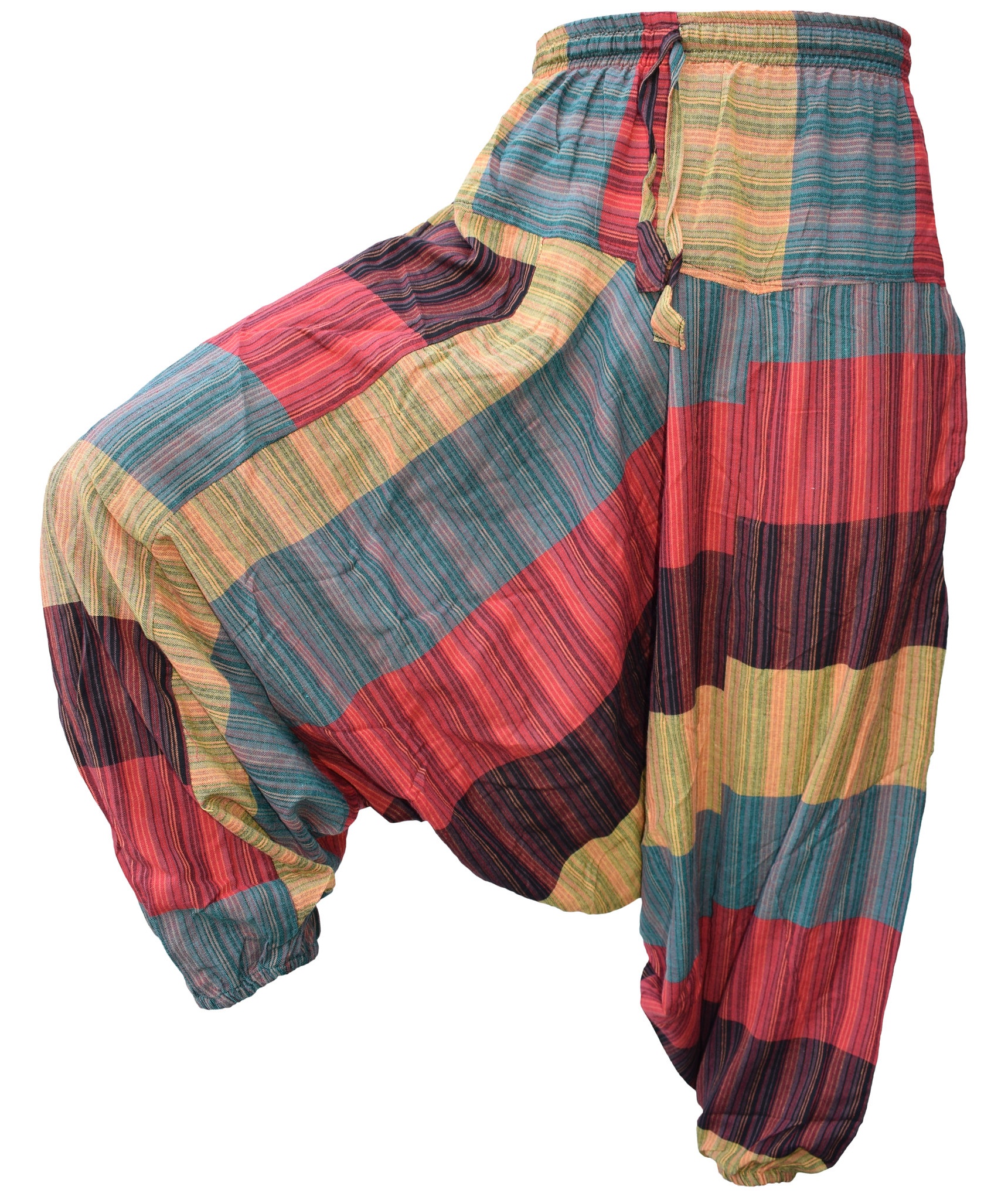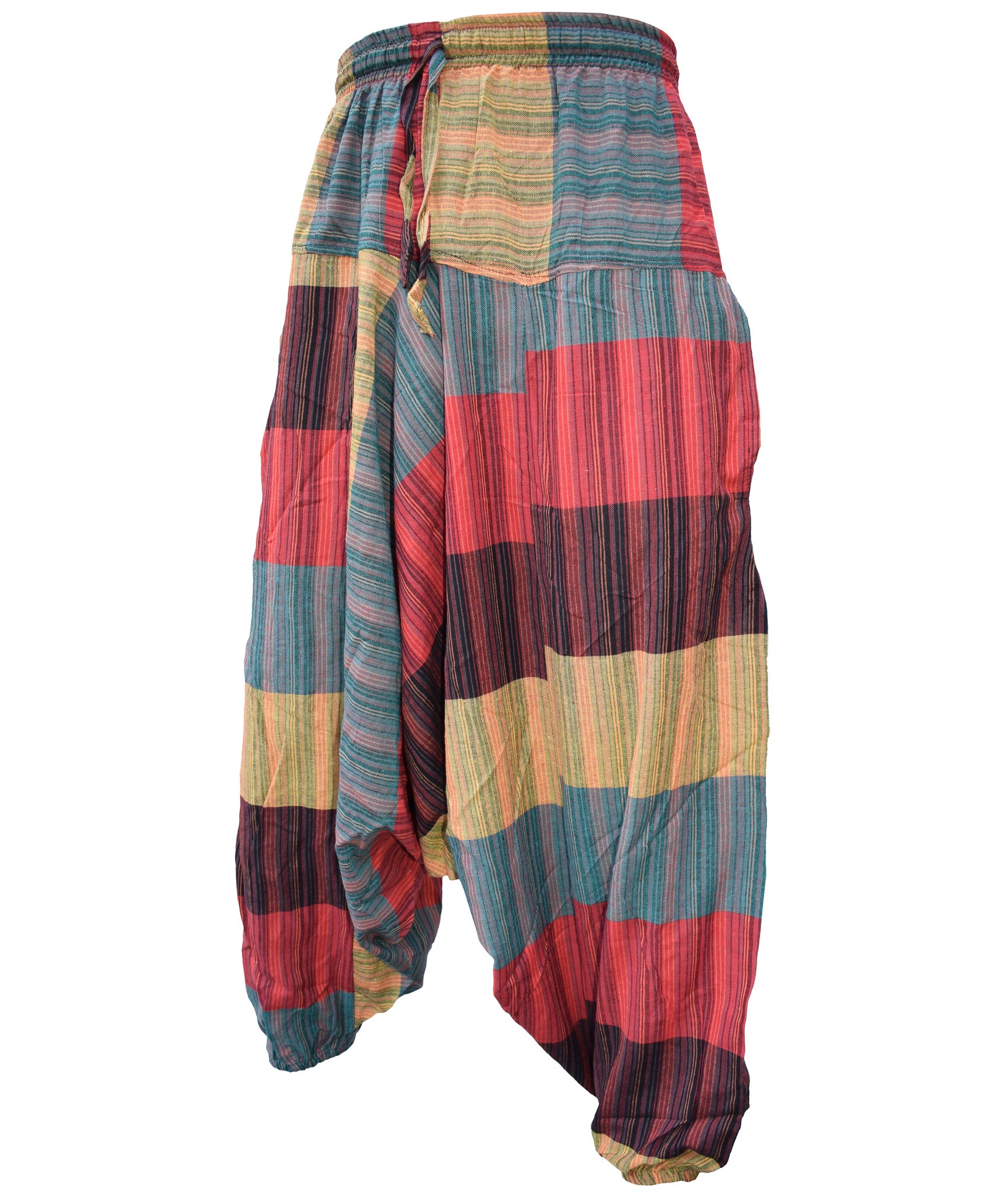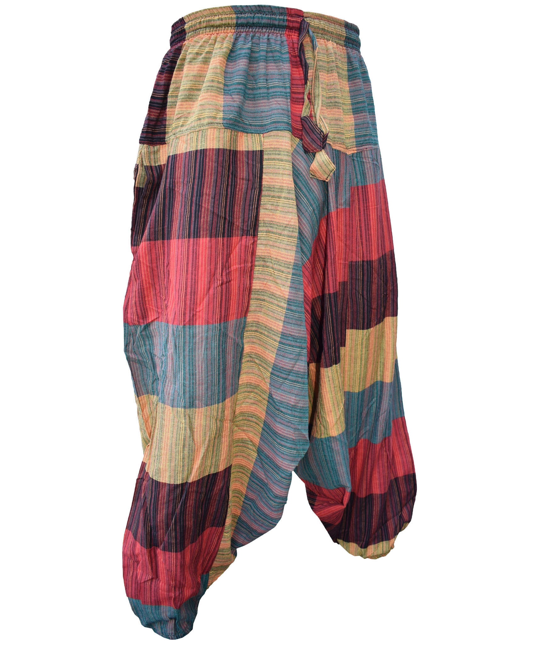 These light and comfortable harem pants are a great choice to wear. Elastic waistband with drawstring makes it easy to use. A variety of vibrant colors and patterns give bohemian and lively vibe. Good quality cotton is very skin friendly and lightweight, perfect for a hot summery days.