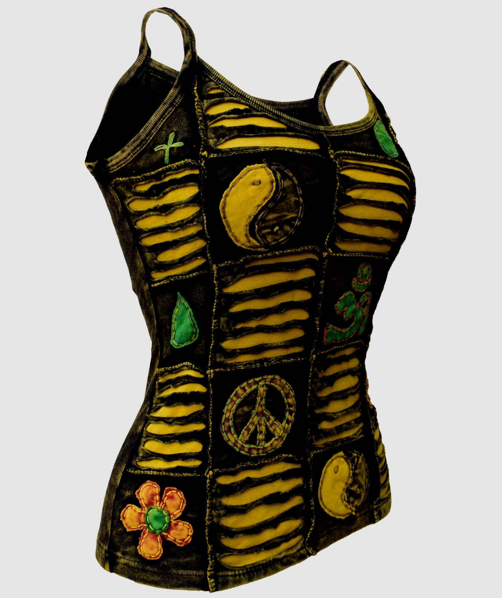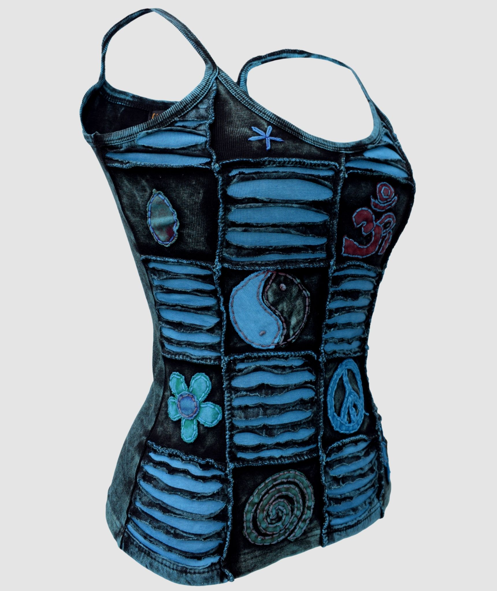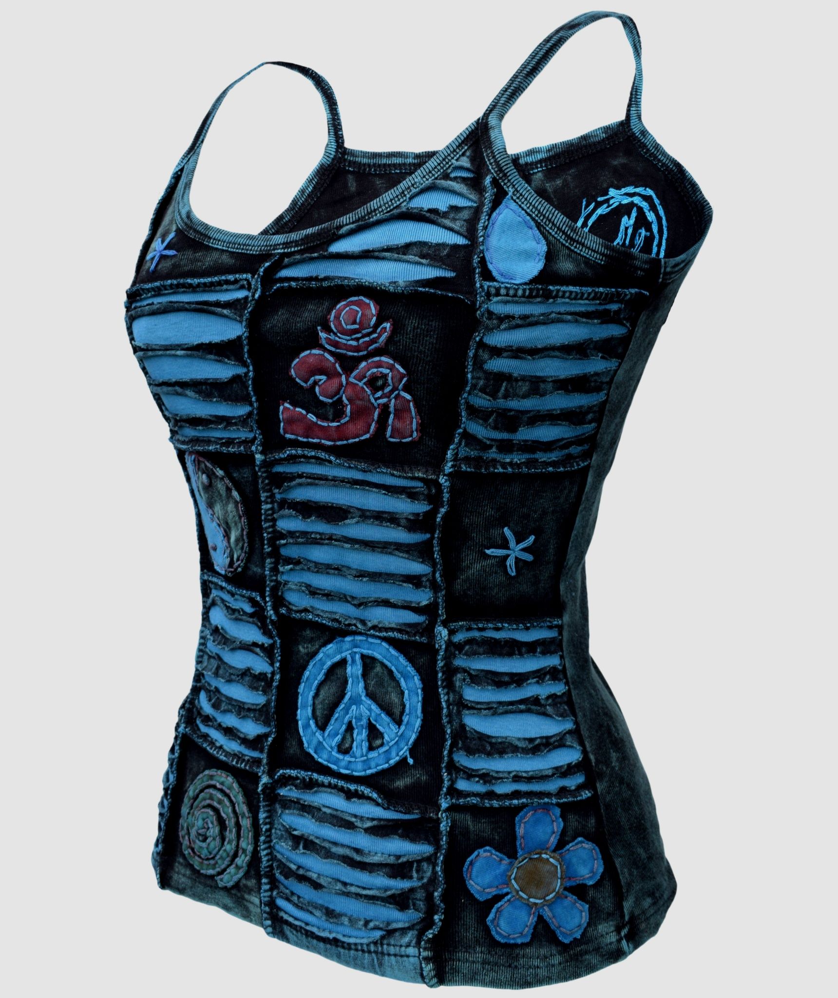 S/M: chest- 24 (stretches up to 5 inches), length from top of strap to bottom hem-25 inches approx.