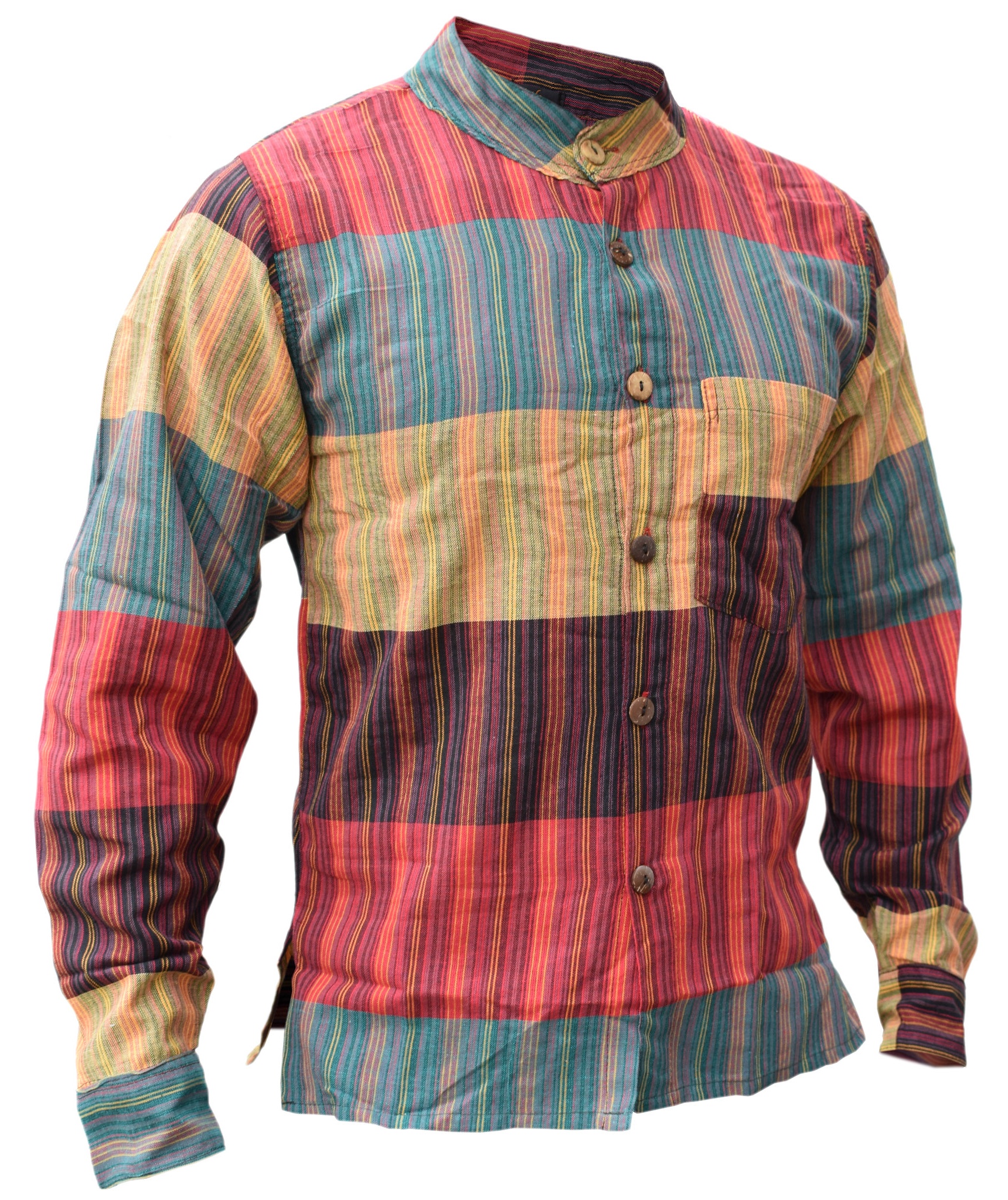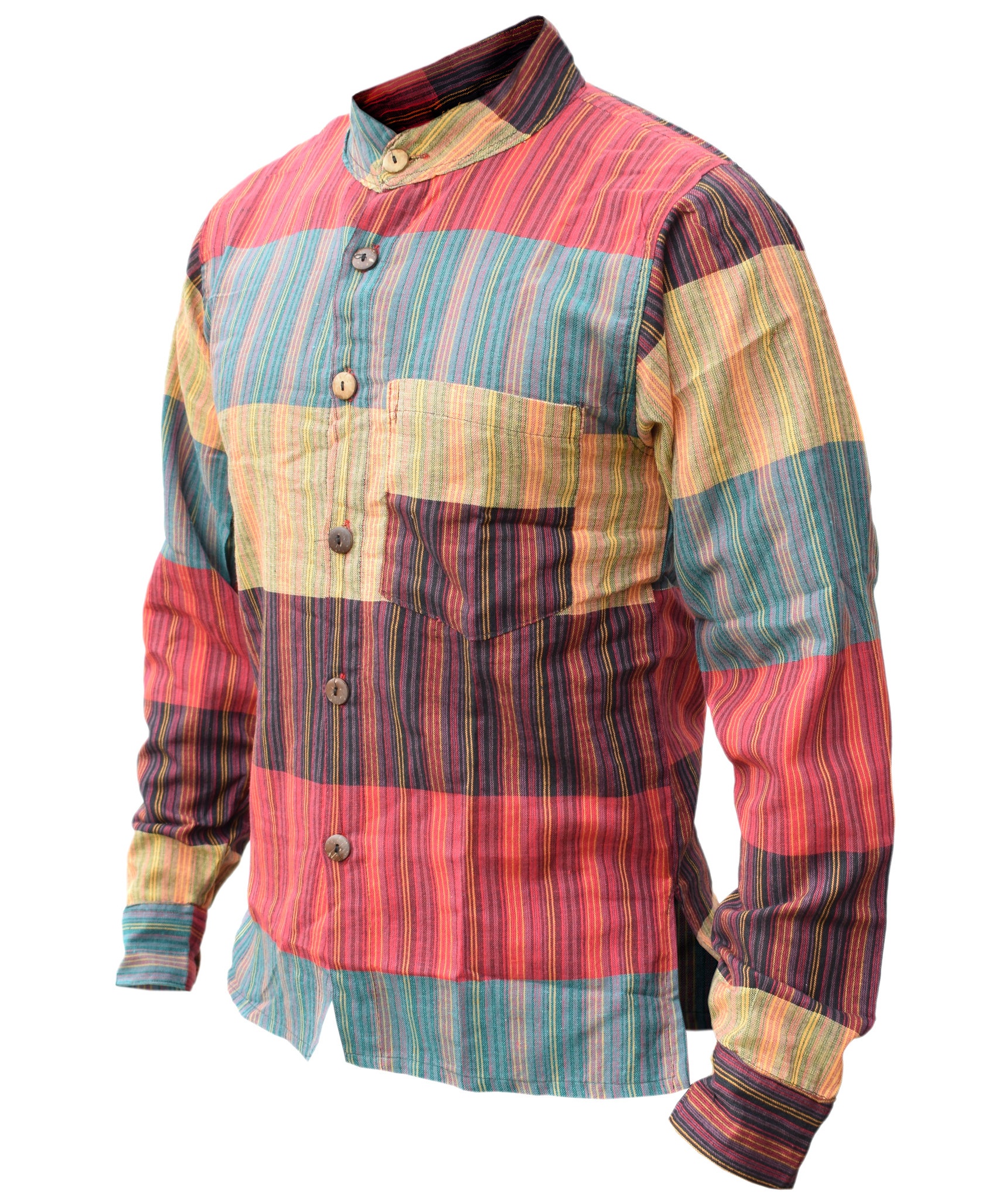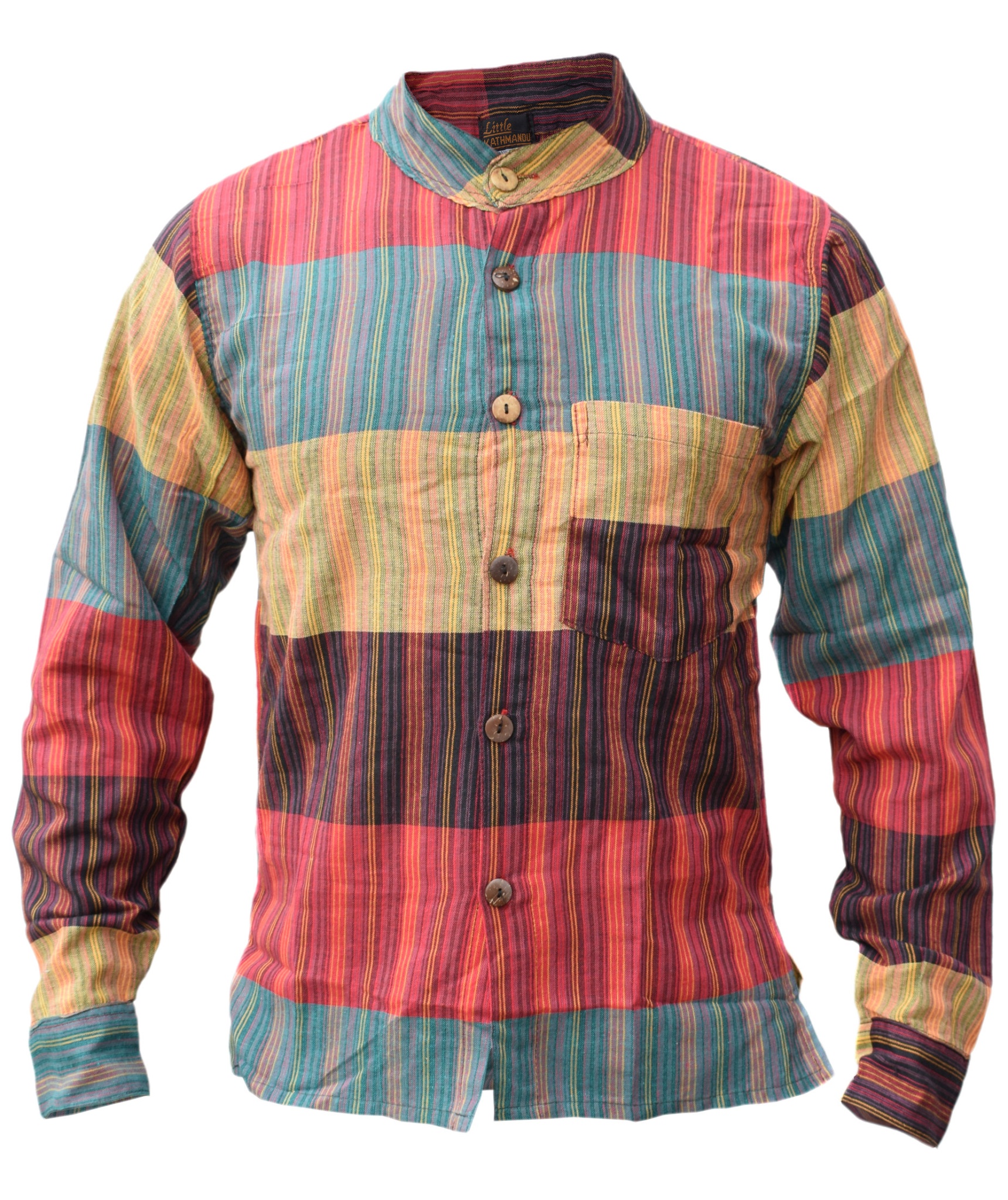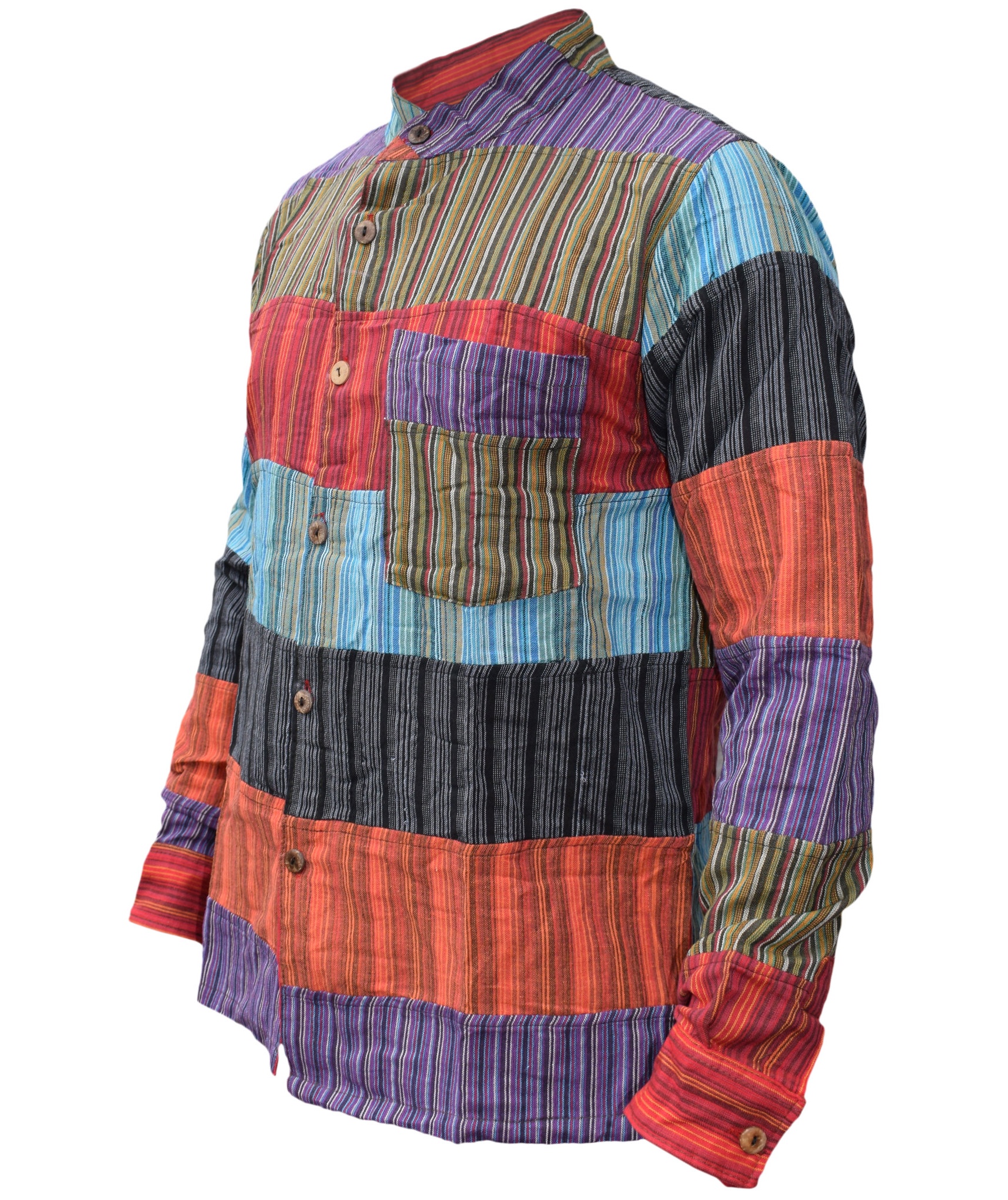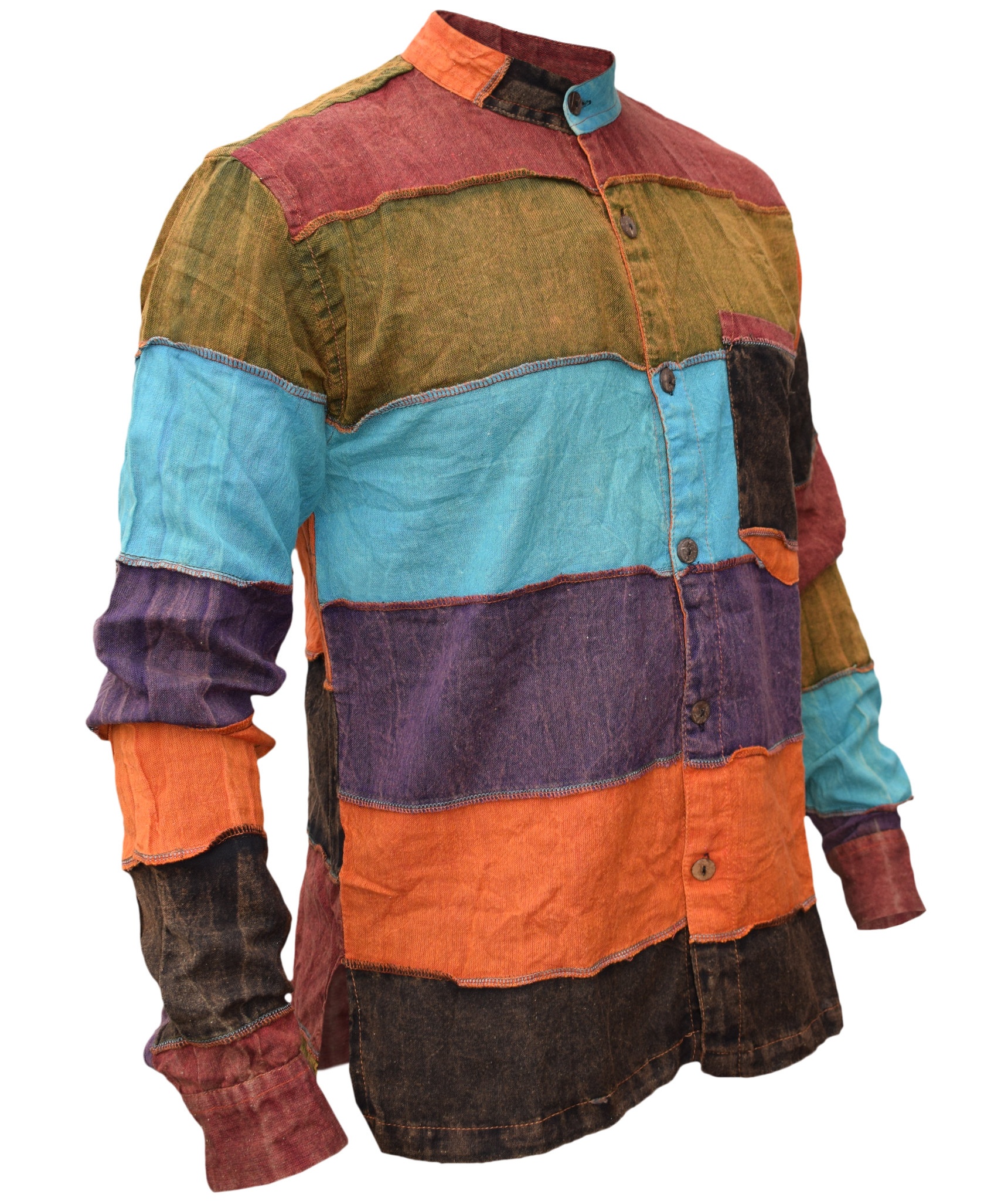 These patchwork grandad shirts are awesome choice for the hot climate. They are designed for casual and lounge wear. Full button fastening with grandad collar. They are full sleeved but are very light weight suitable for summer. Each shirt has a chest pocket and slits on both sides.