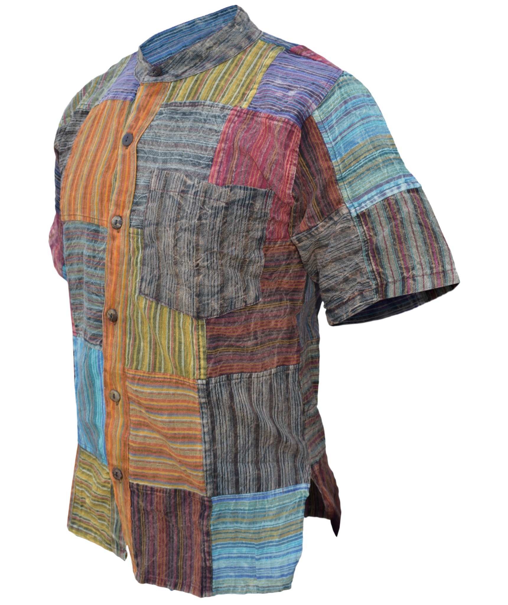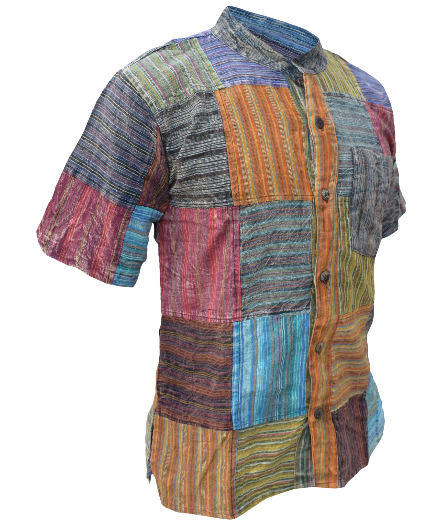 Grandad collarless short sleeved shirt.