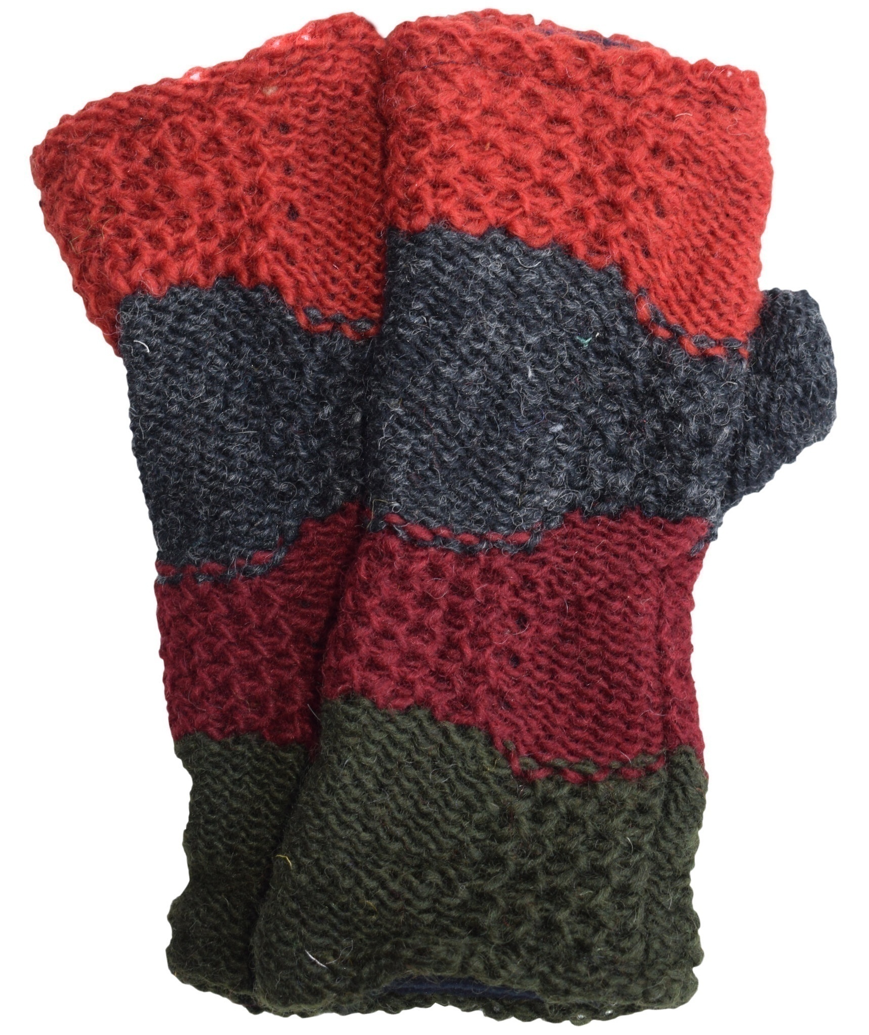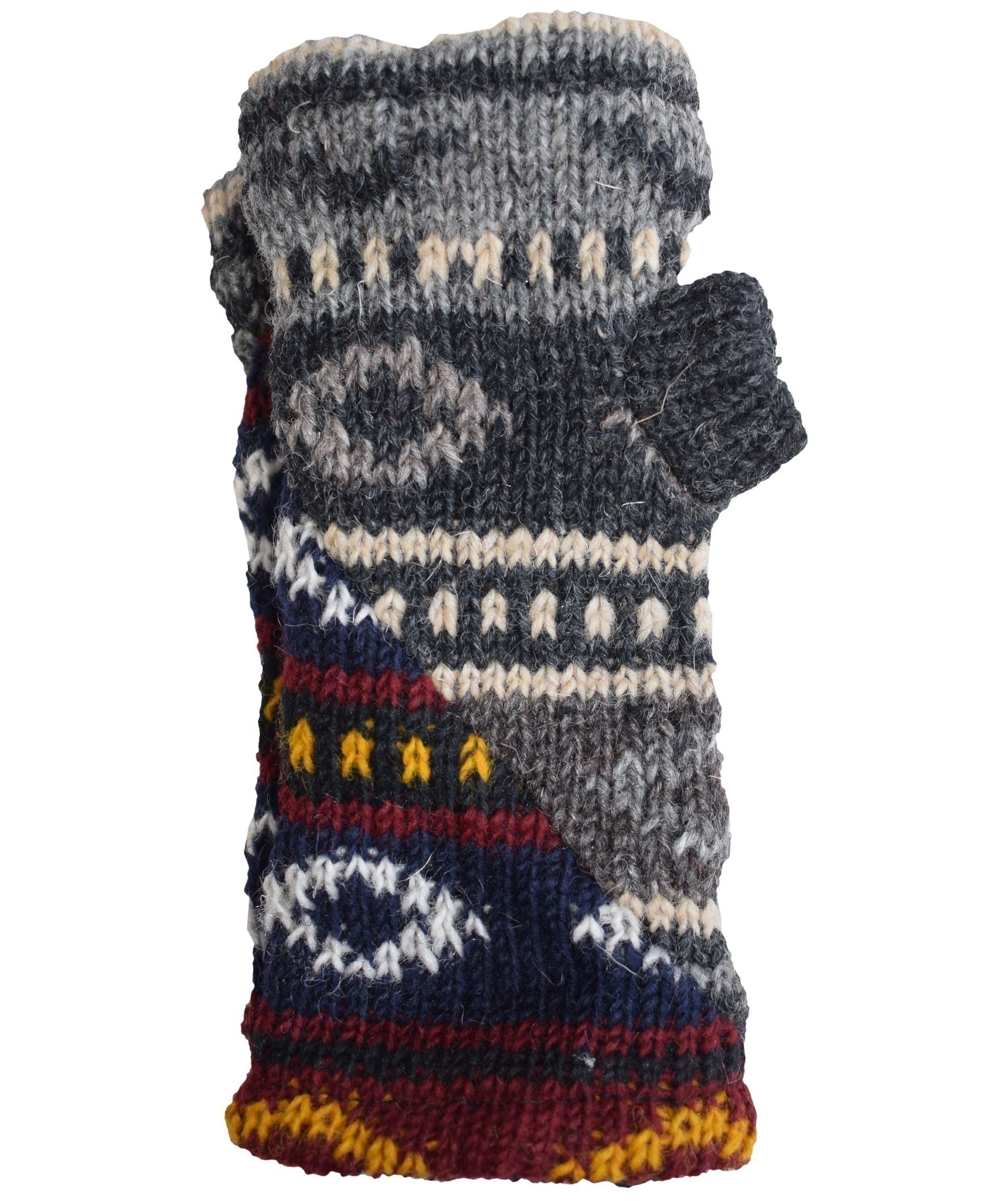 Hand knited woolen mittens are perfect for winter. It is warmer with inner fleecelining. These woolen gloves have 2 sections; one for thumb and another for other fingers.