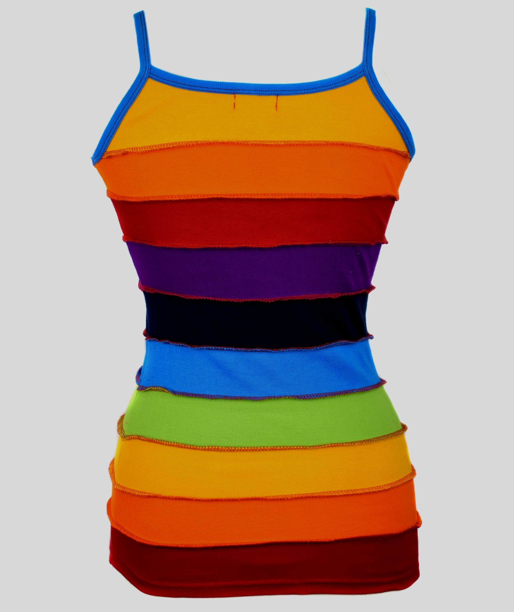 S/M: chest- 24 (stretches up to 5 inches), length from top of strap to bottom hem-25 inches approx.