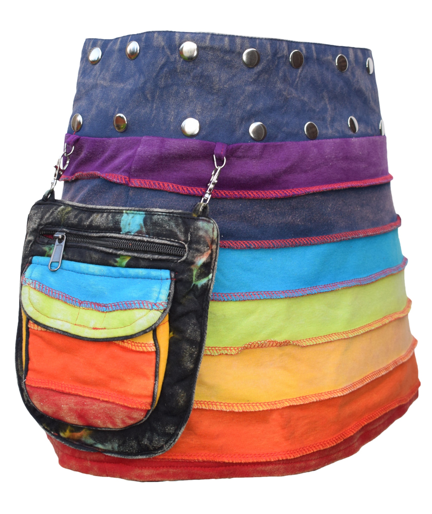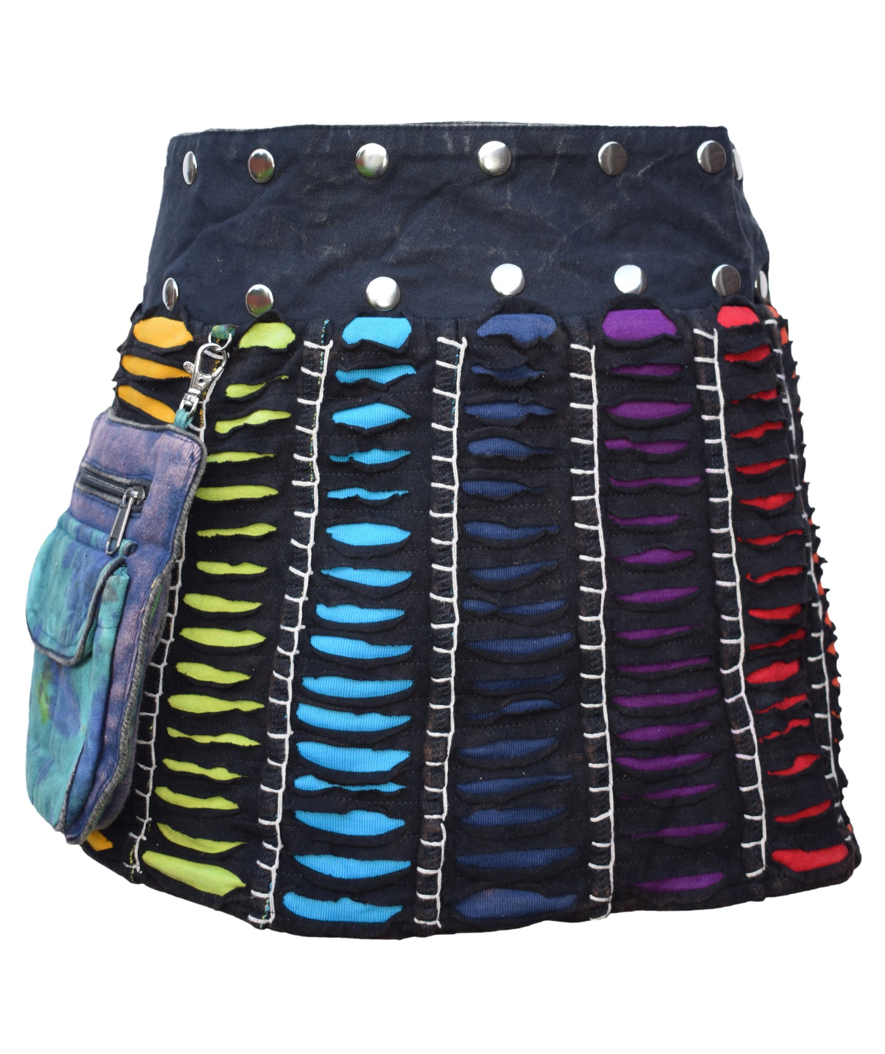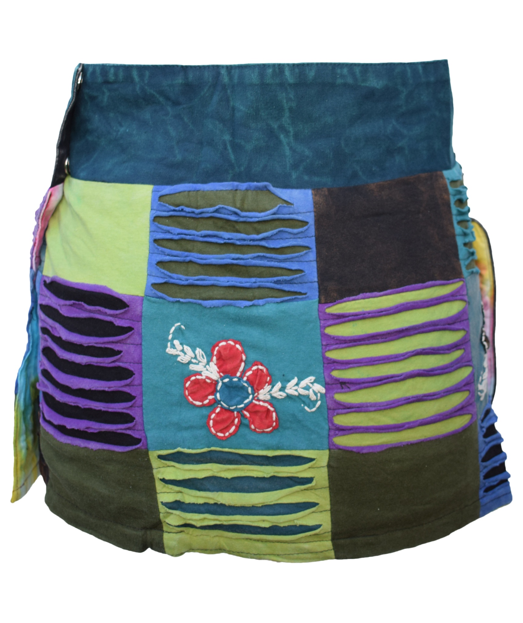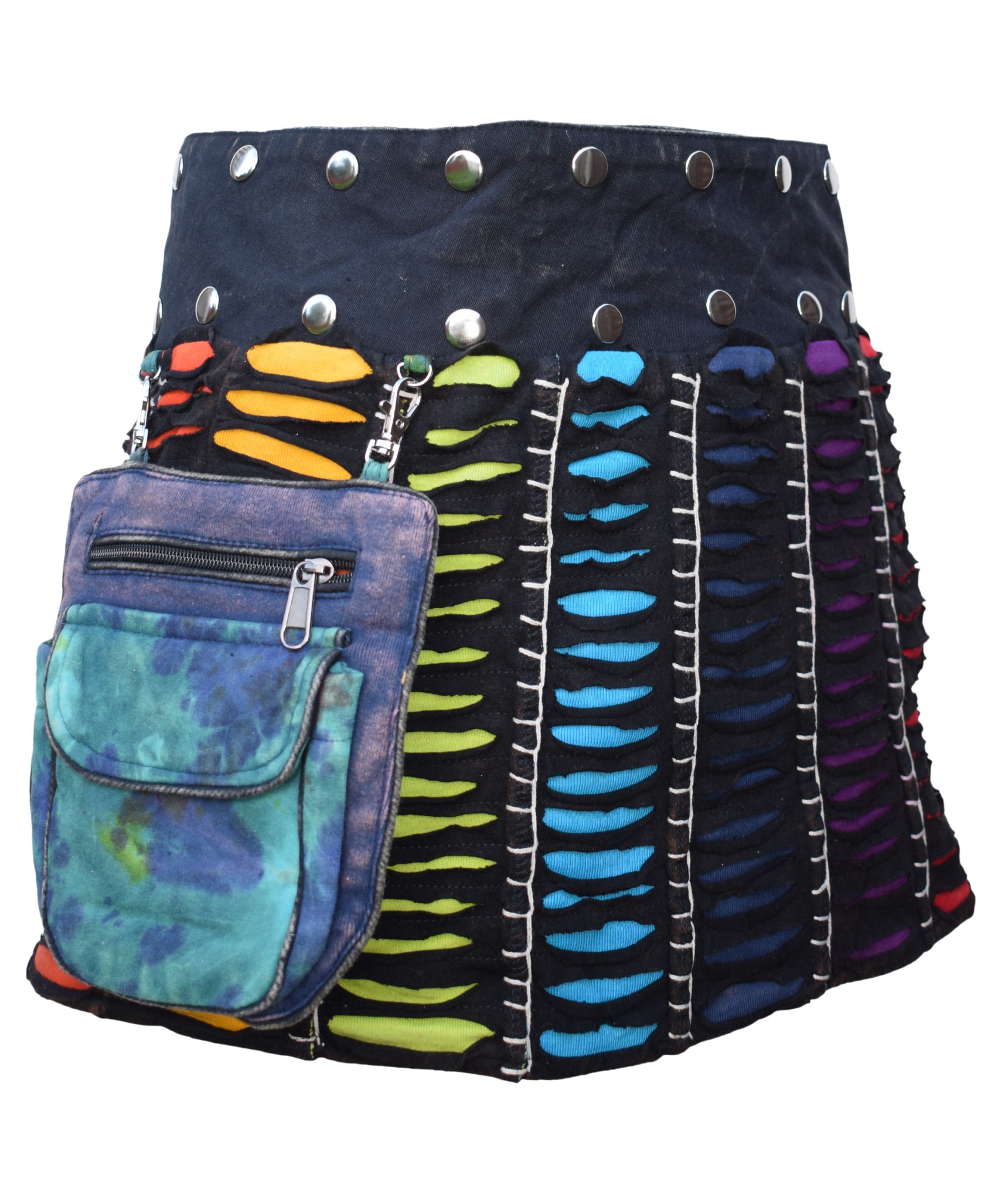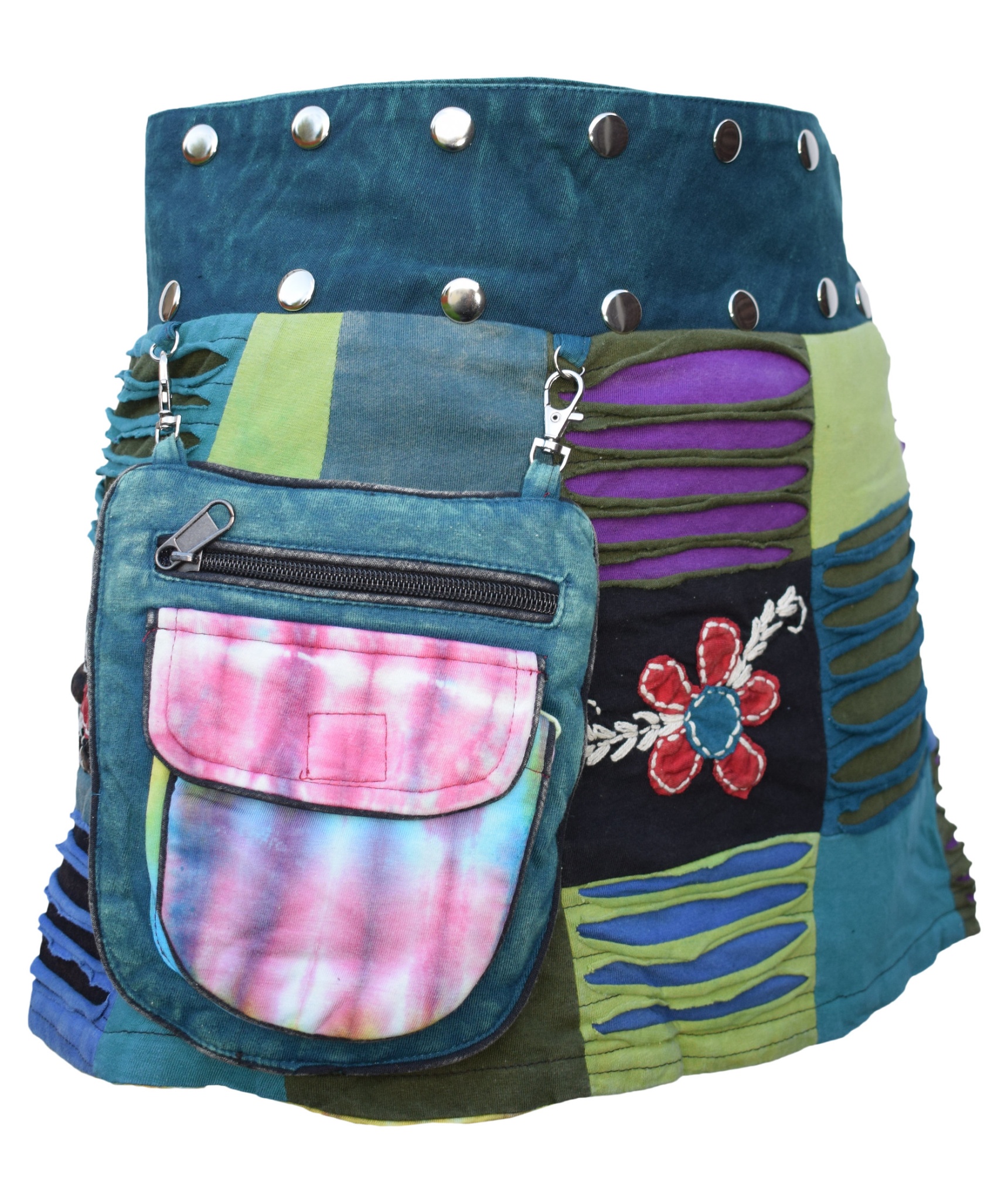 Boho reversible skirts to spice up your style. Designed with eye catching embroideries, tie dye and razorcuts. Dainty floral embroidery gives a vibrant touch to the skirt. Easy to wear wrap style closure. The perfect combination of comfort and chic. A unique piece you can easily style with any top. Practical detachable side bag with pockets.