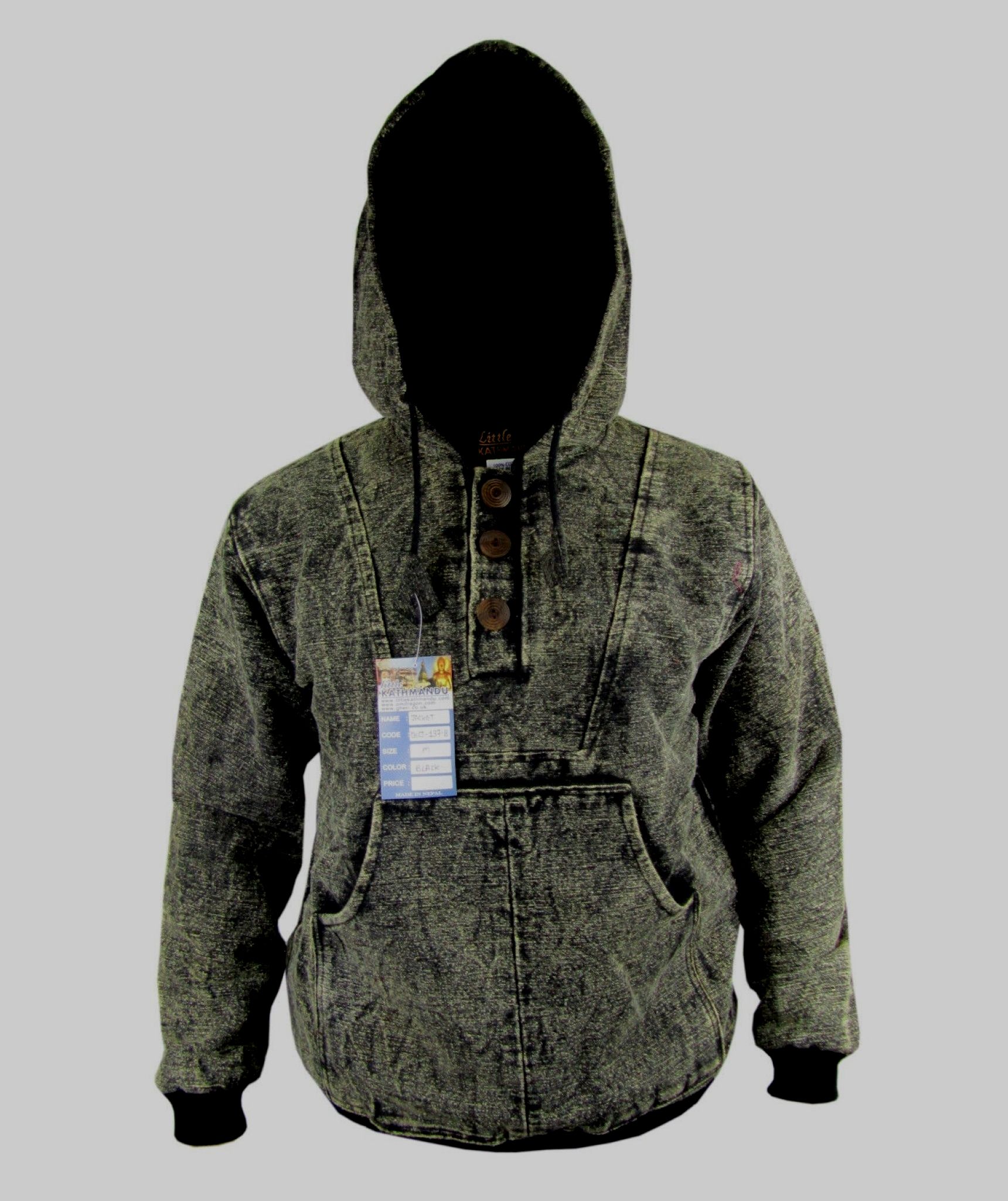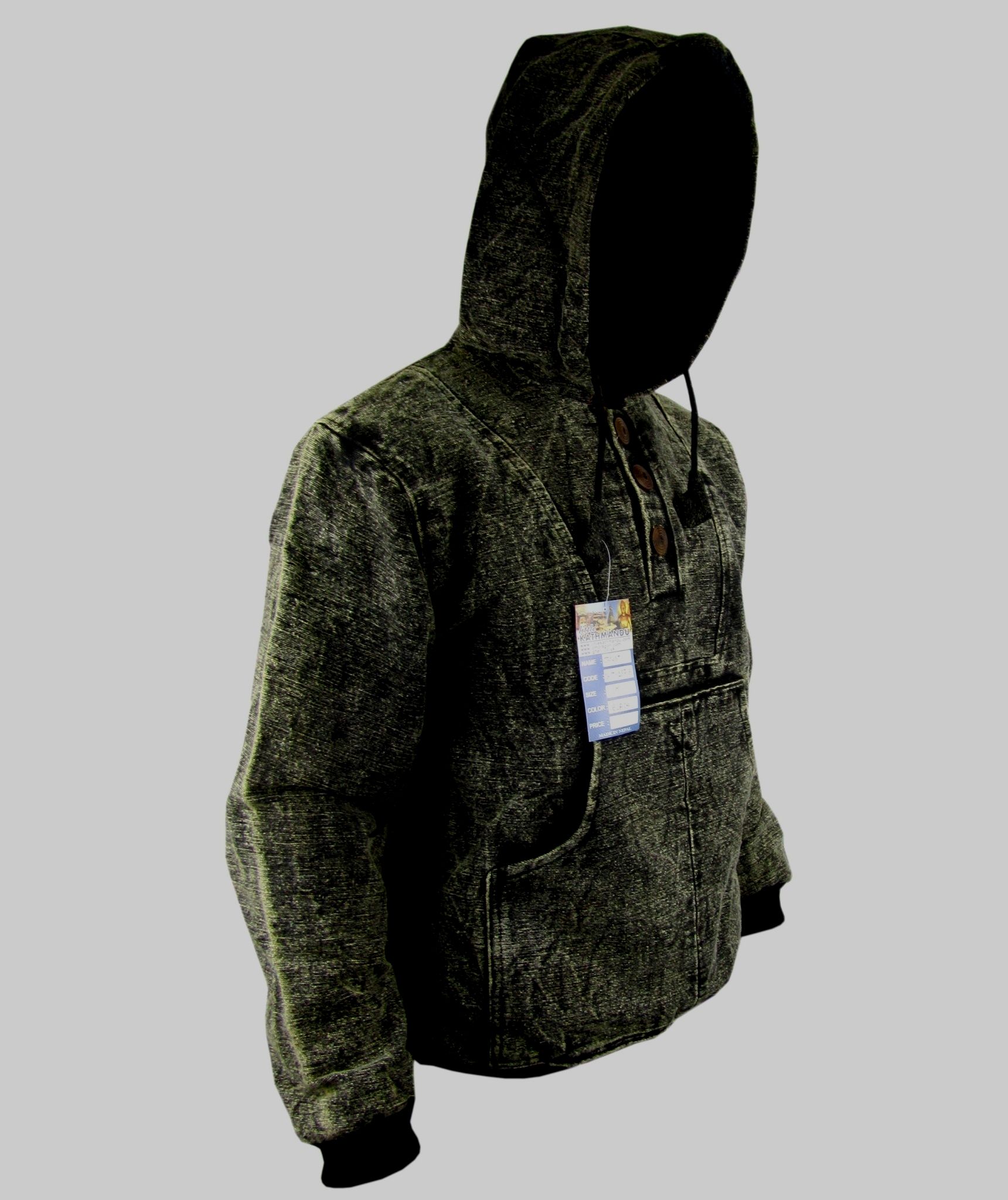 These stonewashed jackets are fleece lined which is a perfect feature for the winter season. They are warm and cozy to wear and stylish in look as well. There is three button design at the front neck part. They are provided with hoodie that has drawstring to adjust its size. They are full sleeved and of hip length.