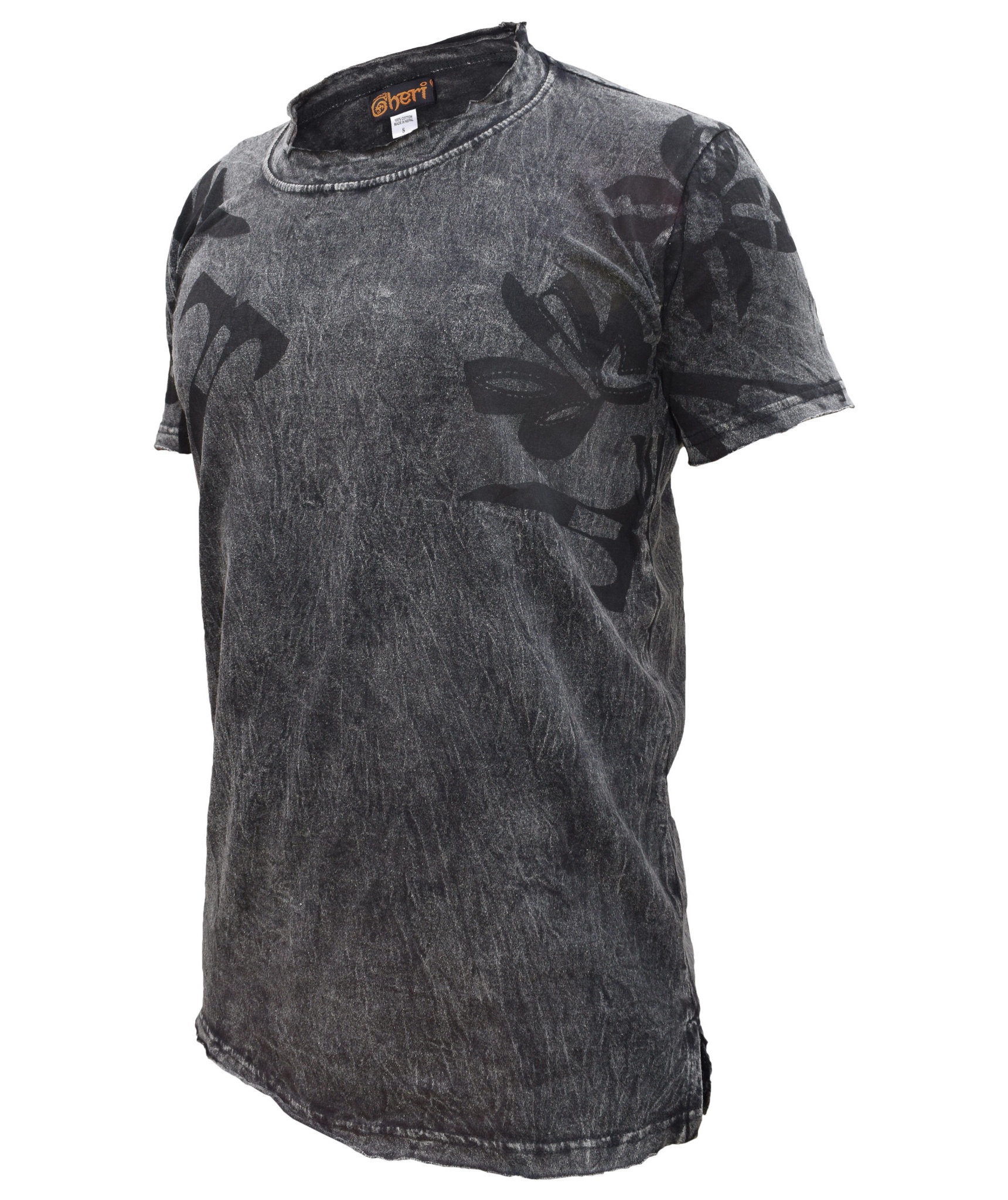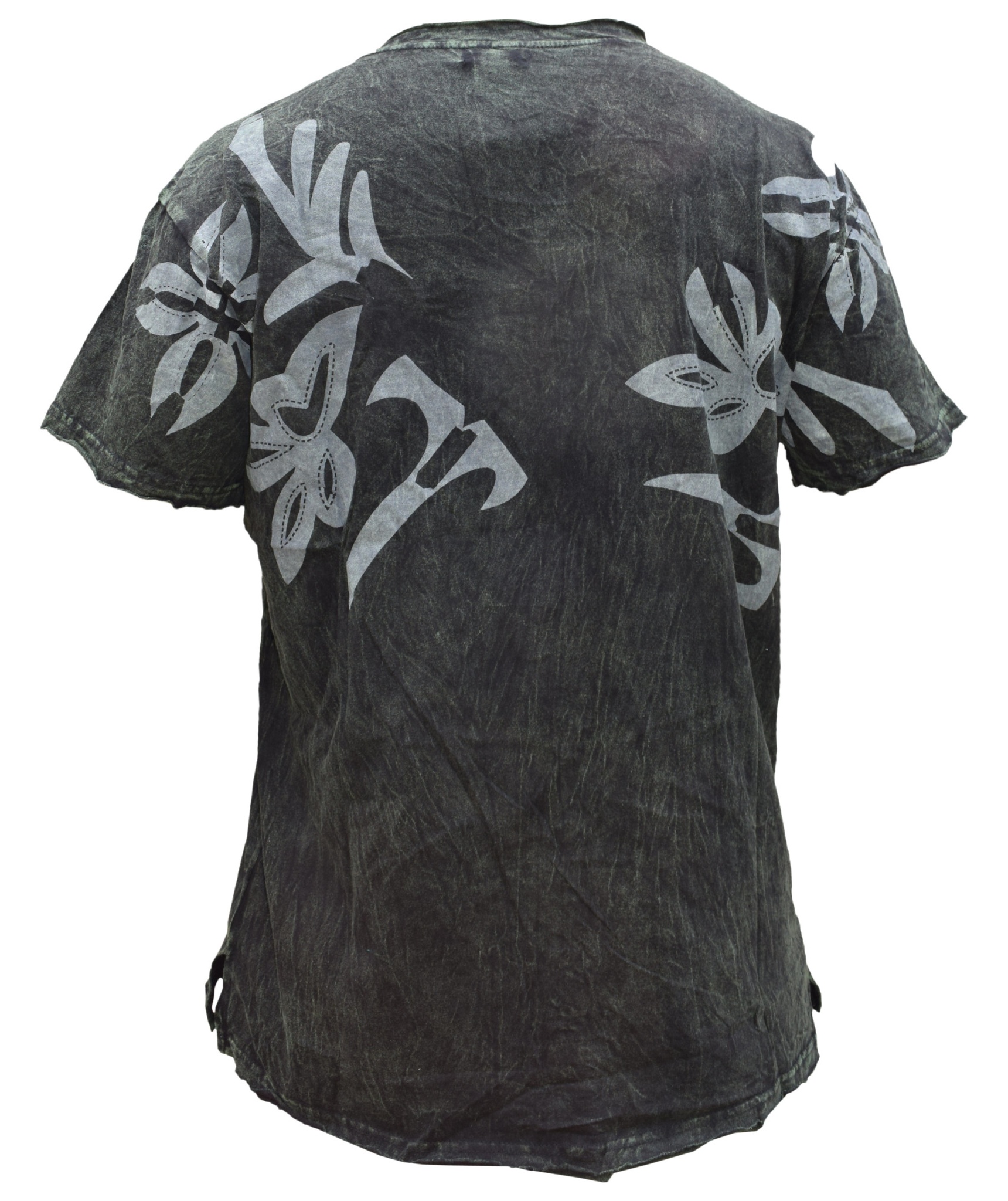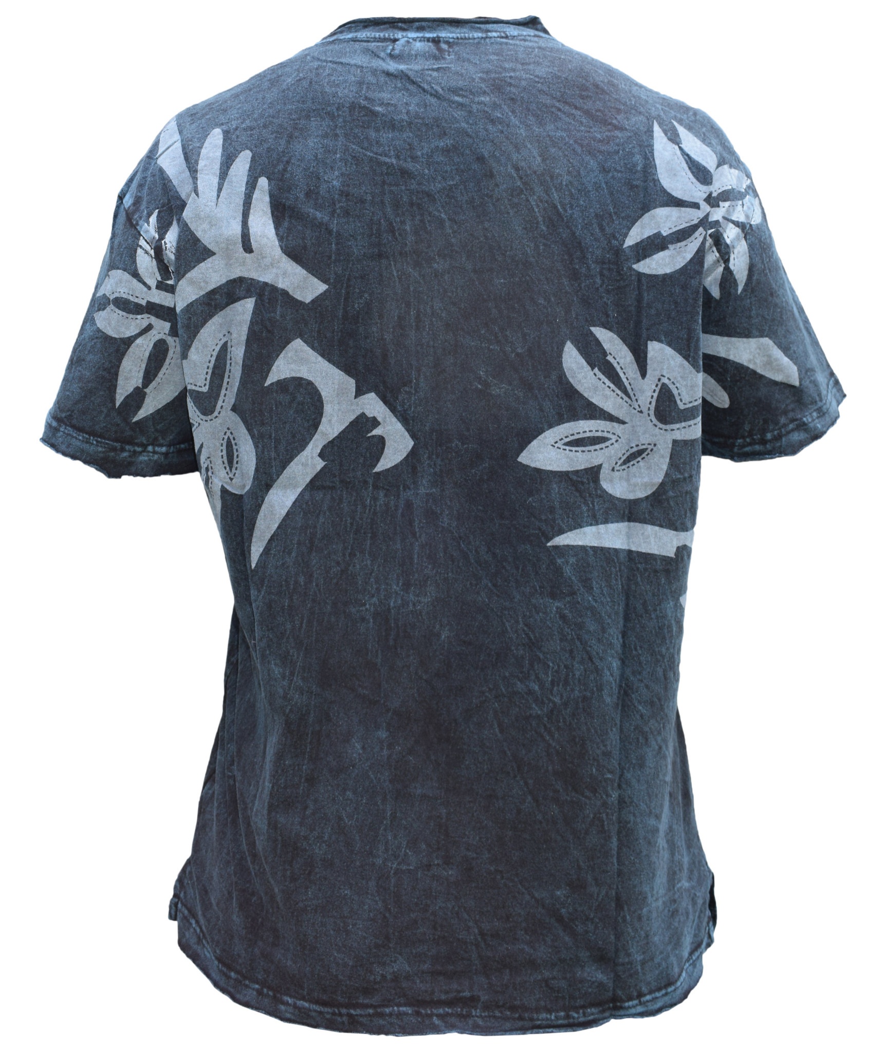In order to make a fashion statement, you need a core piece on which you can build up your desired style. In this case, you can start with this frayed hem acid washed t-shirt. Crafted from cotton, the subtle but decadent print of the tribal print gives this top a perfect finish. Simple yet sophisticated, the lightweight material makes it easy to wear in hot summer days. Pair with dark denims or chinos and let the top do the talking. The measurement index is as follows.