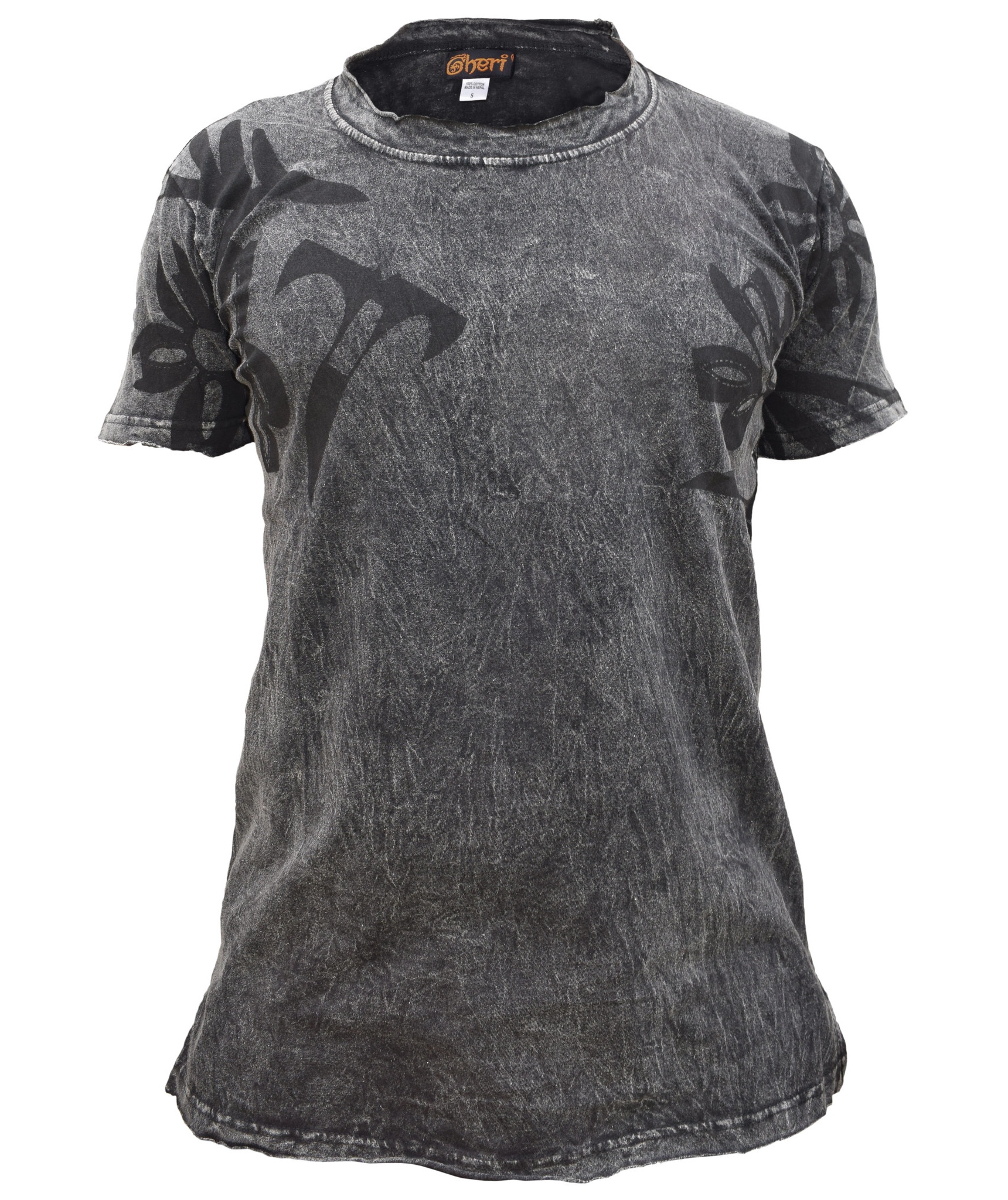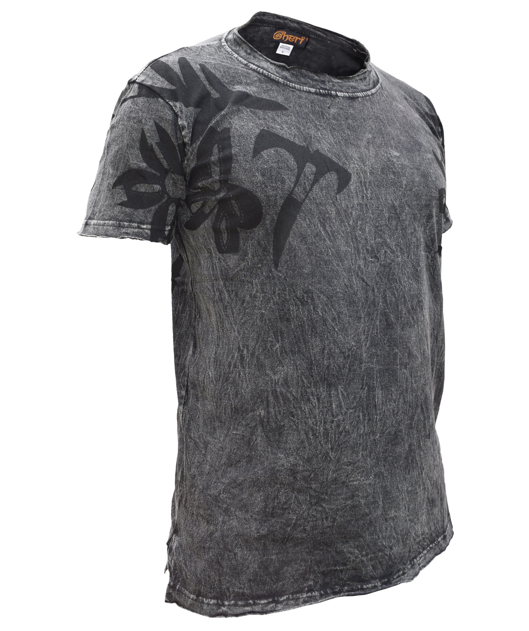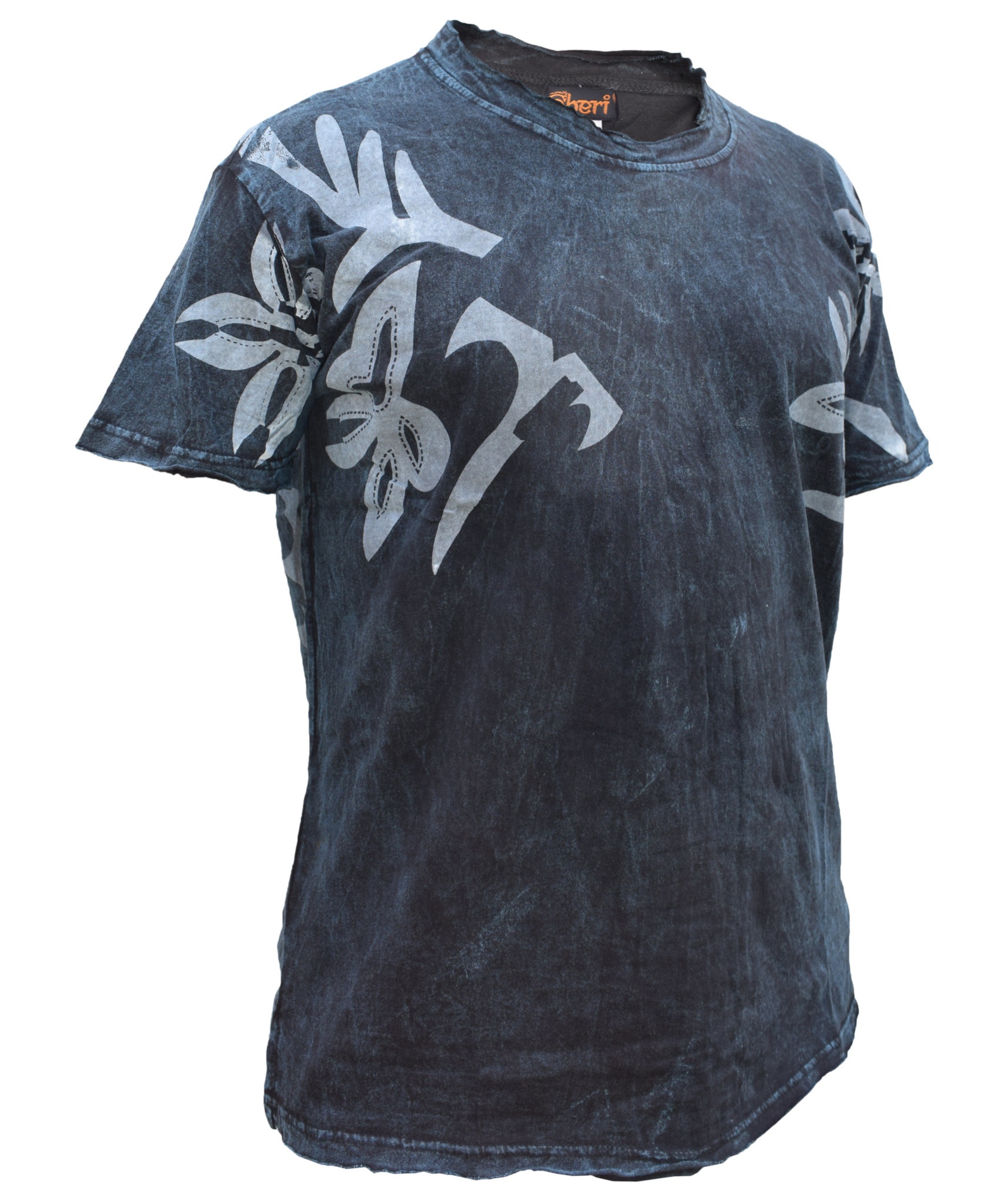 In order to make a fashion statement, you need a core piece on which you can build up your desired style. In this case, you can start with this frayed hem acid washed t-shirt. Crafted from cotton, the subtle but decadent print of the tribal print gives this top a perfect finish. Simple yet sophisticated, the lightweight material makes it easy to wear in hot summer days. Pair with dark denims or chinos and let the top do the talking. The measurement index is as follows.