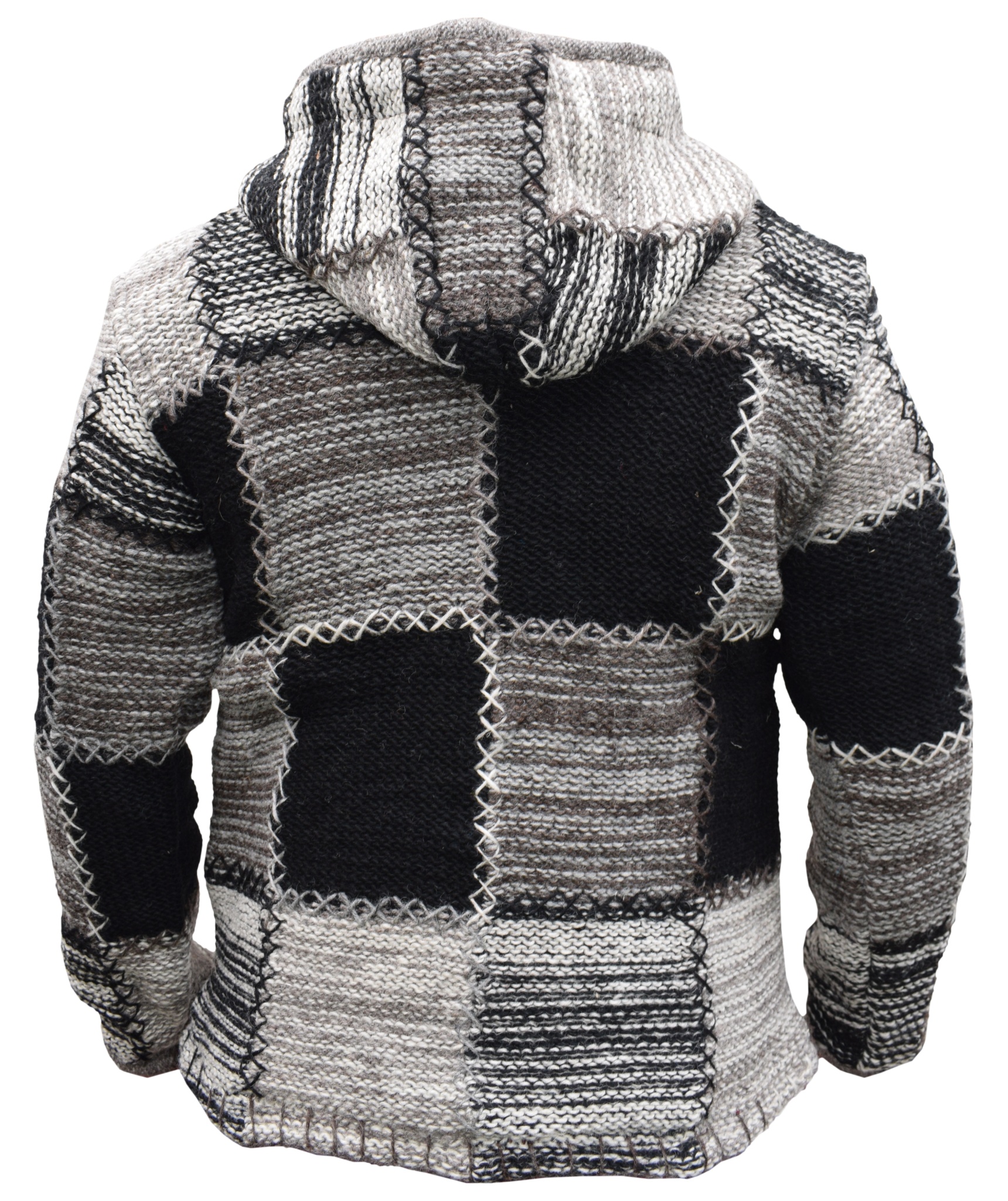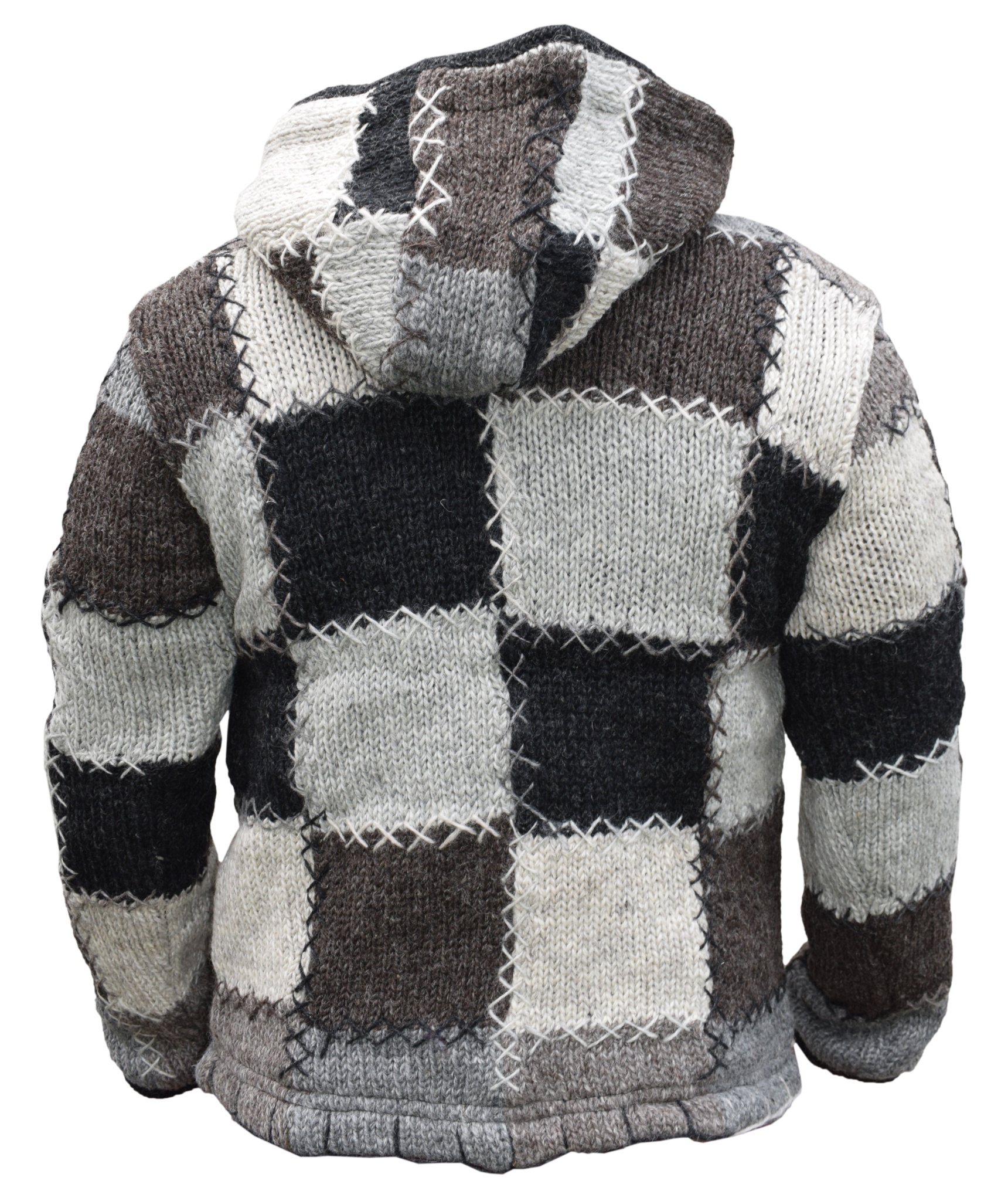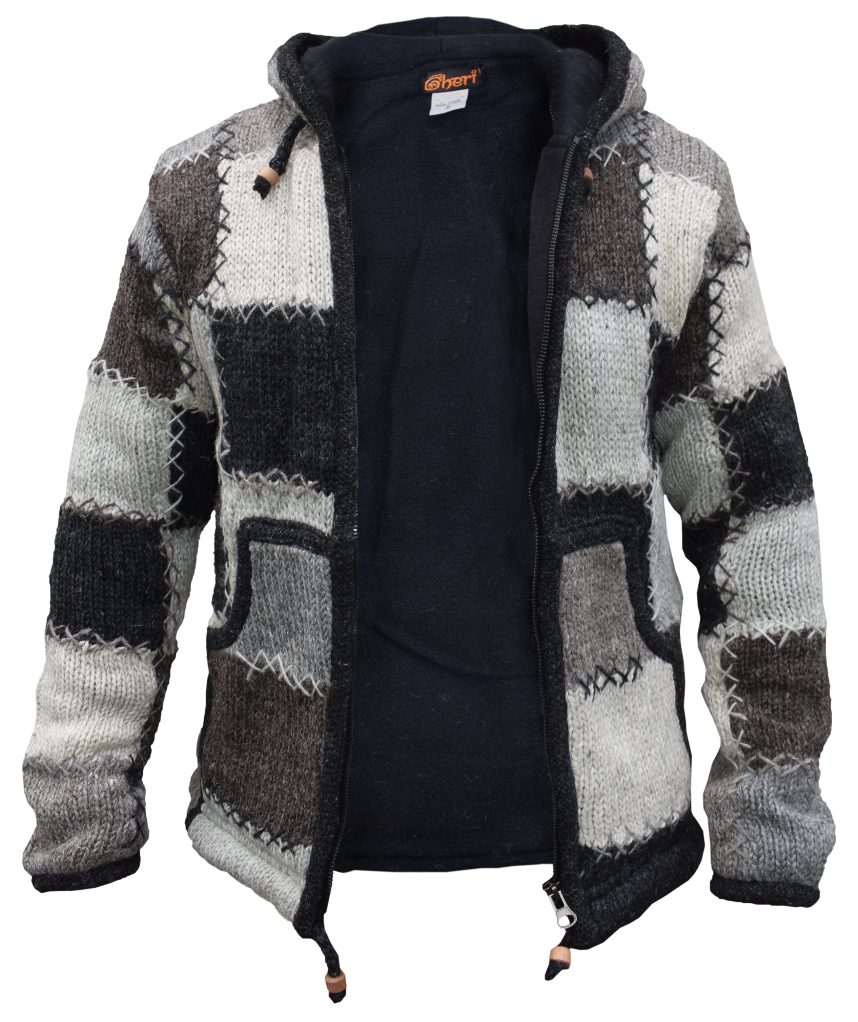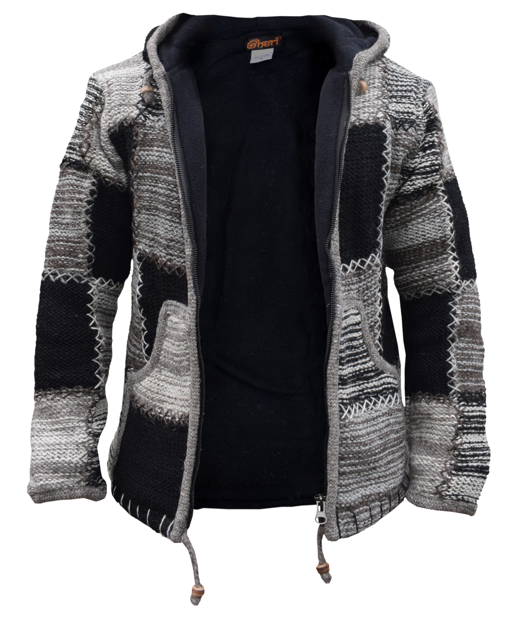 These are one of our popular jackets among woolen design. They are knitted patch jackets where every patch is stitched with wool thread that gives them more natural look. Each of them has two deep front pockets and one inner pocket. Unlike our other Nepalese jackets that are normally single knit, these ones are double knitted making them extra thick and warm. They have drawstring in hood as well as in bottom hem.