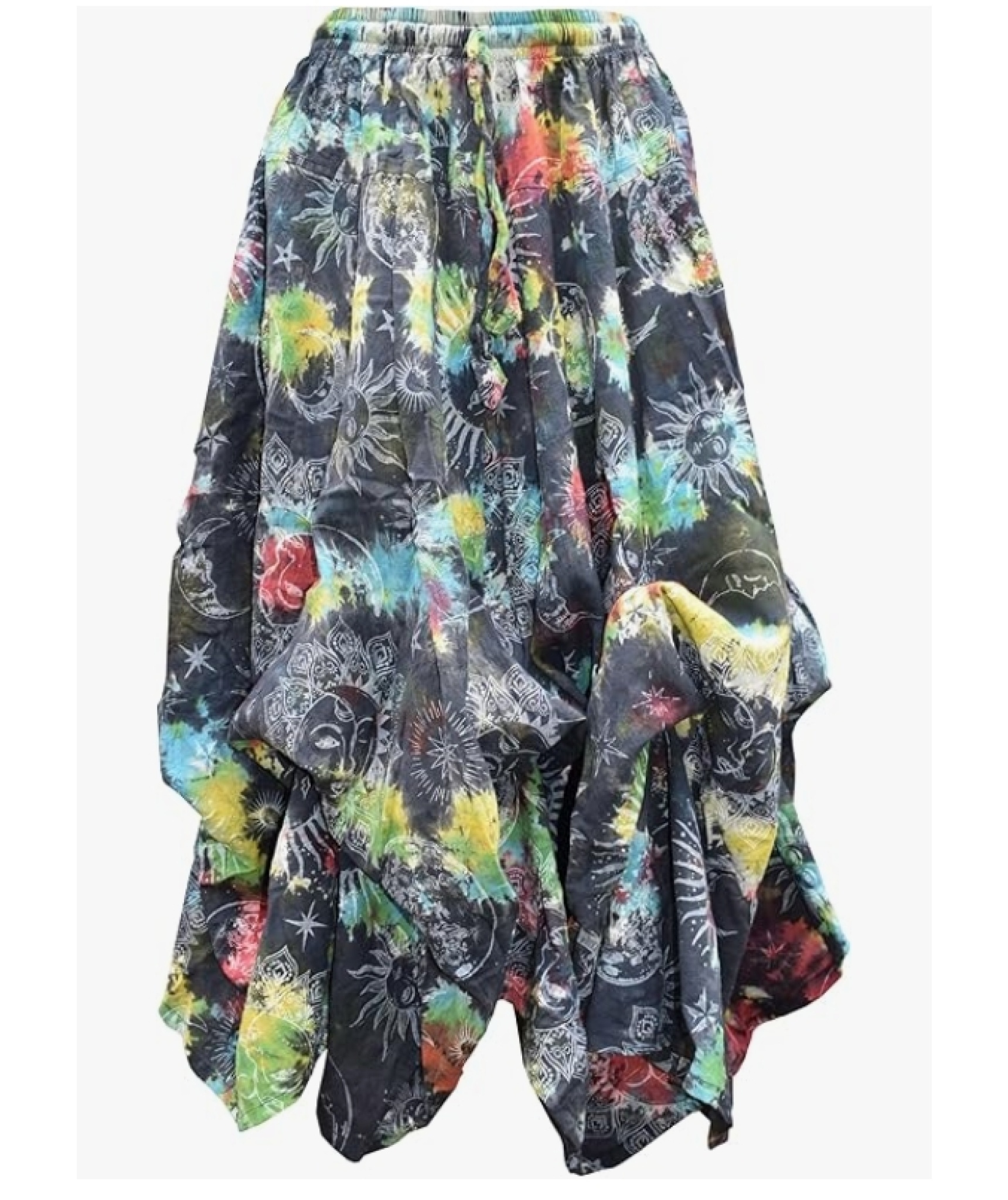 A massive 15feet(4.6m) of material is used to create this flattering A Line skirt. Features 2 handy side pockets, fully elasticated waist with a drawstring fastening for a comfortable fit.
