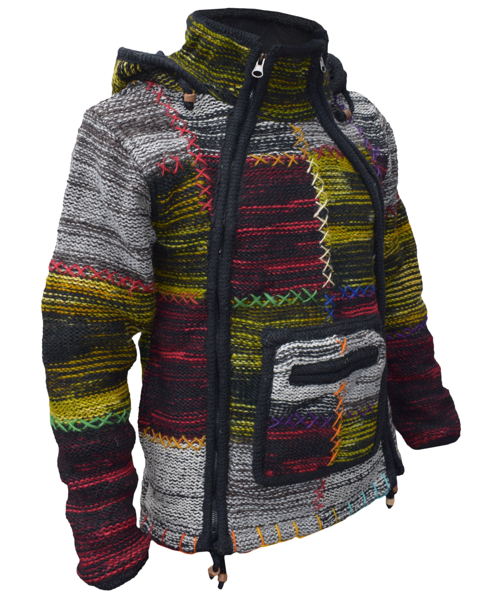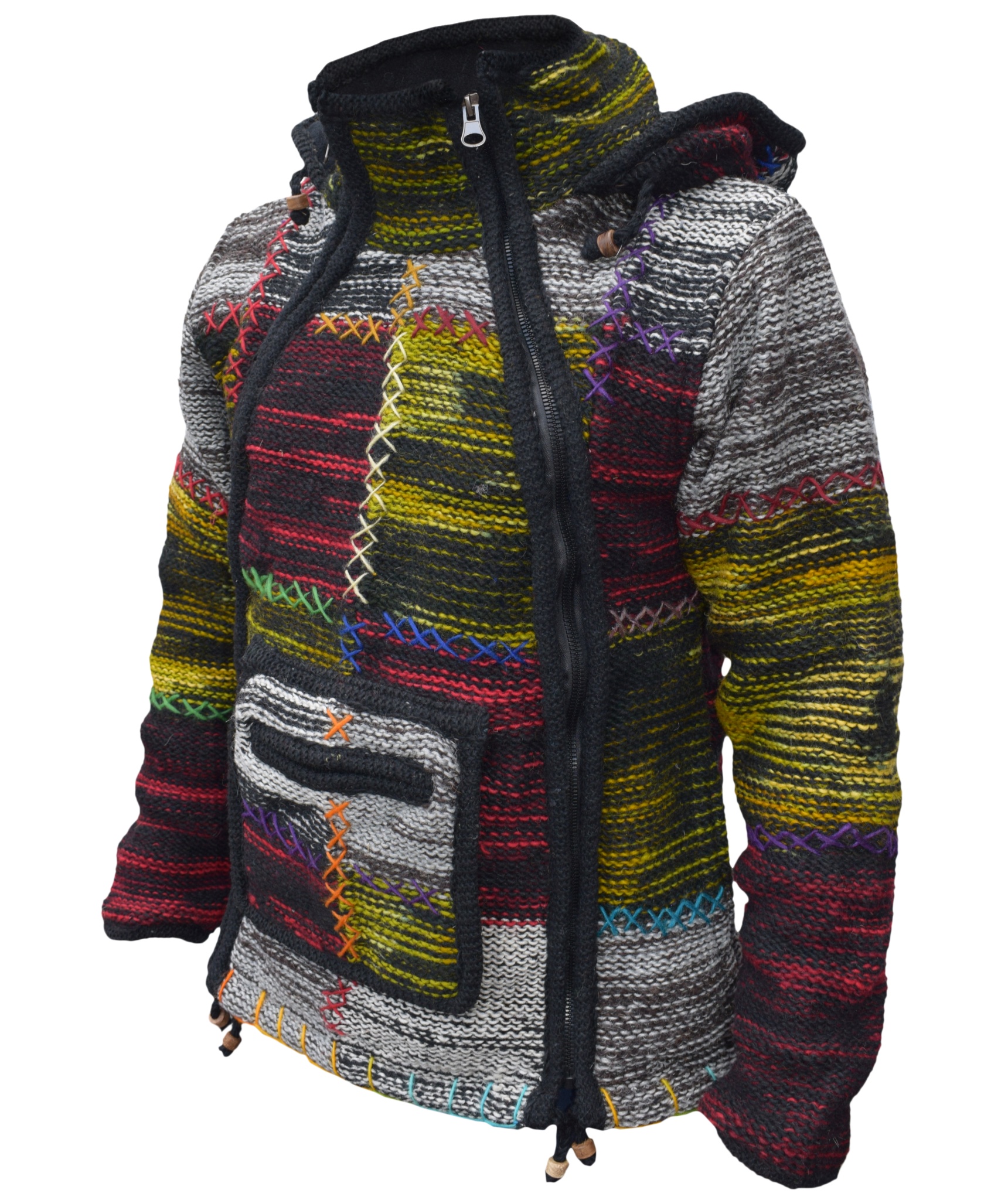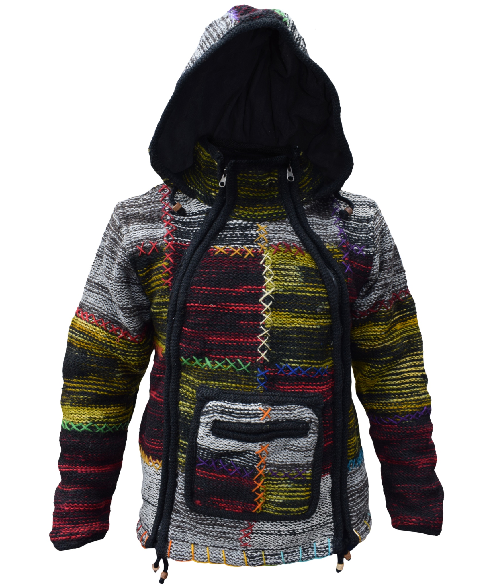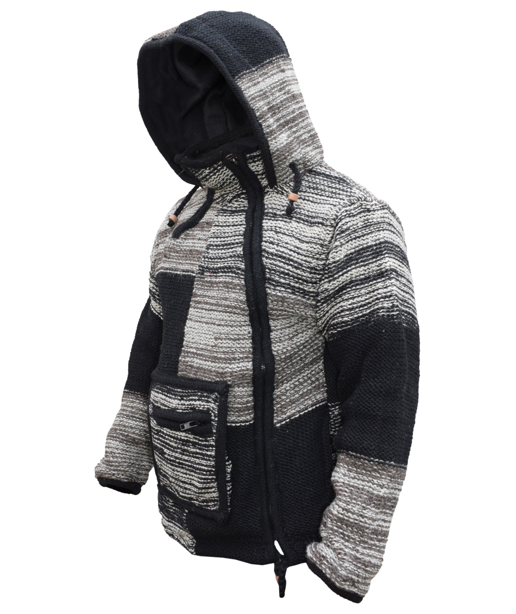 These woolen patch jackets can be your best solution for this winter. They have top quality wool and fleece lined that keep you real warm and is very comfy to wear. They have single side and double side zip fastening with a kangaroo pouch at front. We Drawstring on the hem and hoodie with wooden beads. They are hand knitted patchwork items and every details are provided with special care.